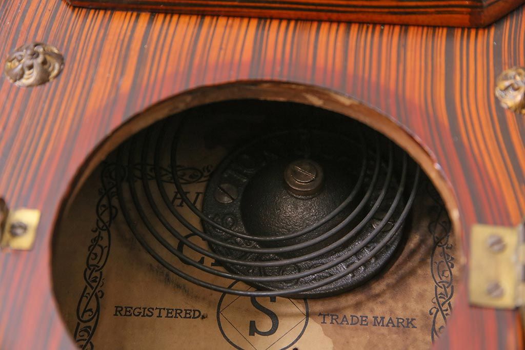 ムーブメントは新品で電池式です。電池は付属します。鐘はなりません。振り子は付いておりません。