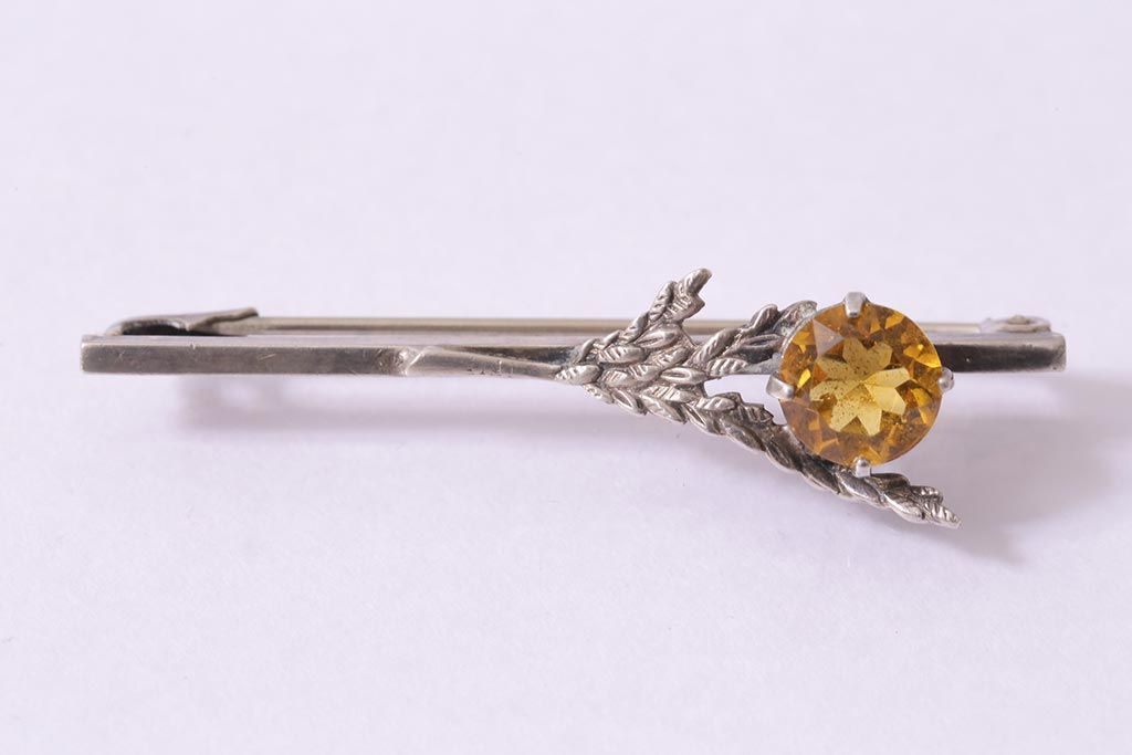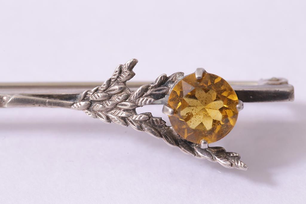 ラフジュ工房> 雑貨 > ヴィンテージアクセサリー イギリス シルバー 花のようなイエローのストーンが付いたビンテージブローチ(R-044690)