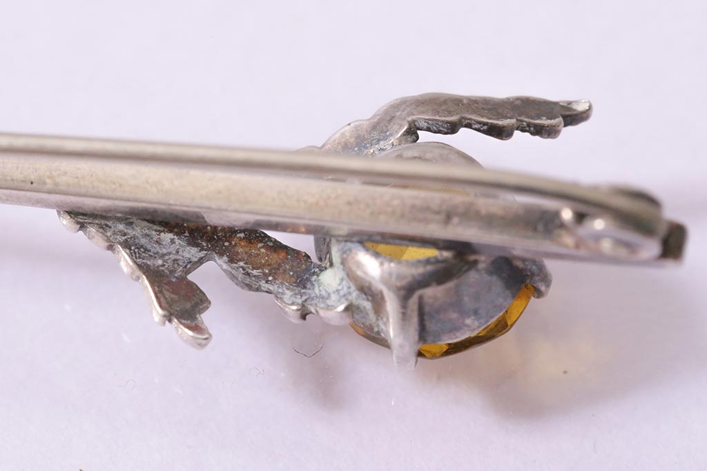 ラフジュ工房> アクセサリー > ヴィンテージアクセサリー イギリス シルバー 花のようなイエローのストーンが付いたビンテージブローチ(R-044690)