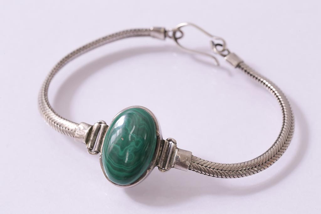 ラフジュ工房> アクセサリー> ブレスレット・バングル > ヴィンテージアクセサリー イギリス シルバー925 マーブルグリーンのビンテージブレスレット(R-044695)