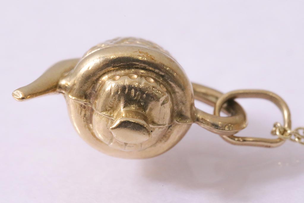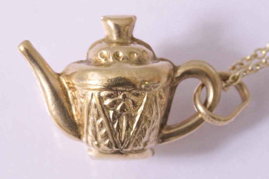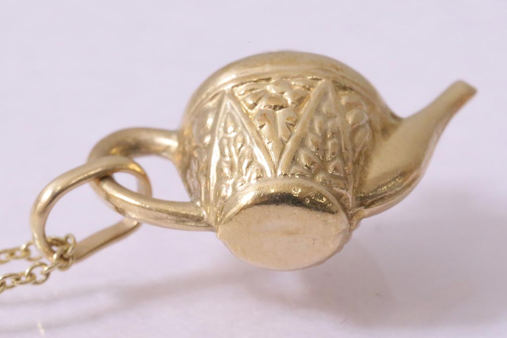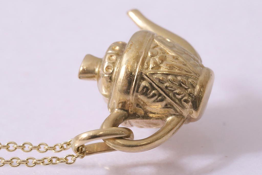 ラフジュ工房> アクセサリー> ペンダント・ネックレス > ヴィンテージアクセサリー イギリス ティーポットチャーム ゴールドペンダント ネックレス(ペンダントトップ、ビンテージ)(R-044696)