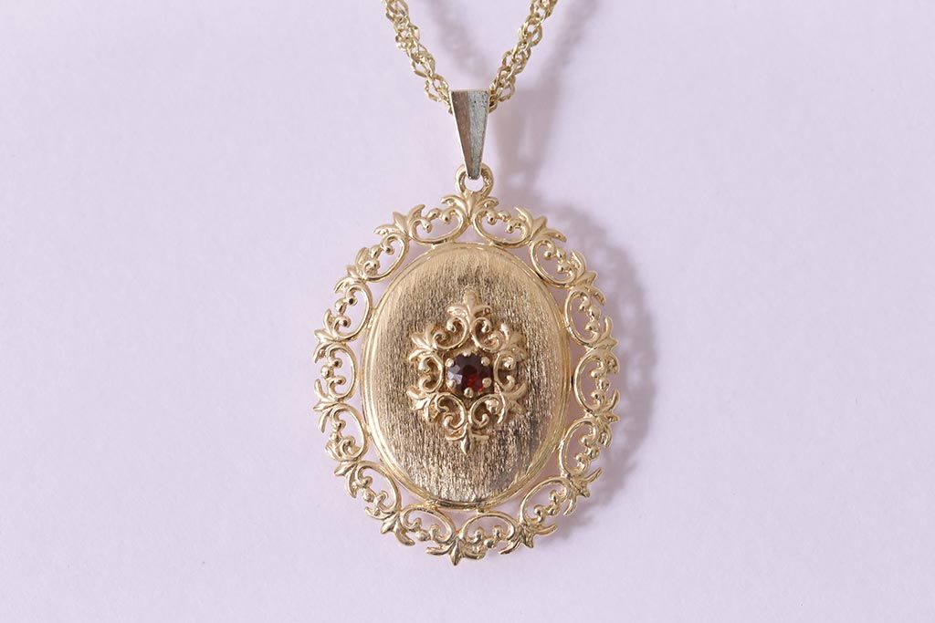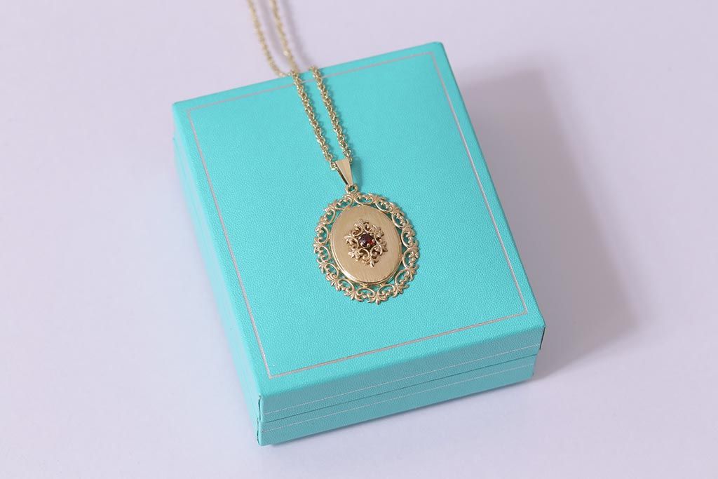 ラフジュ工房> アクセサリー > ヴィンテージアクセサリー イギリス 9K ガーネット 華やかなゴールドペンダント ビンテージネックレス(R-044702)