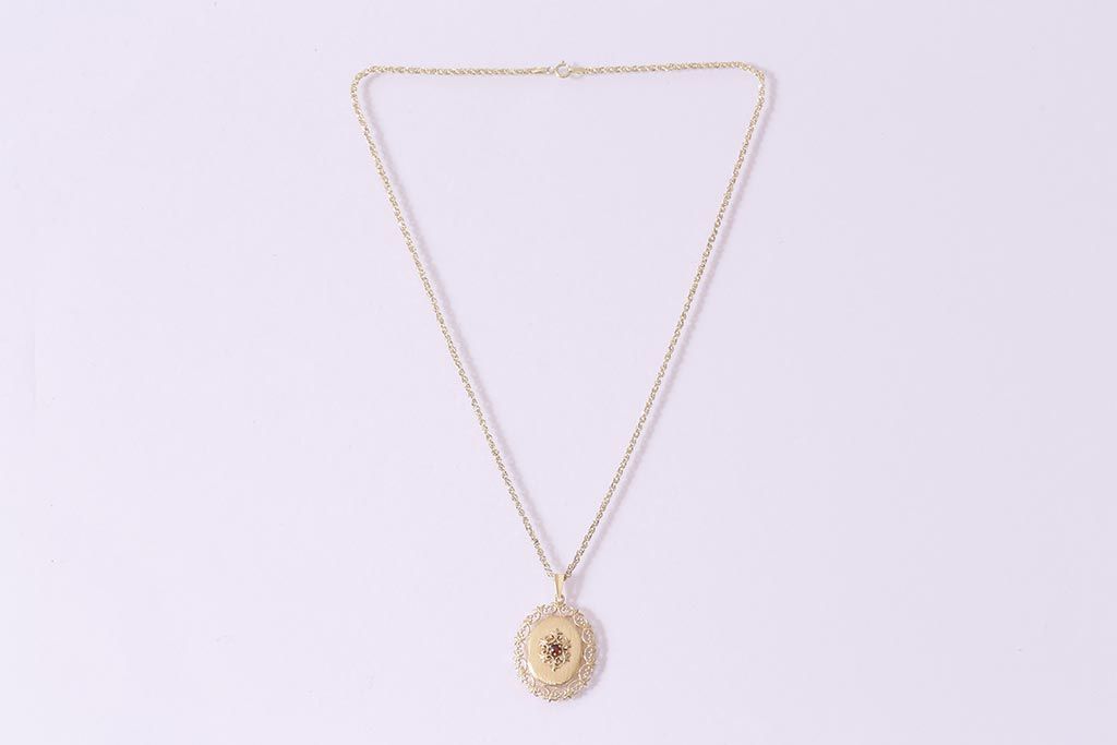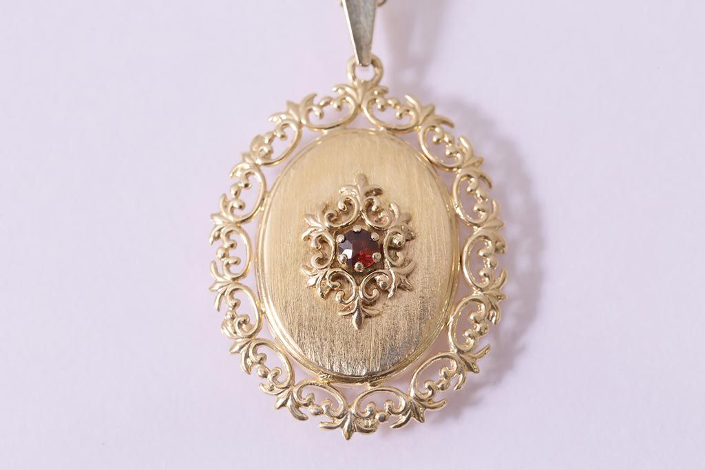 ラフジュ工房> 雑貨 > ヴィンテージアクセサリー イギリス 9K ガーネット 華やかなゴールドペンダント ビンテージネックレス(R-044702)
