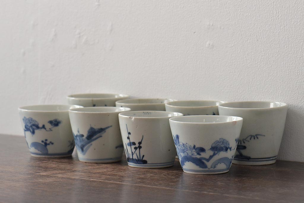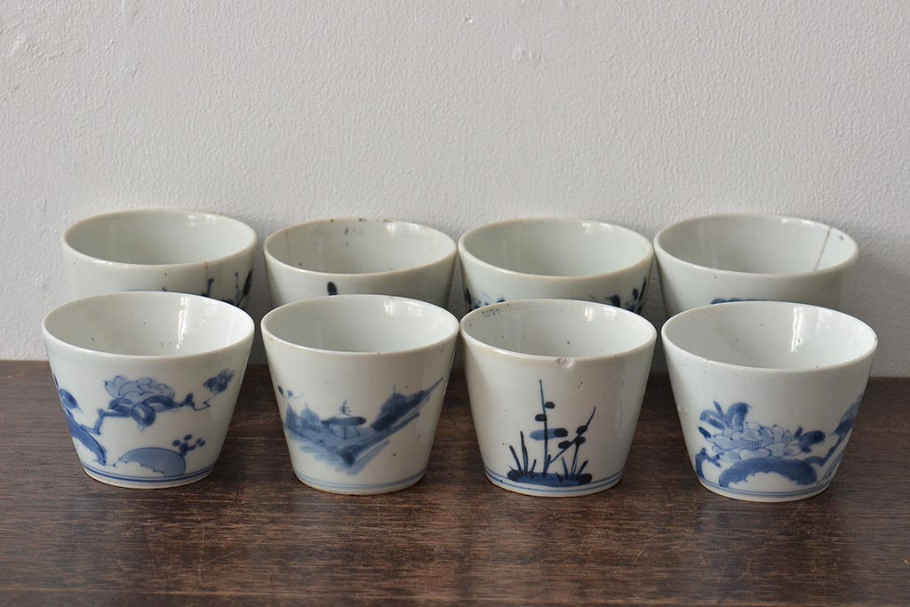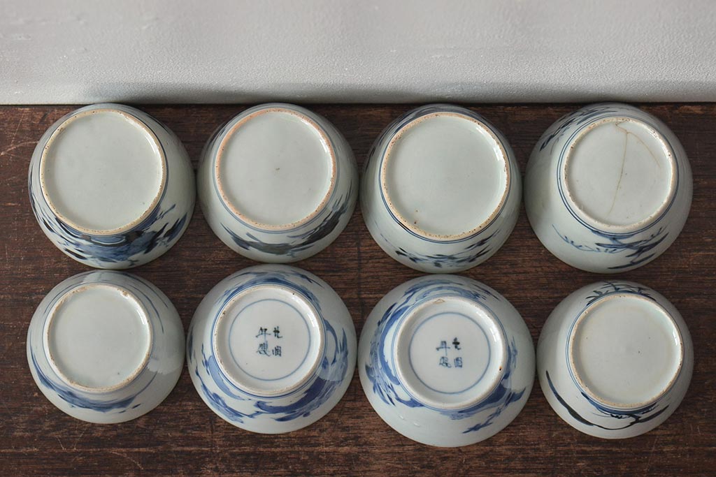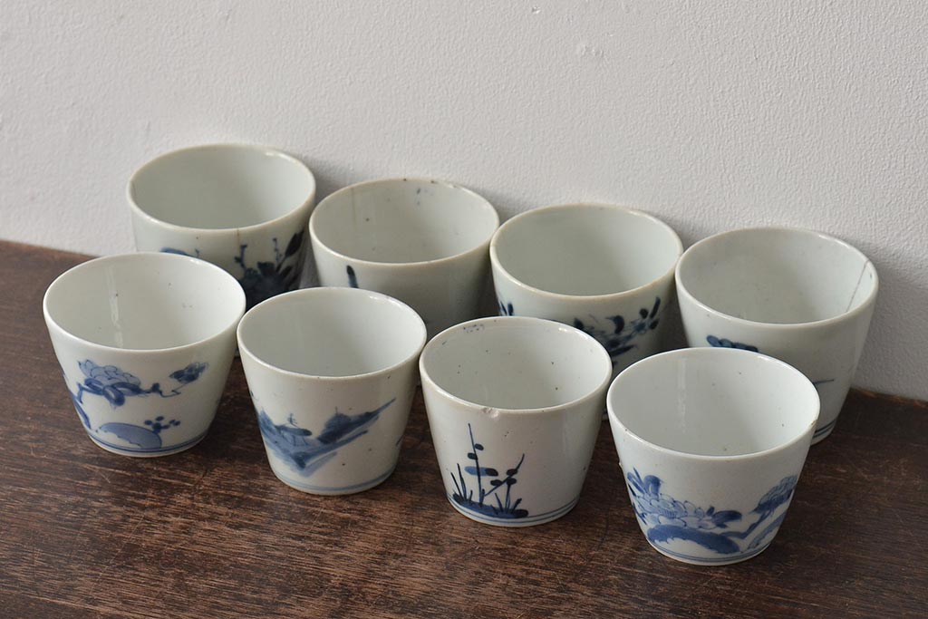 ラフジュ工房> 骨董・美術品> 骨董-陶磁器 > 江戸期 古伊万里 染付蕎麦猪口8個セット(和食器)(R-044608)