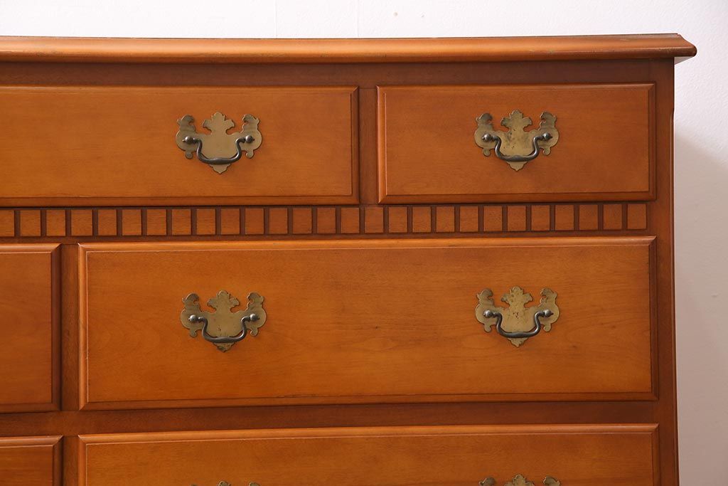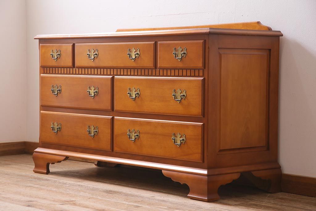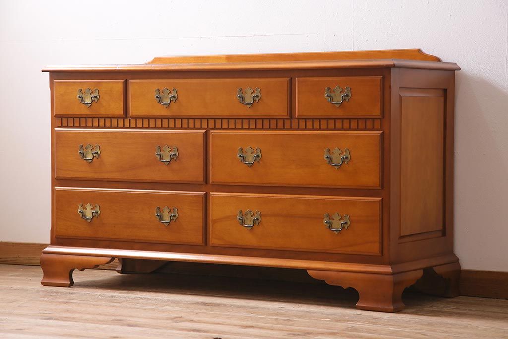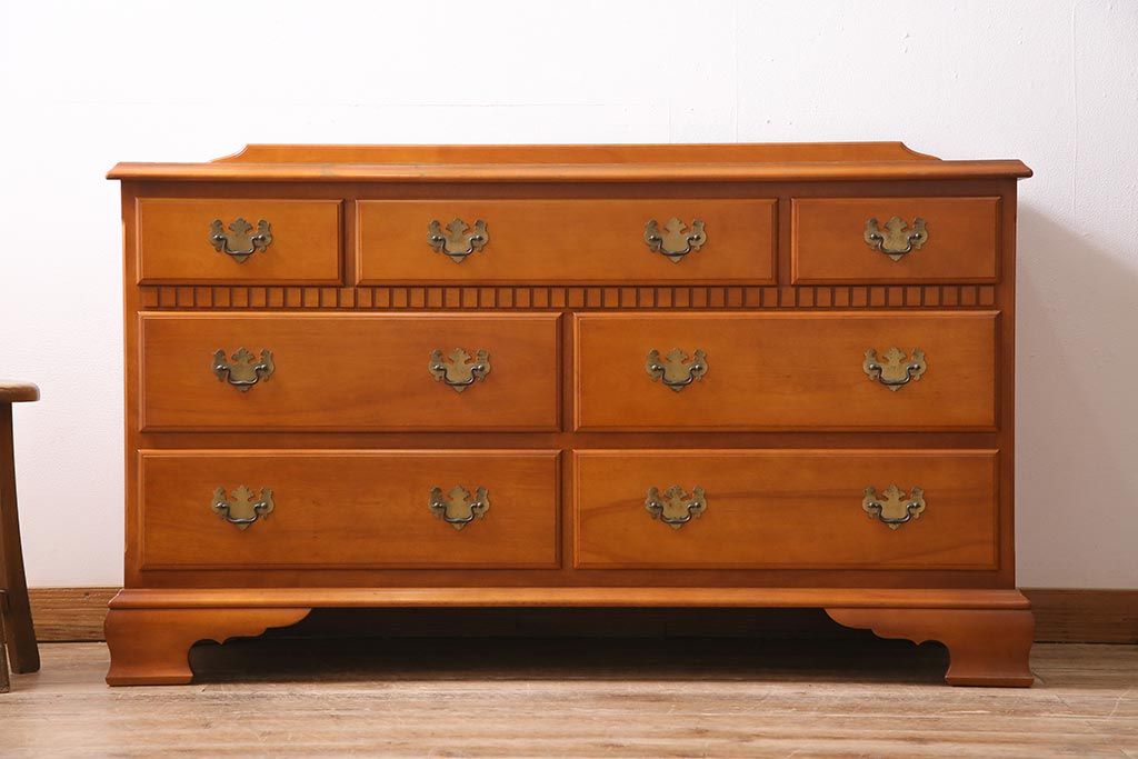 中古 横浜ダニエル(daniel) アーリーアメリカン A-104横長整理タンス エレガントな佇まいが魅力のチェスト(定価約50万円)(引き出し、サイドボード)(R-044666)