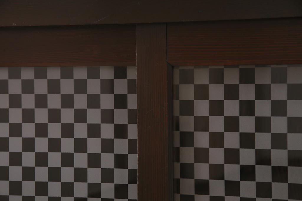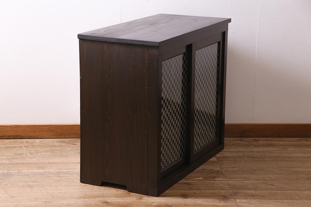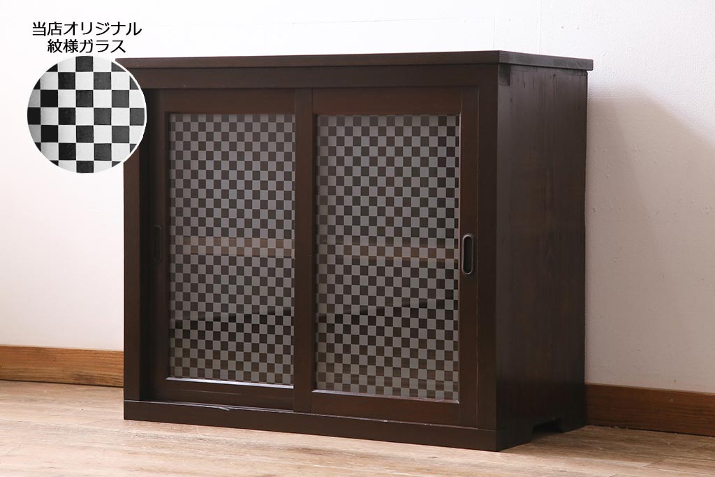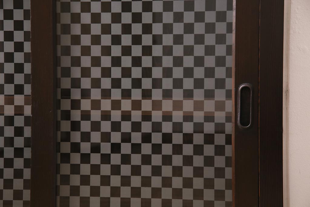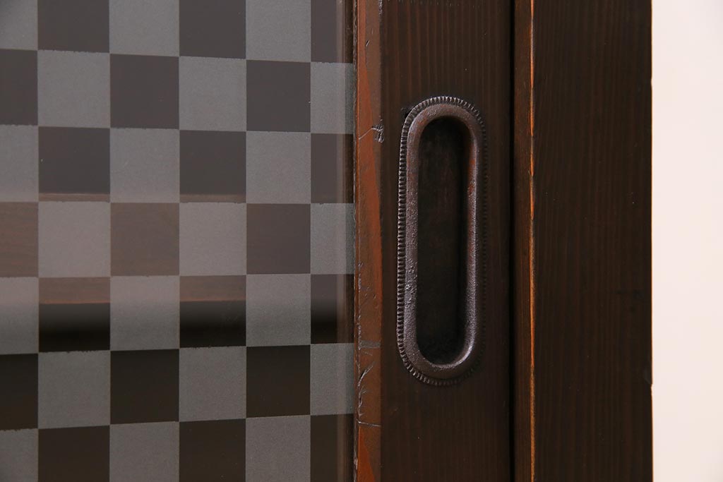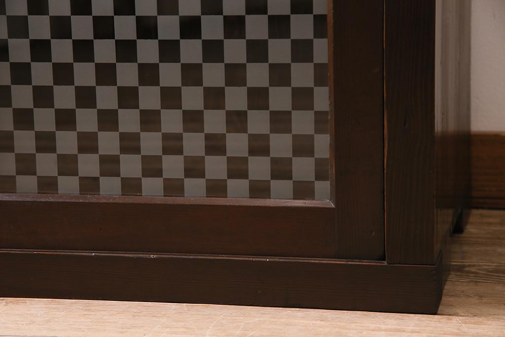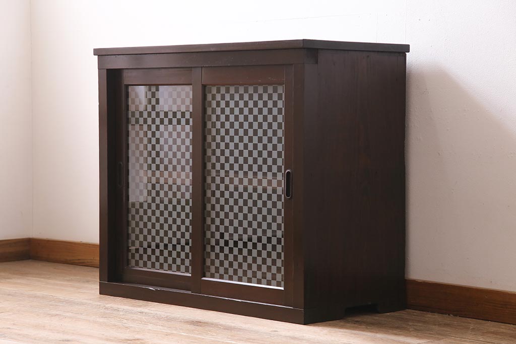 アンティーク家具 昭和初期 リメイク 当店オリジナルガラス 市松模様のガラスがアクセントの戸棚(収納棚、キャビネット)(R-044720)