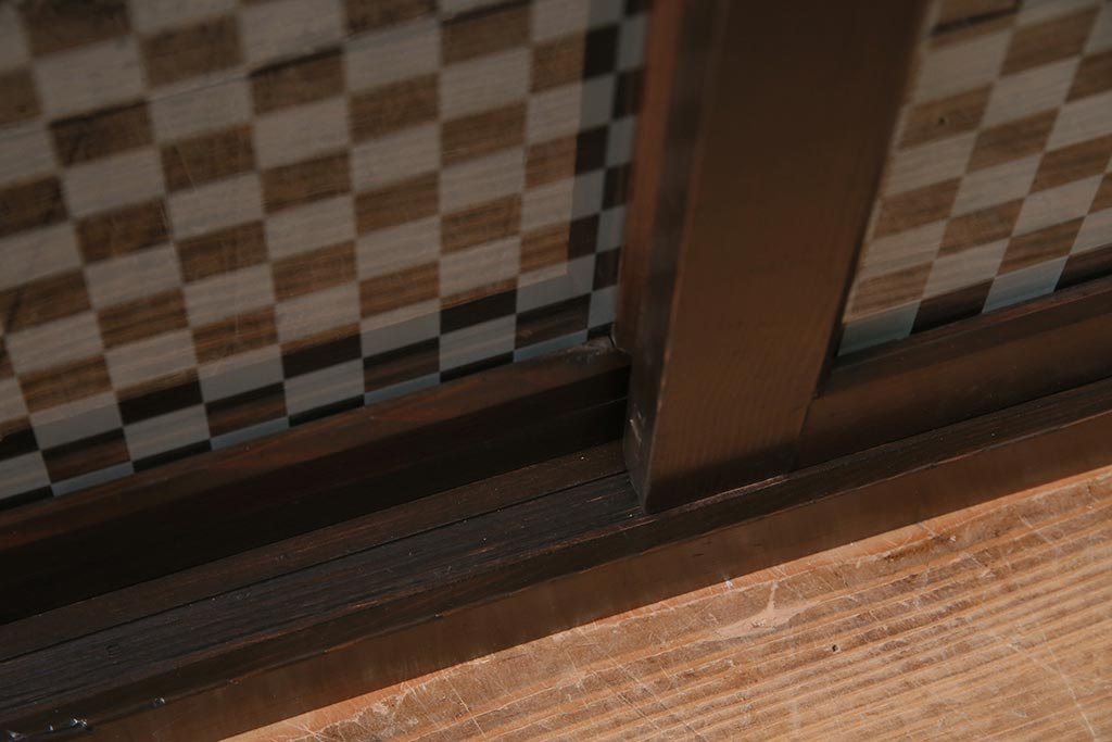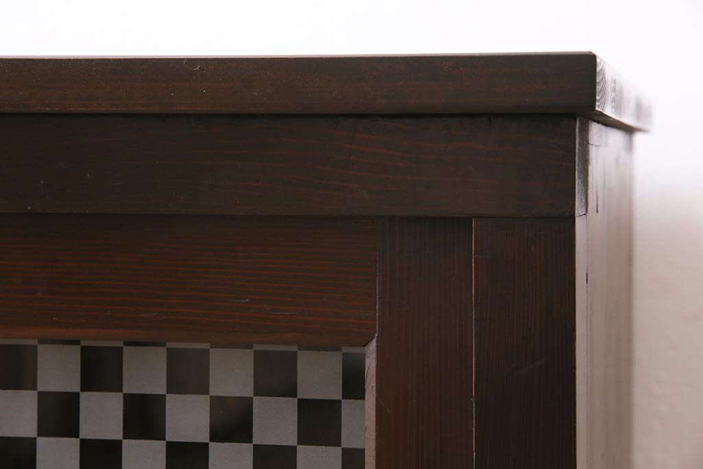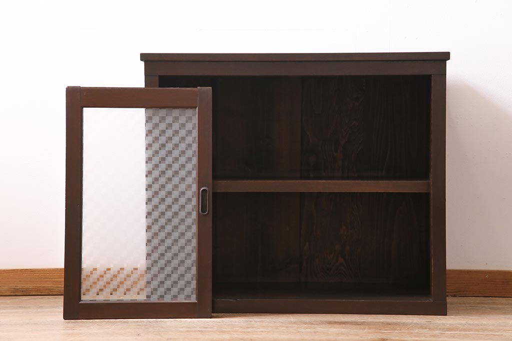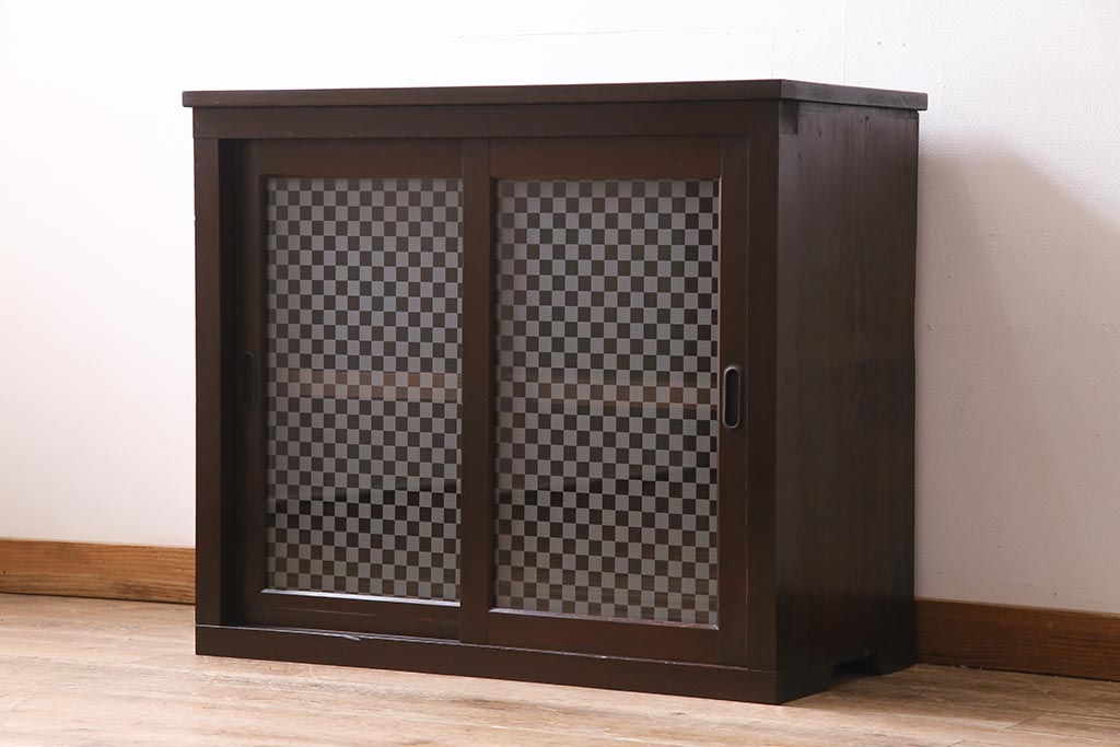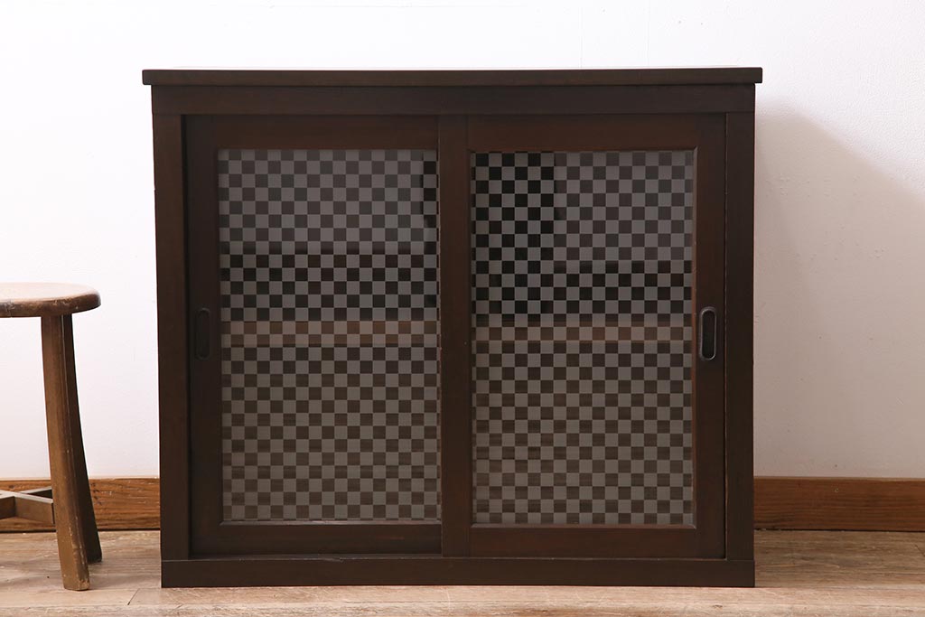 キャビネット・戸棚 > アンティーク家具 昭和初期 リメイク 当店オリジナルガラス 市松模様のガラスがアクセントの戸棚(収納棚、キャビネット)(R-044720)