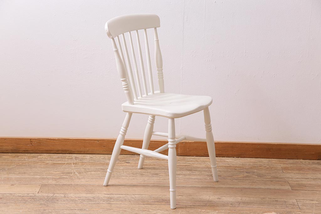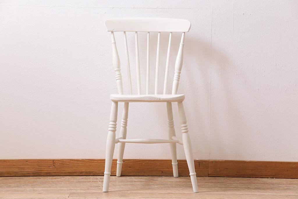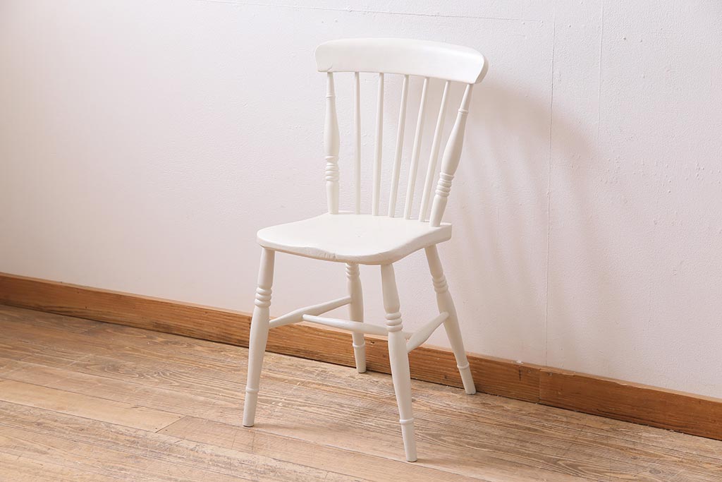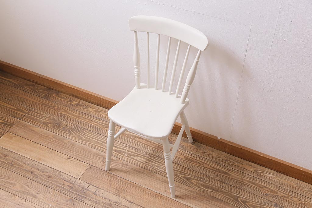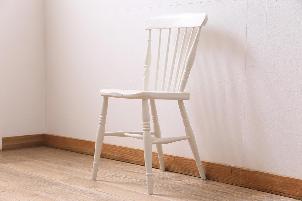 アンティーク家具 イギリスアンティーク ペイント ホワイトカラーが爽やかなダイニングチェア(椅子)(R-044725)