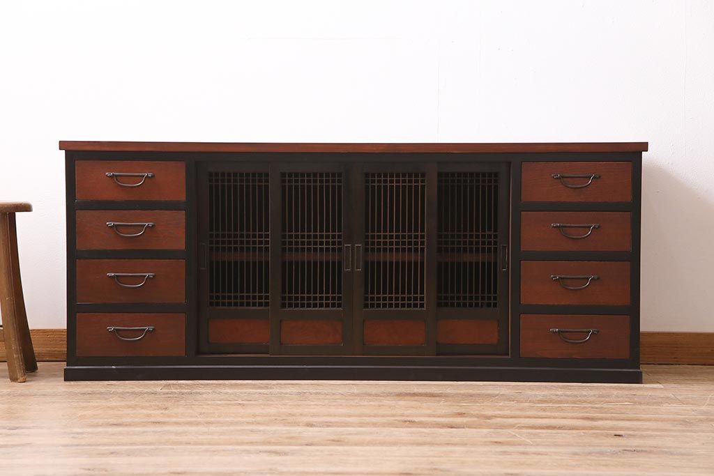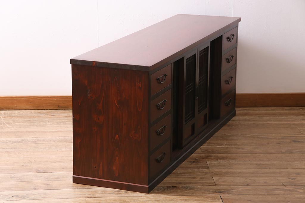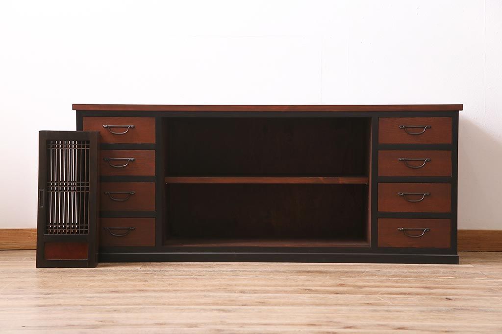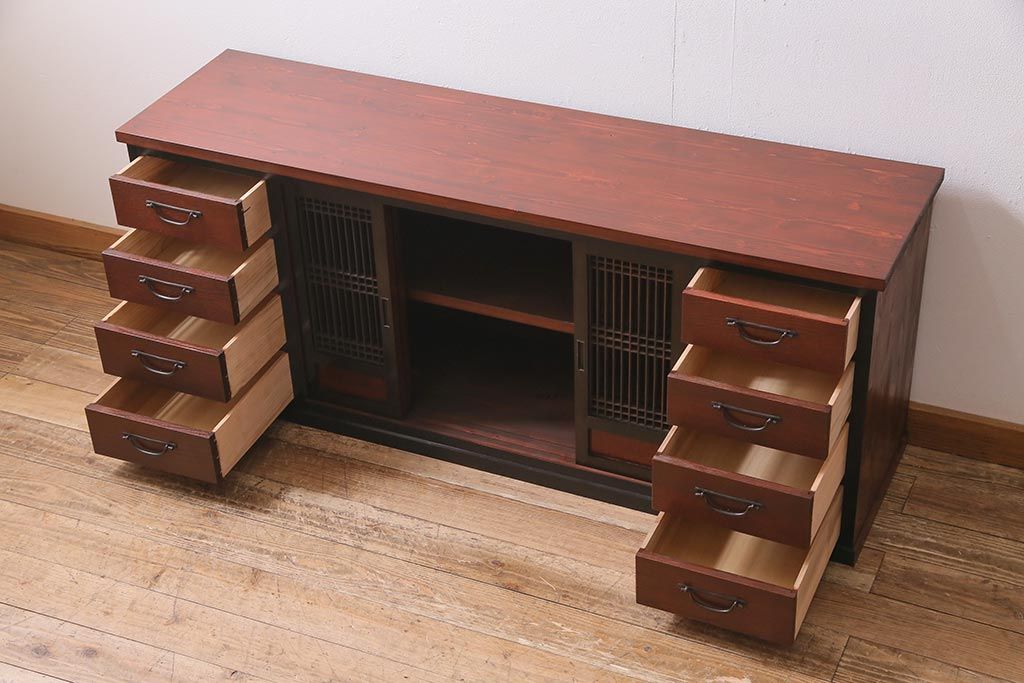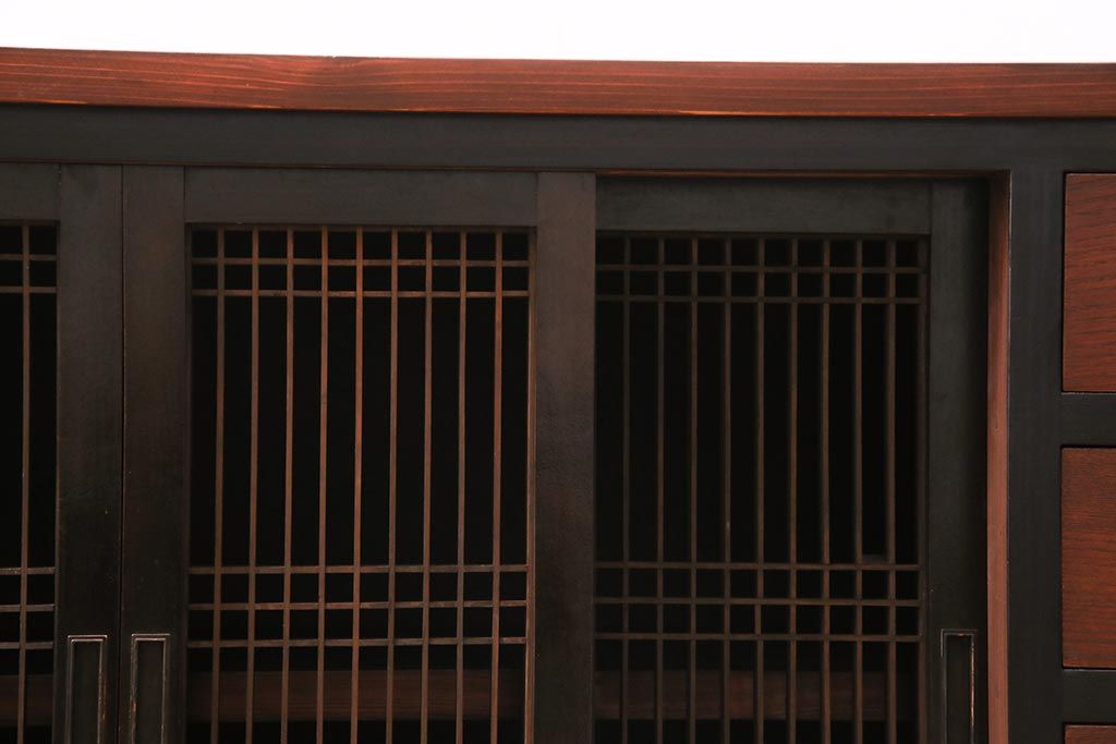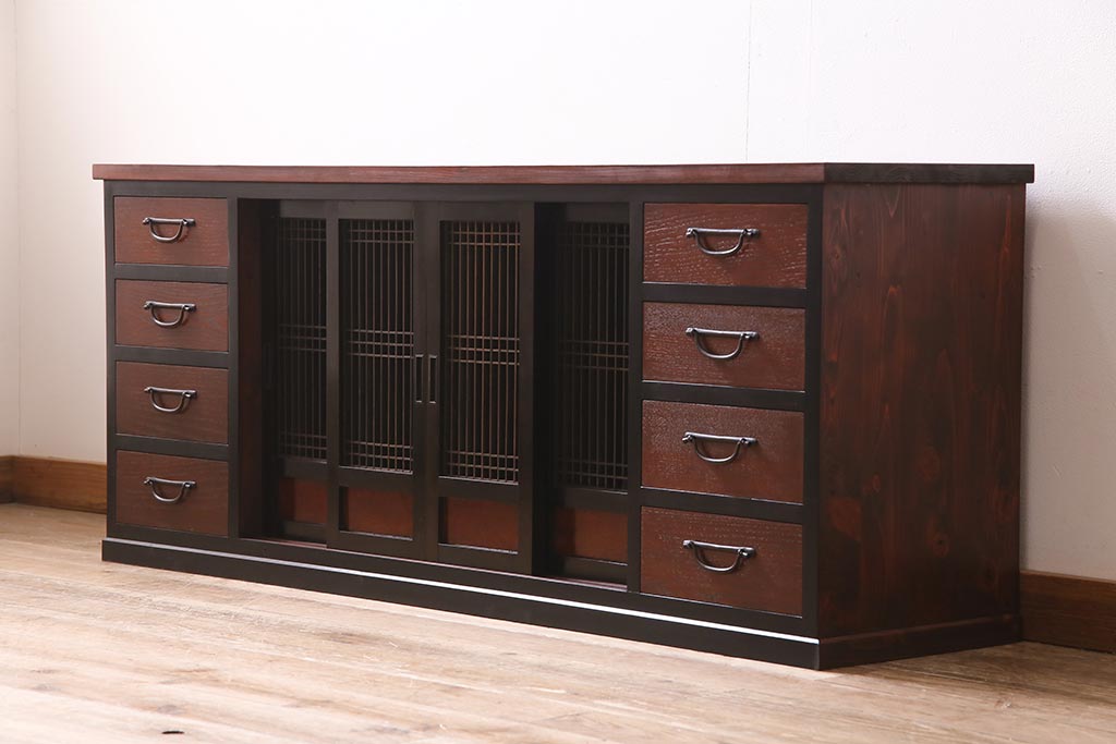 ラフジュ工房オリジナル 古建具リメイク 上品な和を感じさせる引き出し付きローボード(収納棚、戸棚、テレビ台、テレビボード)(R-044726)です。