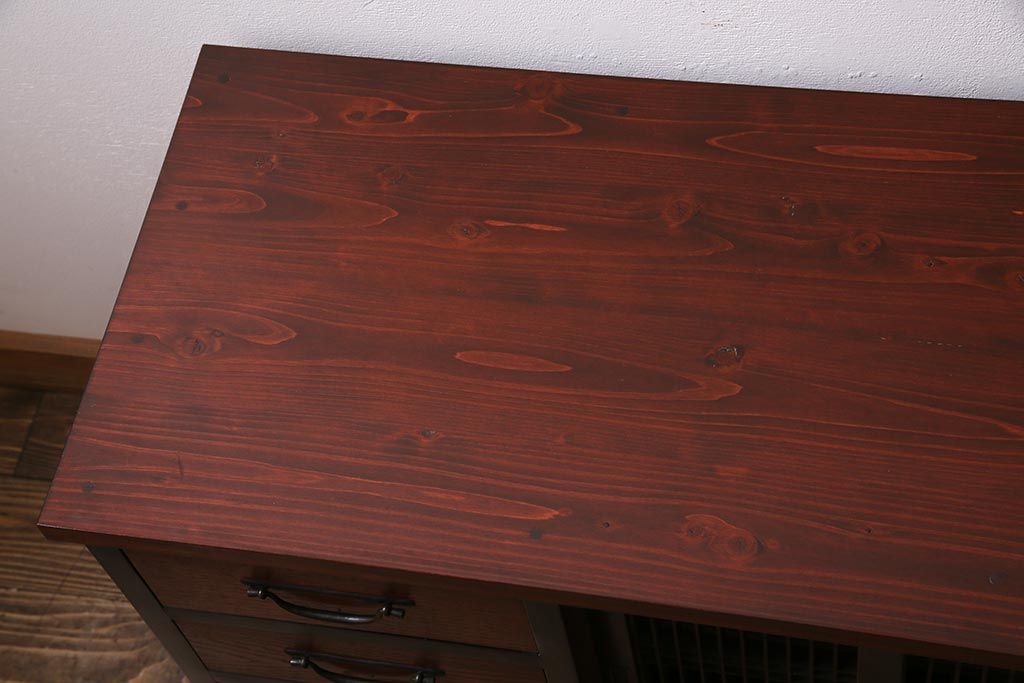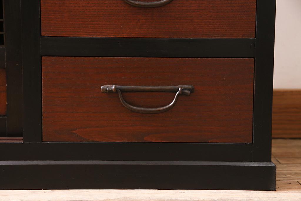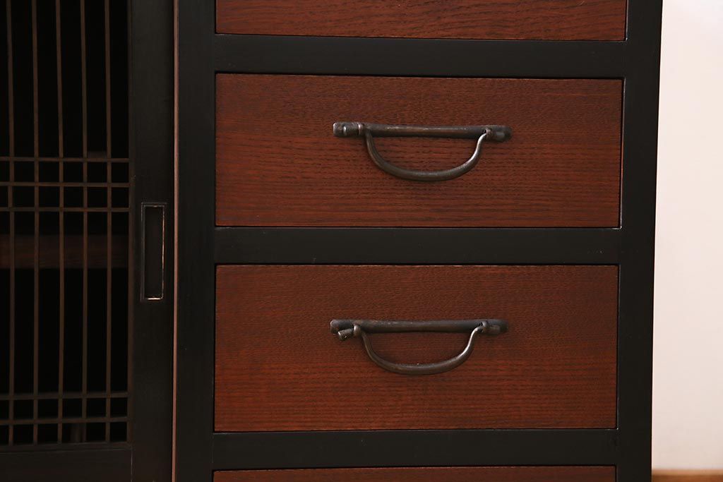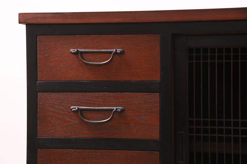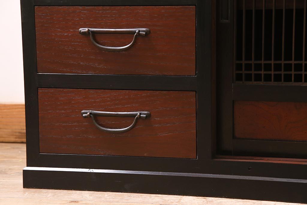ラフジュ工房オリジナル 古建具リメイク 上品な和を感じさせる引き出し付きローボード(収納棚、戸棚、テレビ台、テレビボード)(R-044726)