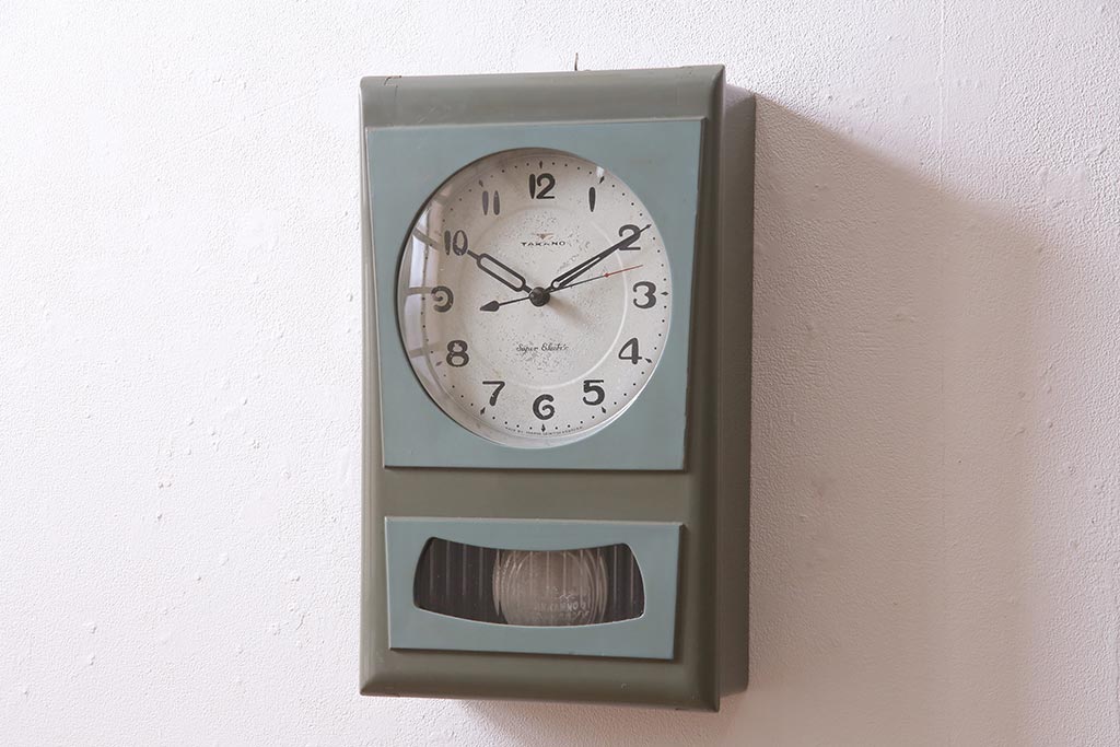 和製アンティーク タカノ(高野精密工業) 電池式 文字盤が可愛いレトロポップな振り子時計(柱時計、壁掛け時計)(R-044745)