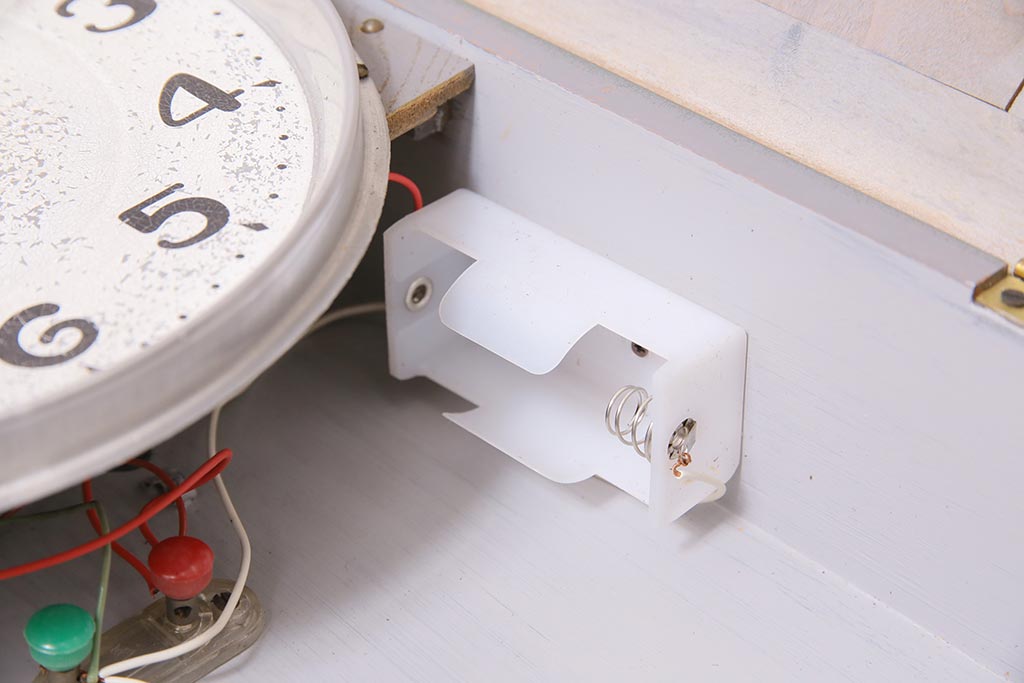 電池式で、電池を入れてから振り子を動かすと秒針が動き出すようになっております。