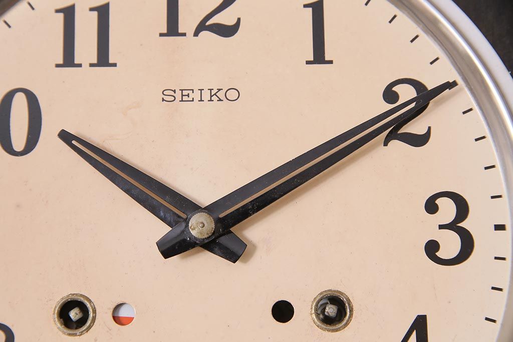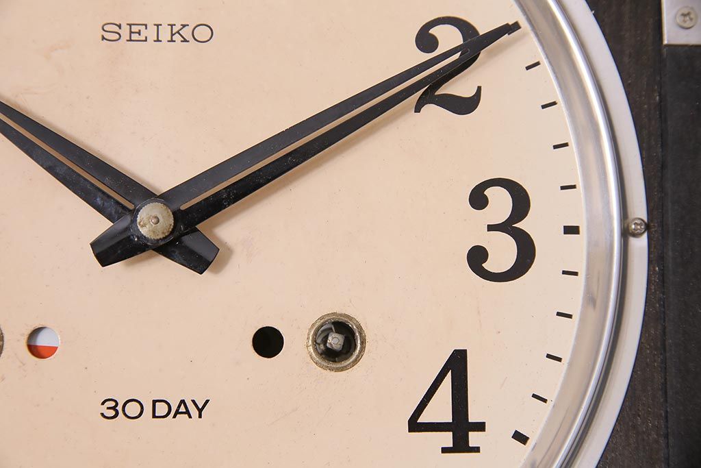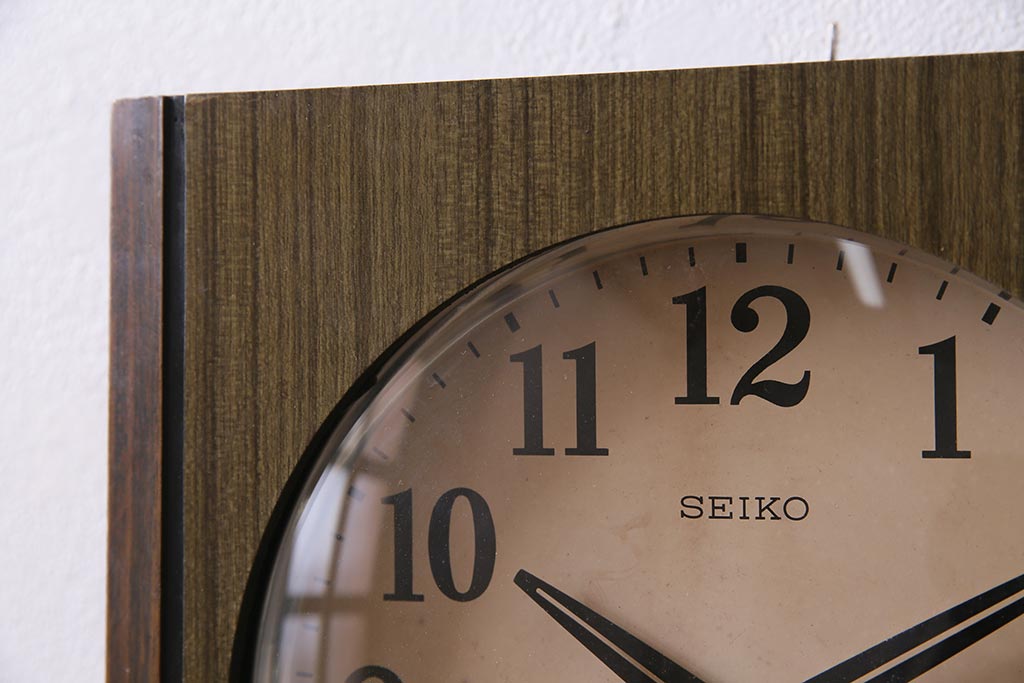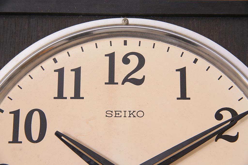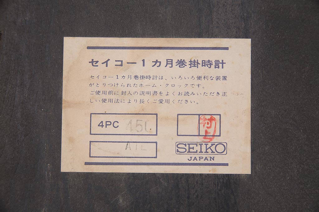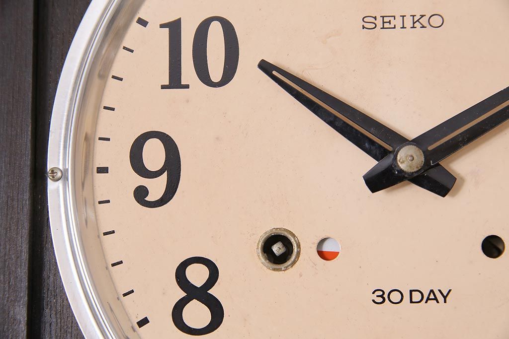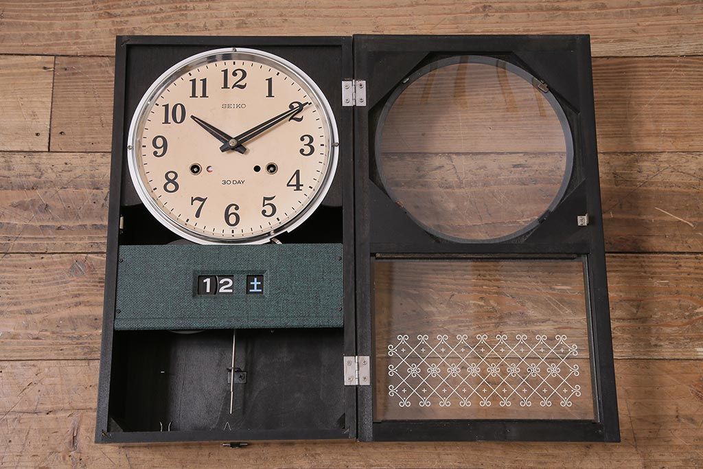 レトロ雑貨 SEIKO(セイコー) ゼンマイ式 カレンダー付き 渋い色合いがレトロな掛け時計(柱時計、振り子時計)(R-044746)です。