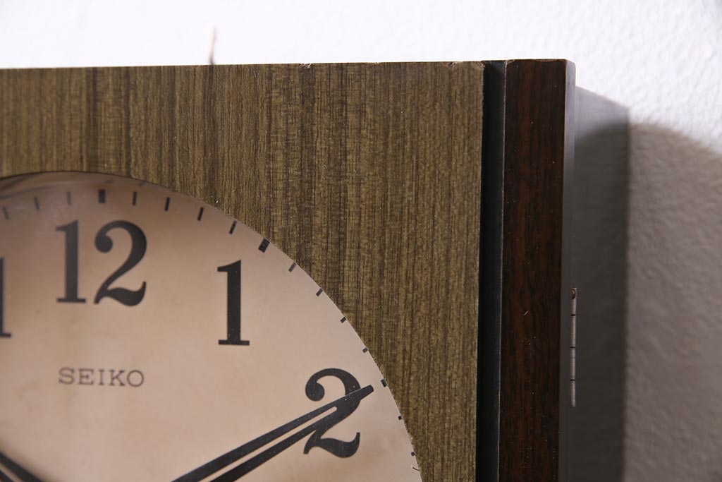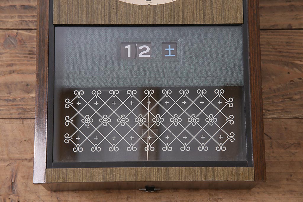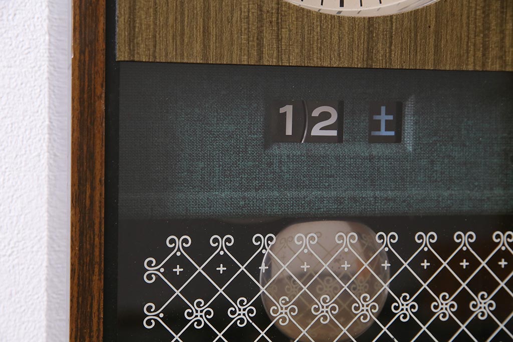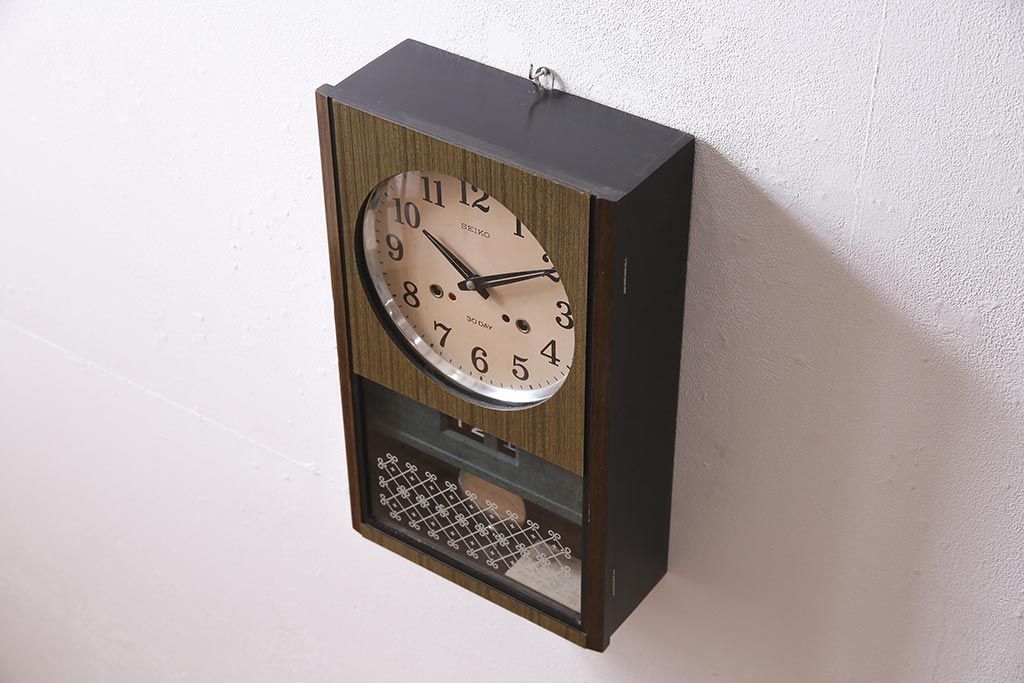 時計> 掛け時計 > レトロ雑貨 SEIKO(セイコー) ゼンマイ式 カレンダー付き 渋い色合いがレトロな掛け時計(柱時計、振り子時計)(R-044746)
