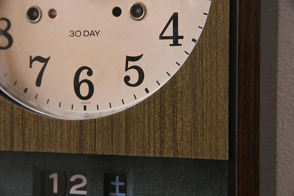 レトロ雑貨 SEIKO(セイコー) ゼンマイ式 カレンダー付き 渋い色合いがレトロな掛け時計(柱時計、振り子時計)(R-044746)