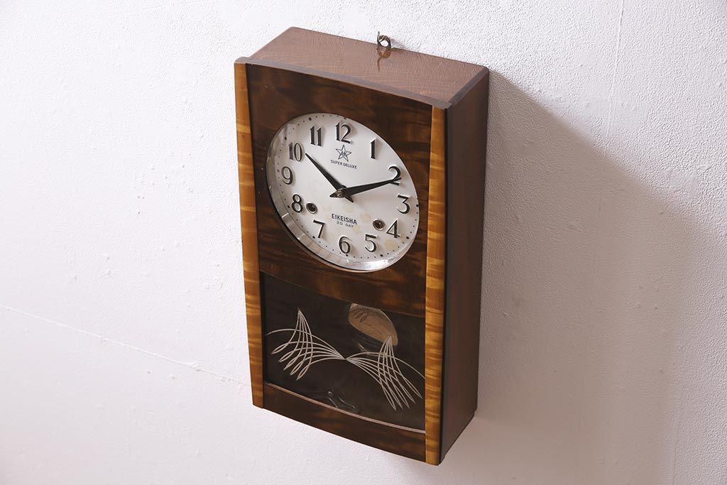 時計> 掛け時計 > 昭和レトロ EIKEISHA(栄計舎) SUPER DELUXE 高級感漂う振り子掛時計(柱時計、壁掛け時計)(R-044747)