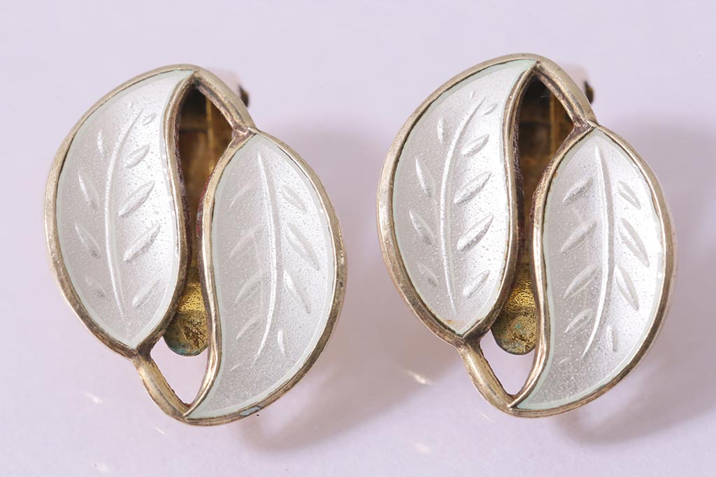 ラフジュ工房> アクセサリー > ヴィンテージアクセサリー ノルウェー シルバー DAVID ANDERNSEN(デヴィッド・アンデルセン) リーフモチーフのビンテージイヤリング ホワイト(R-044705)