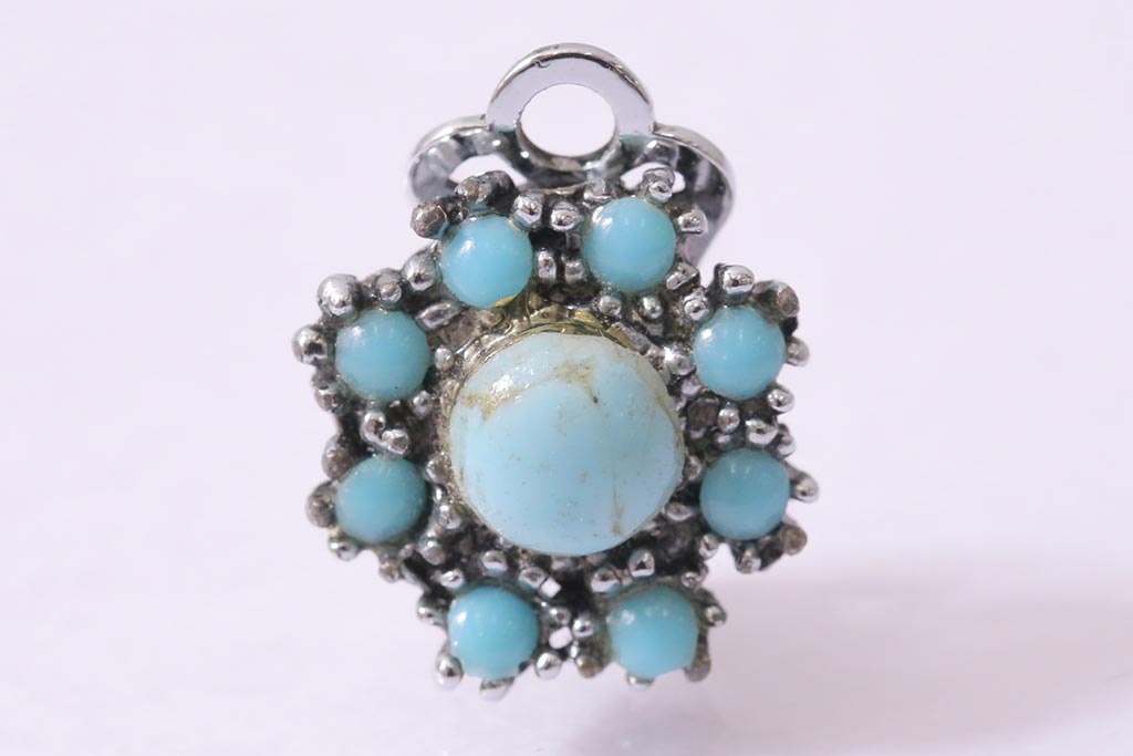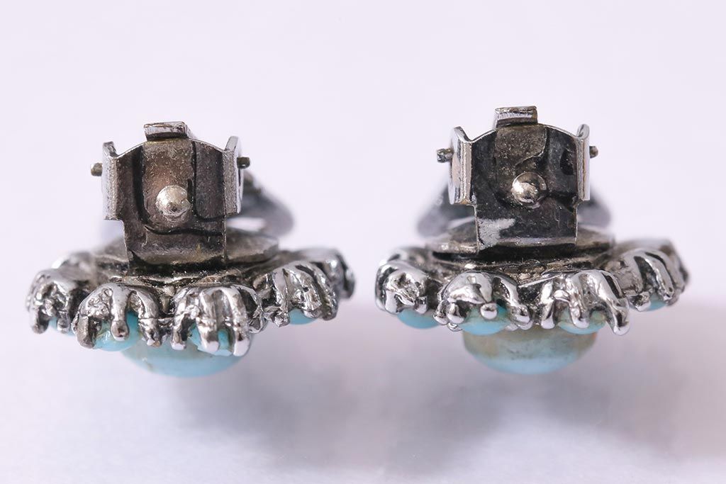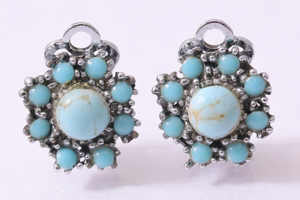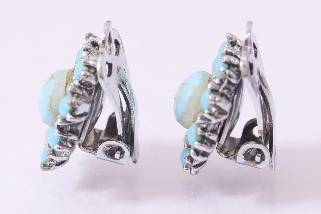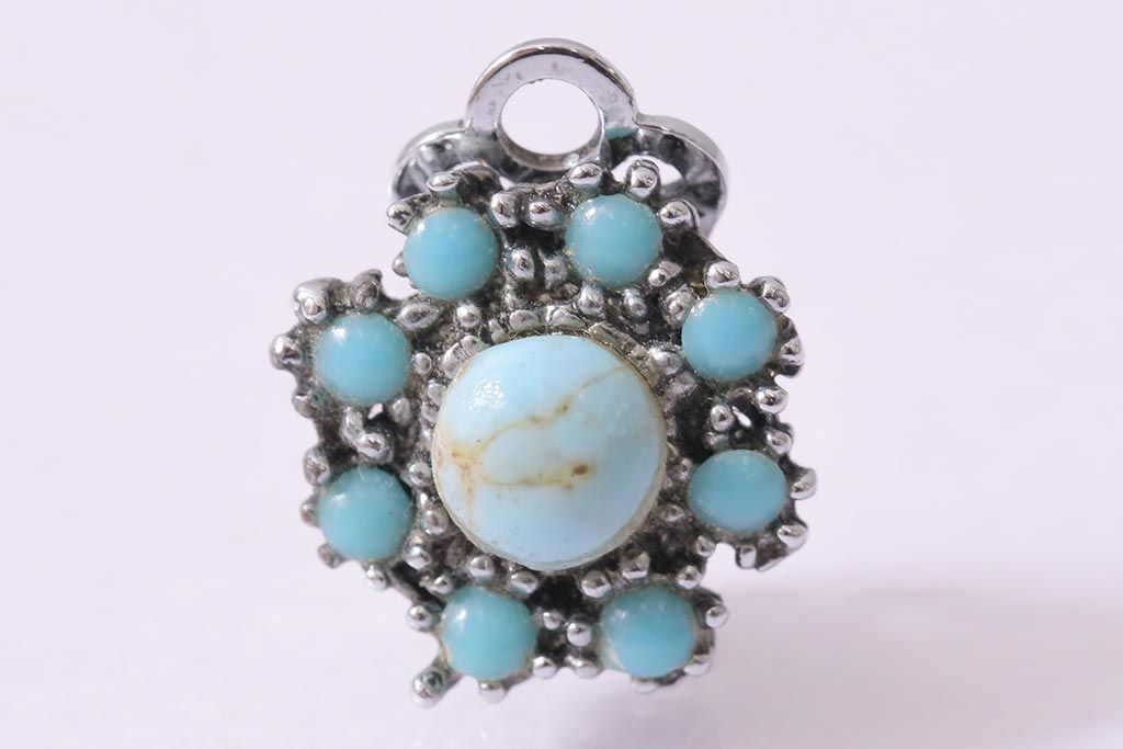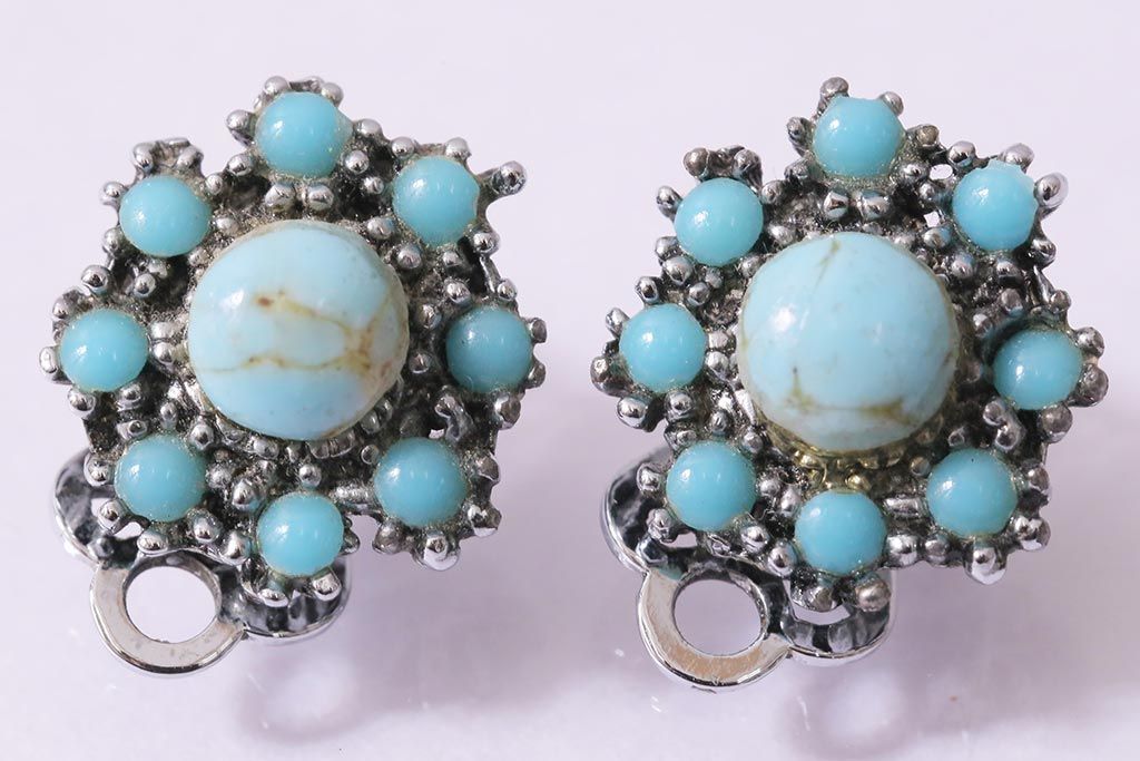 ラフジュ工房> アクセサリー > ヴィンテージアクセサリー イギリス ターコイズ風のブルーのビンテージイヤリング(R-044710)