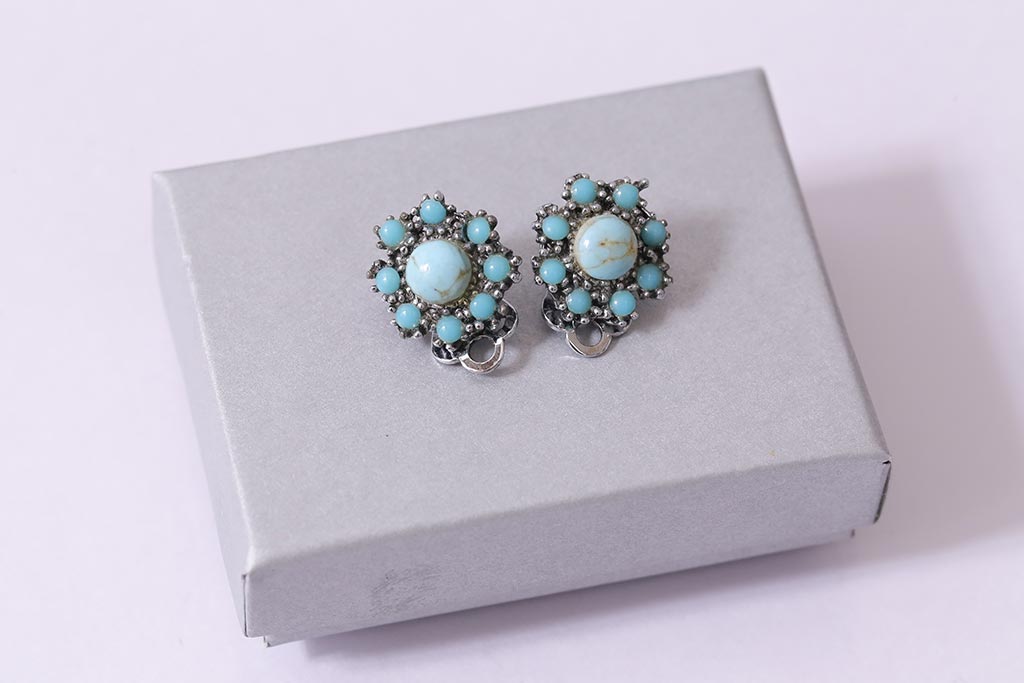 ラフジュ工房> 雑貨 > ヴィンテージアクセサリー イギリス ターコイズ風のブルーのビンテージイヤリング(R-044710)