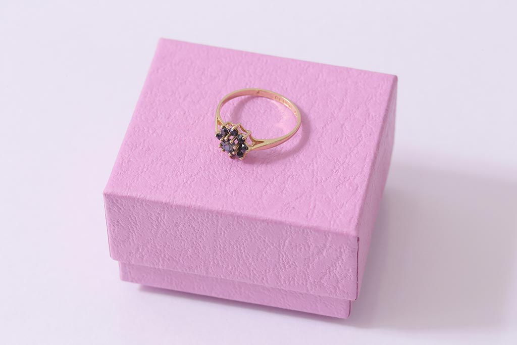 ラフジュ工房> 雑貨 > ヴィンテージアクセサリー イギリス ゴールド9K 濃青サファイア フラワーモチーフのリング(指輪、ビンテージ)(R-044712)