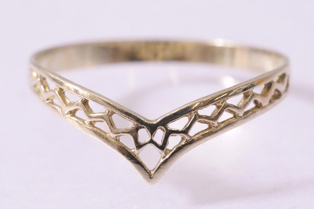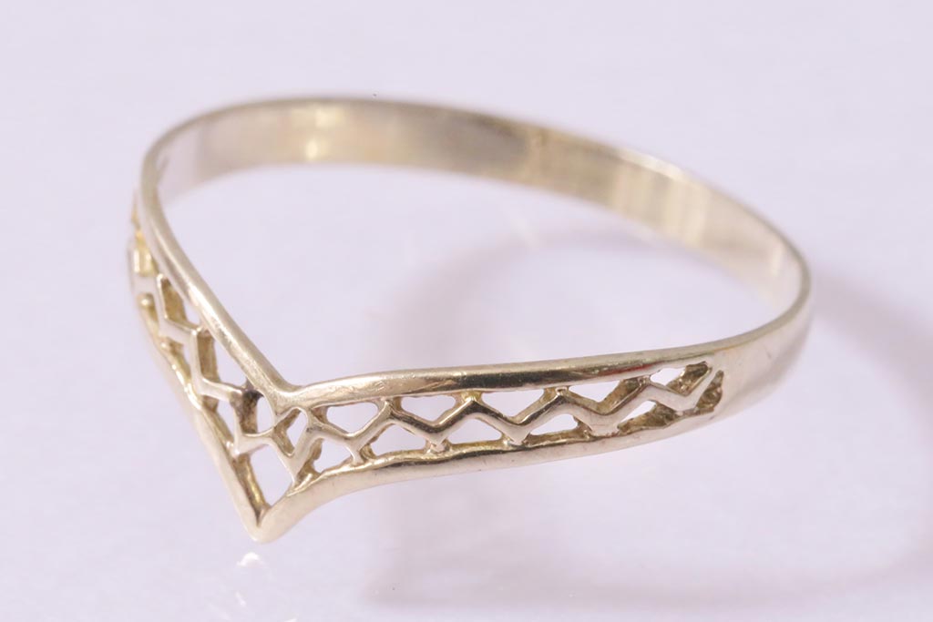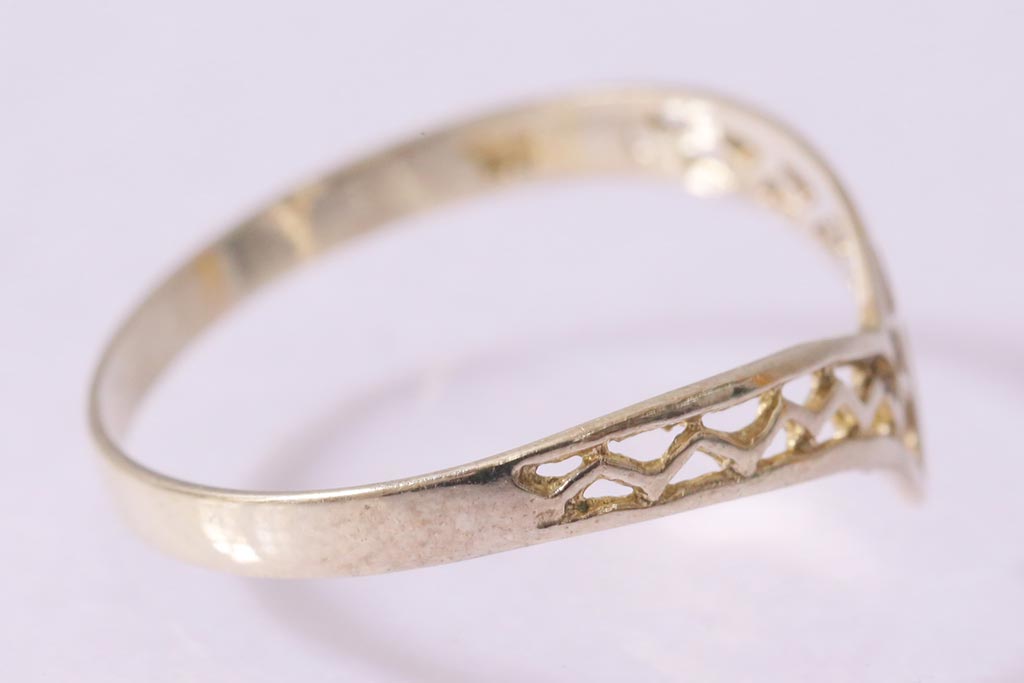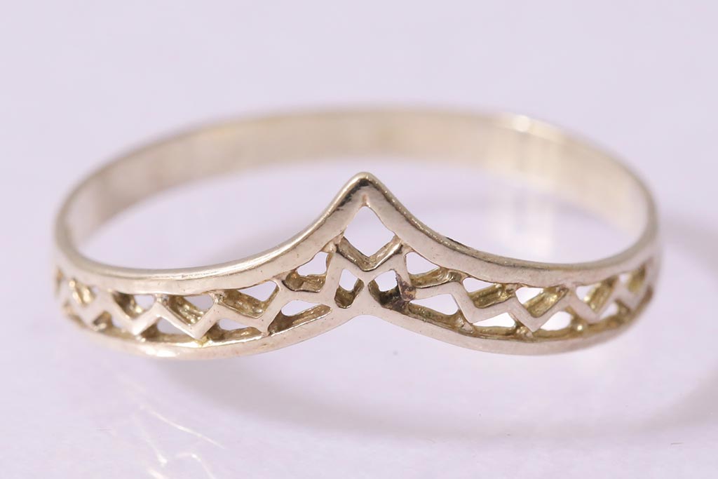 ヴィンテージアクセサリー イギリス シルバー V字モチーフ 透かしデザインのリング(指輪、ビンテージ)(R-044713)