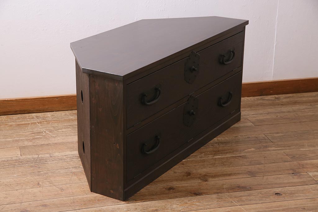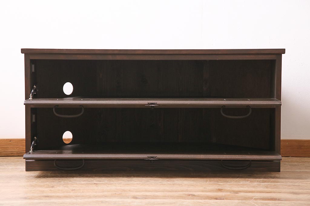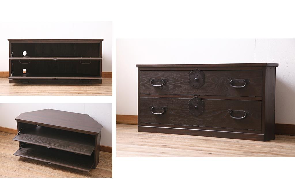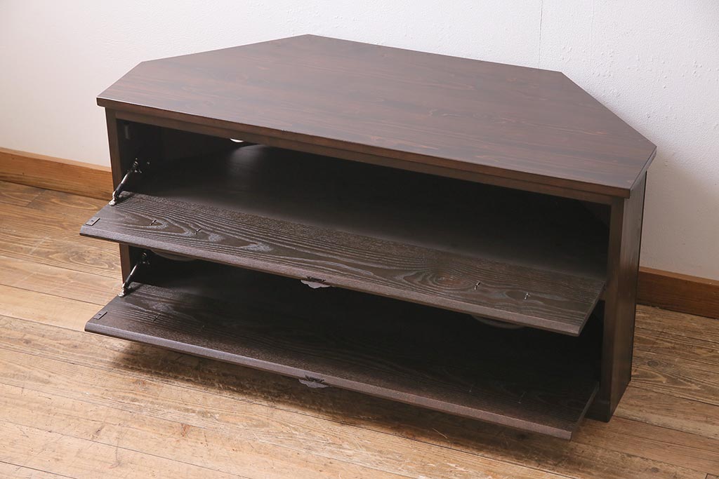 ラフジュ工房オリジナル 古金具リメイク 前板栗材 ヒノキ材 フラップダウン扉が使いやすい和モダンなコーナーテレビ台(キャビネット、テレビボード、収納棚)(R-044728)