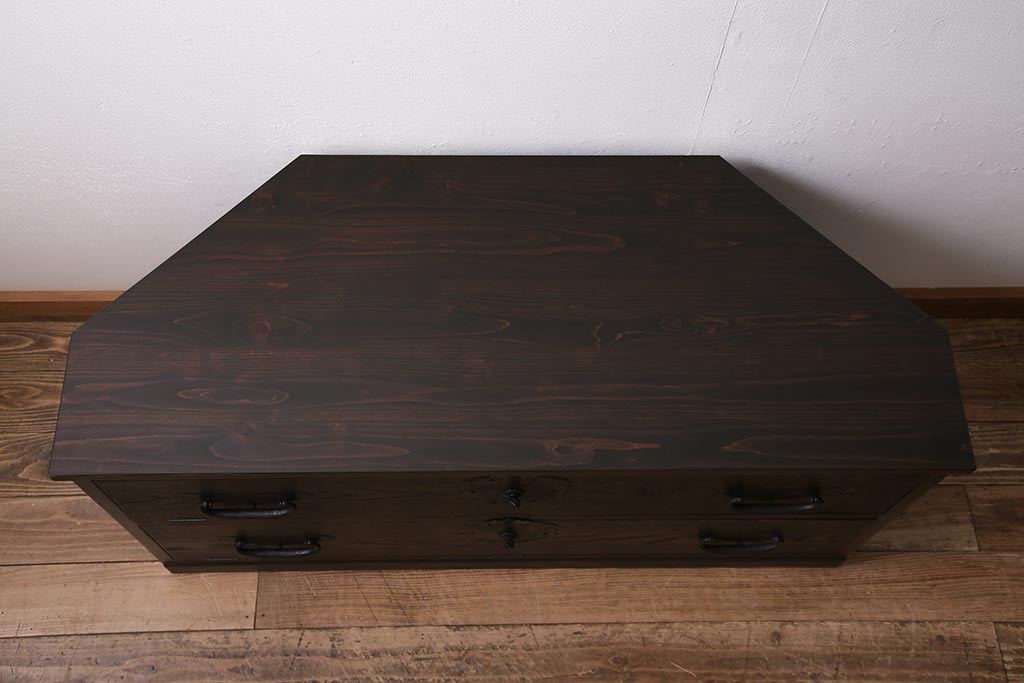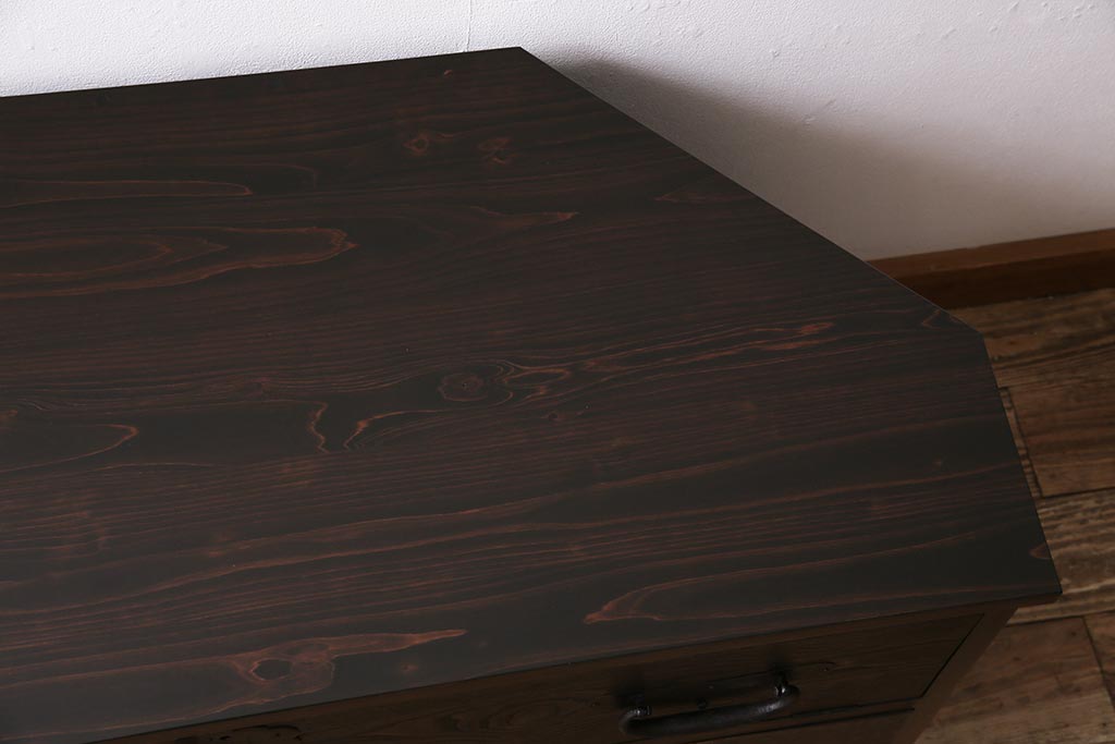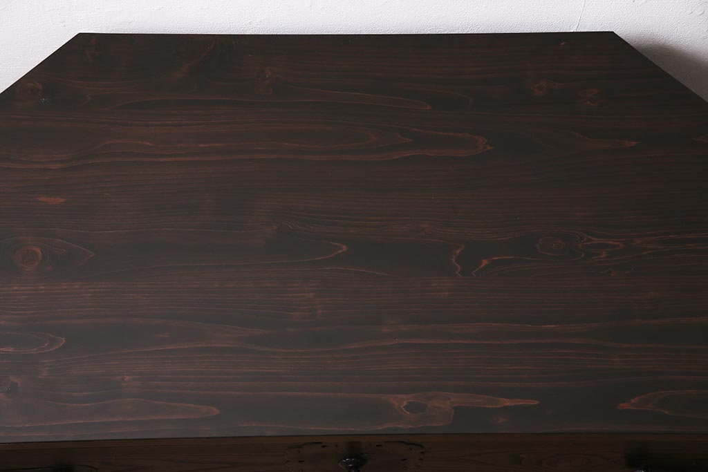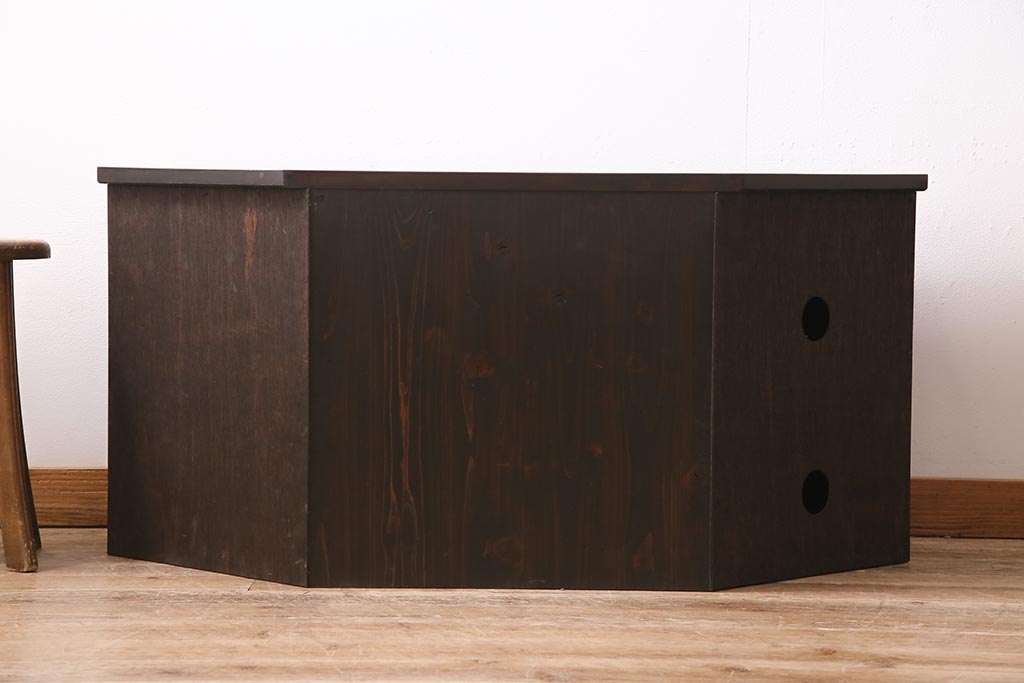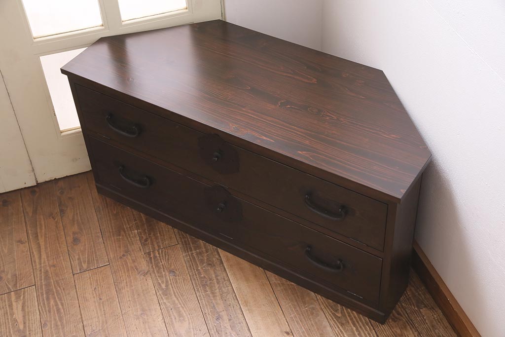ラフジュ工房オリジナル 古金具リメイク 前板栗材 ヒノキ材 フラップダウン扉が使いやすい和モダンなコーナーテレビ台(キャビネット、テレビボード、収納棚)(R-044728)