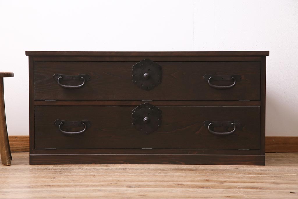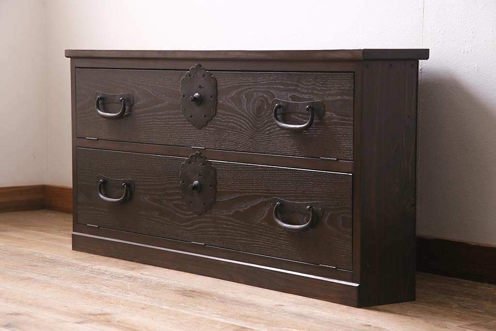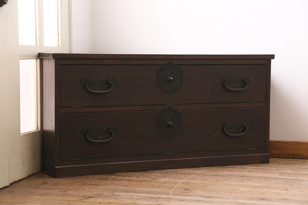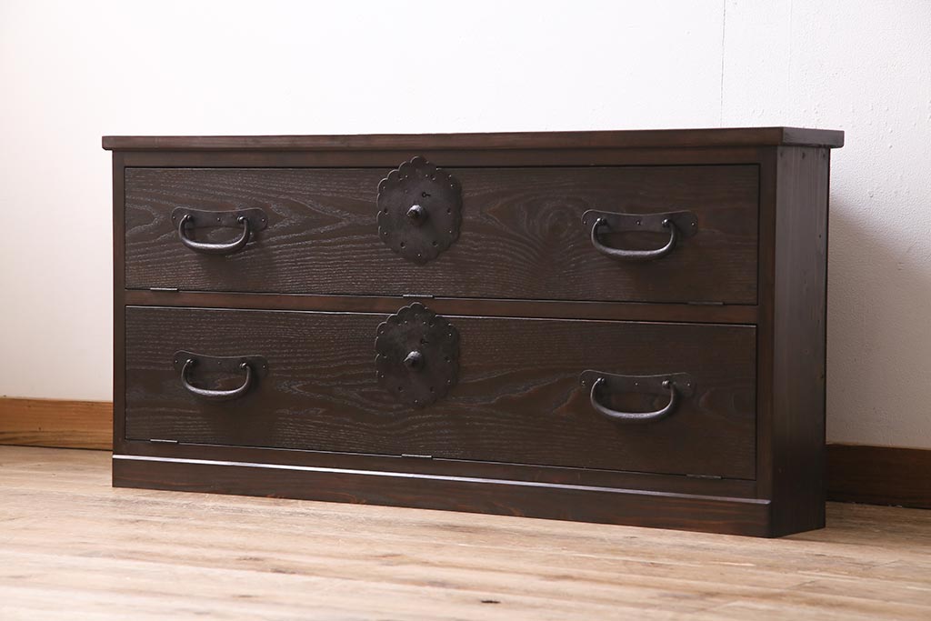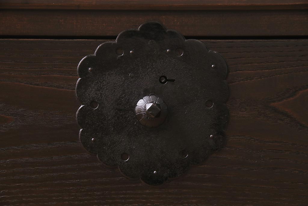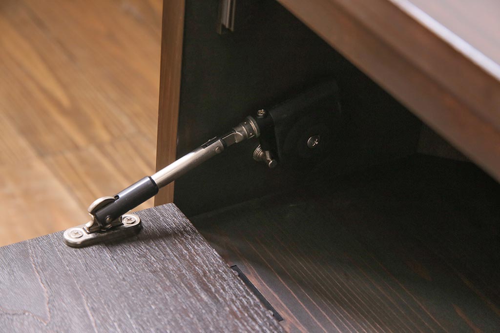 ラフジュ工房> キャビネット・戸棚> テレビ台・ローボード > ラフジュ工房オリジナル 古金具リメイク 前板栗材 ヒノキ材 フラップダウン扉が使いやすい和モダンなコーナーテレビ台(キャビネット、テレビボード、収納棚)(R-044728)