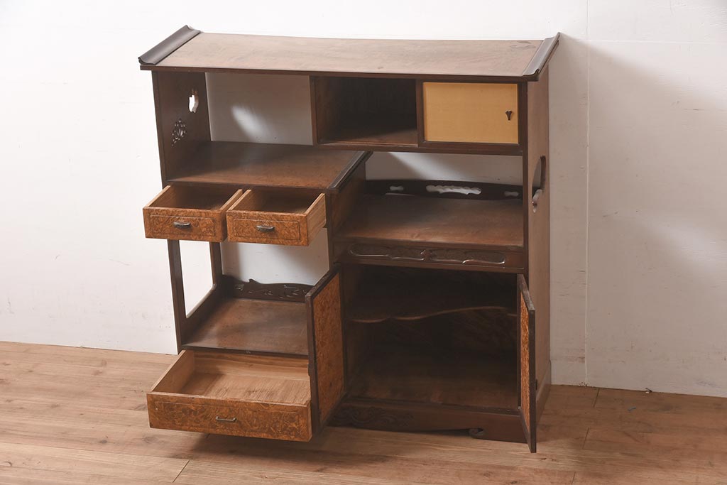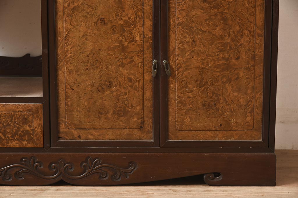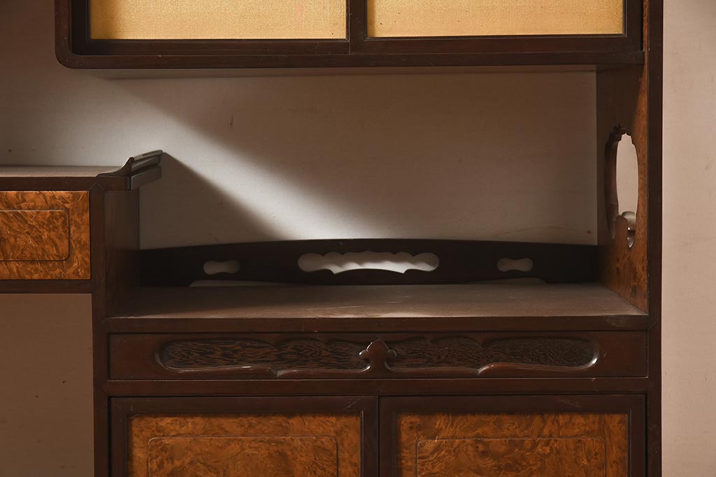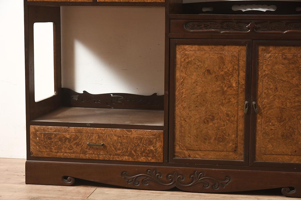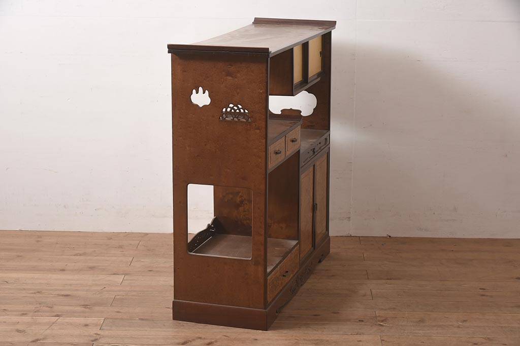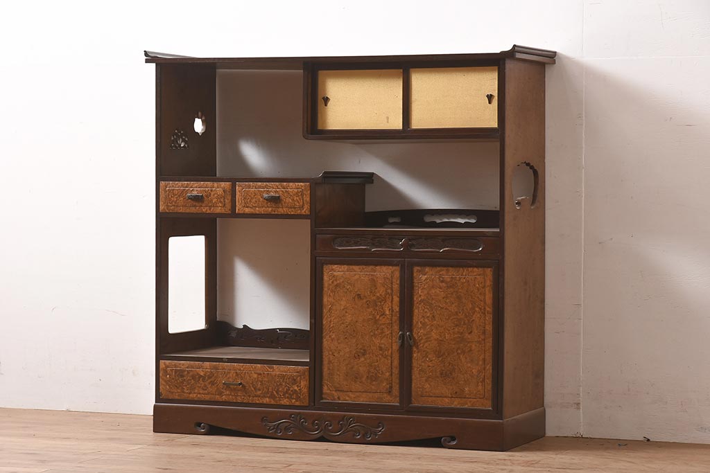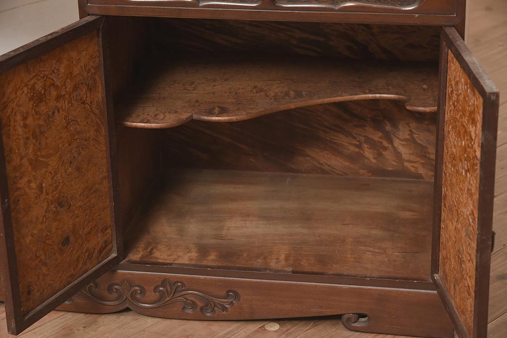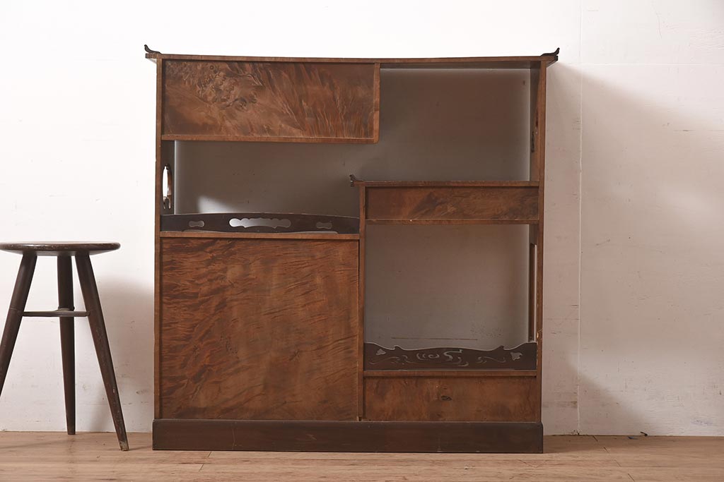 和箪笥> 茶箪笥・茶棚 > 和製アンティーク 指物工芸家具 昭和初期 総楓(カエデ)材・鳥眼杢 最高級品!凝った造りの飾り棚(茶棚、陳列棚、収納棚、戸棚)(R-044771)