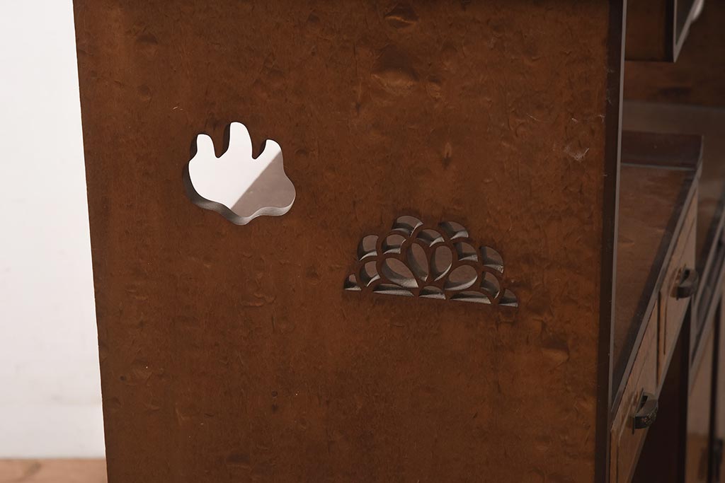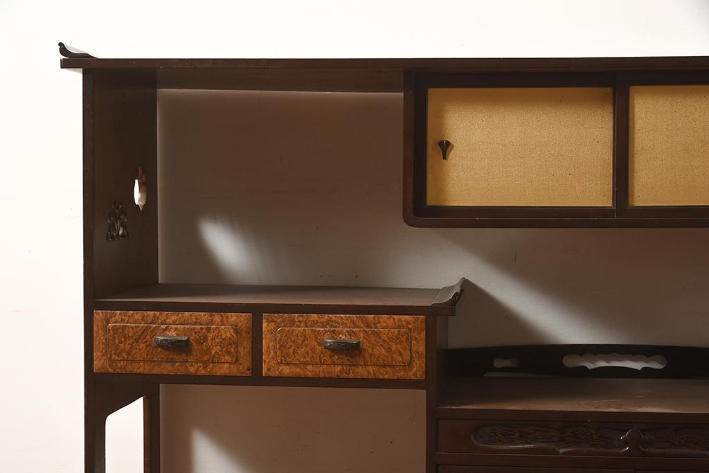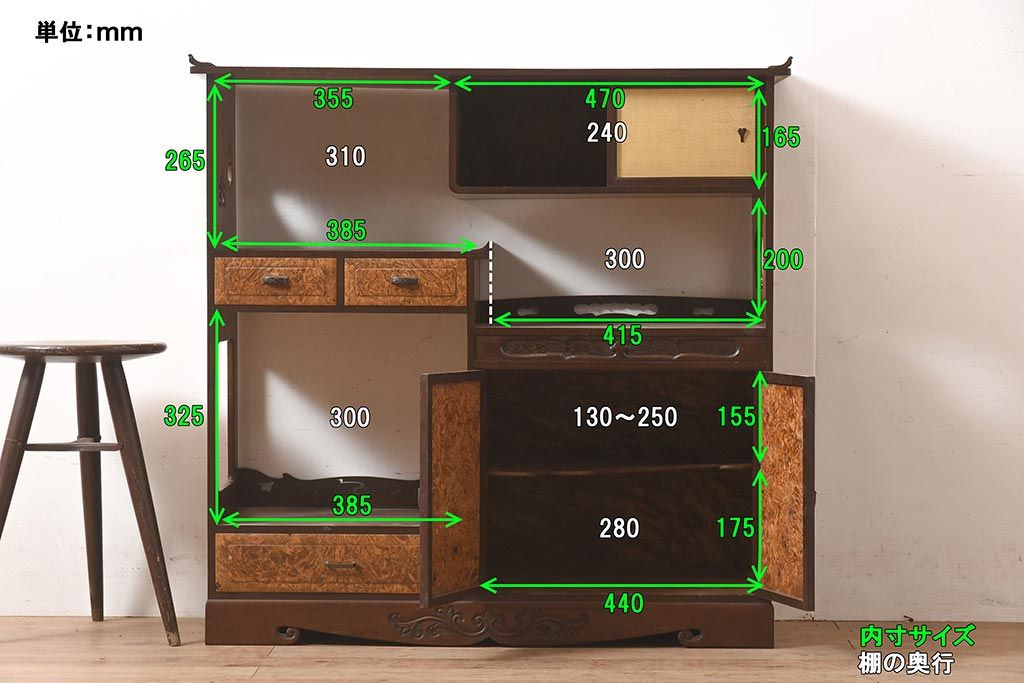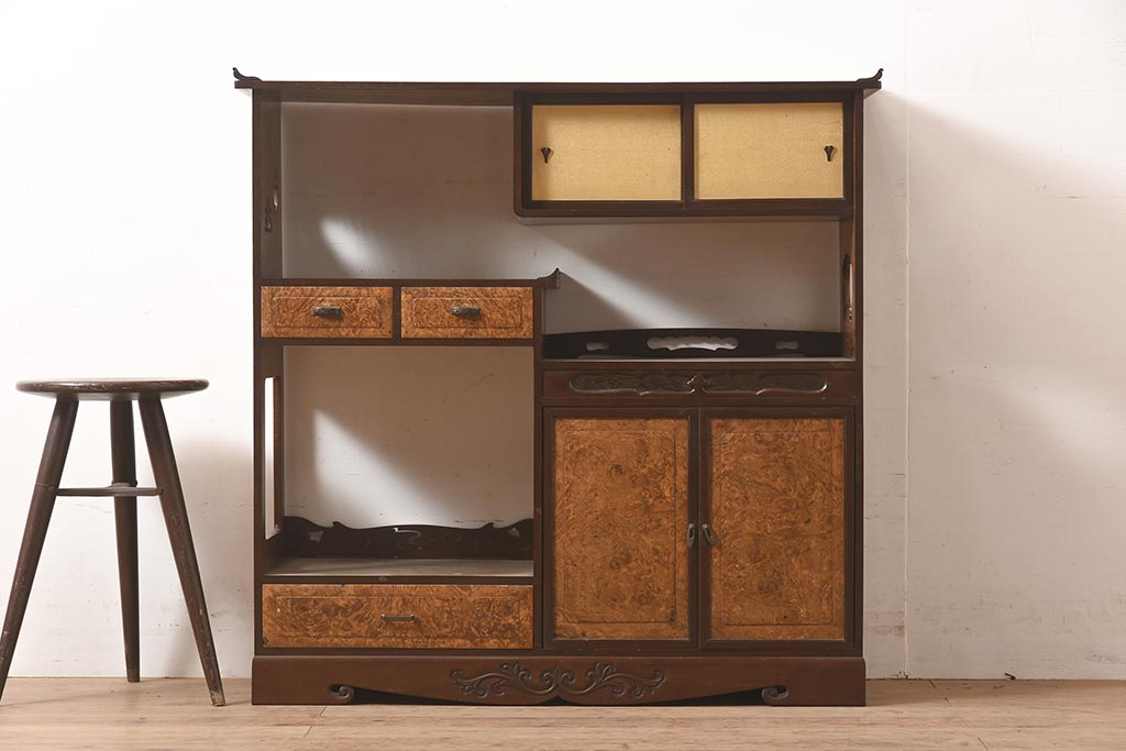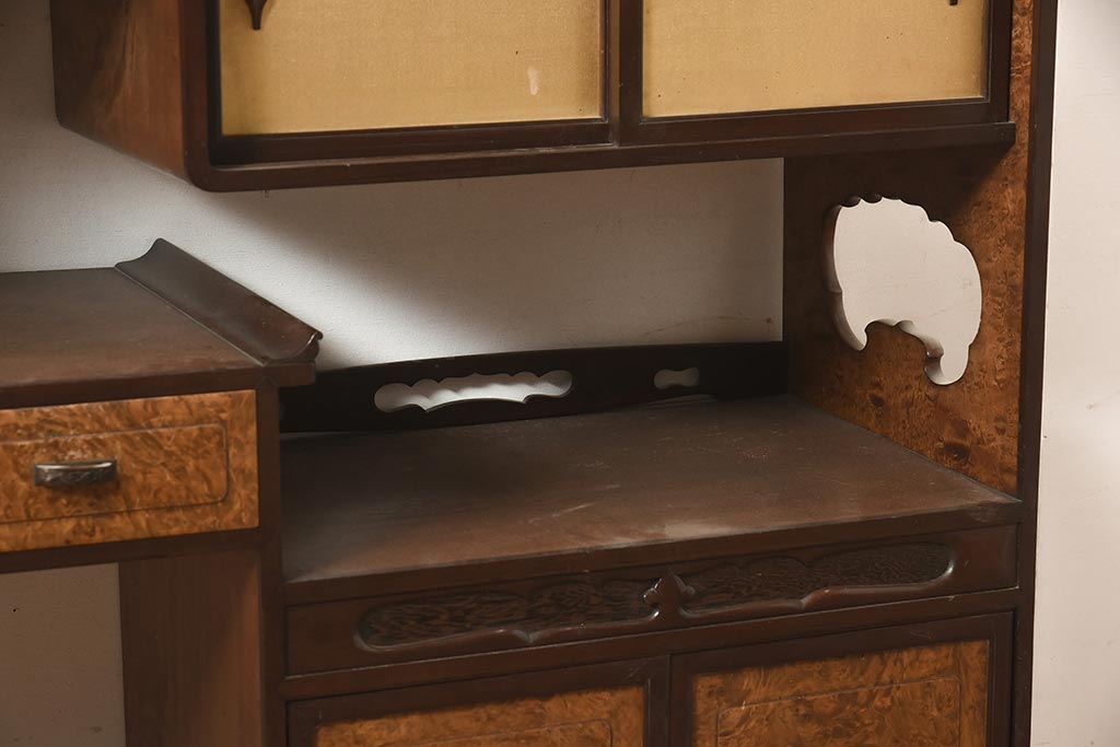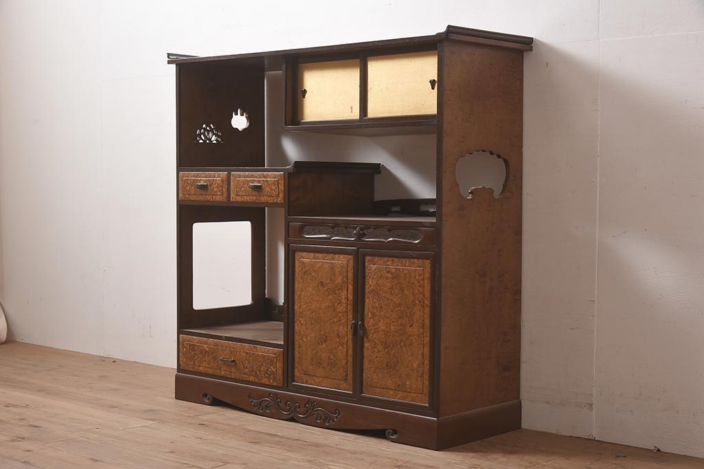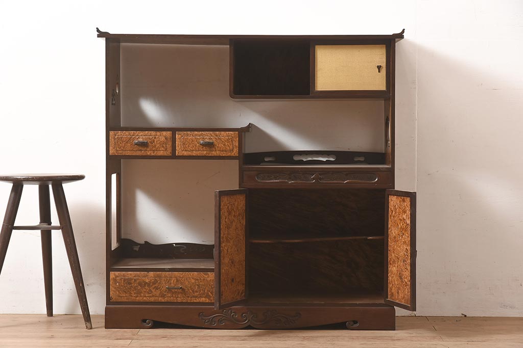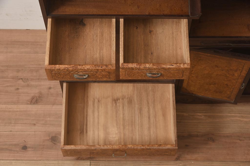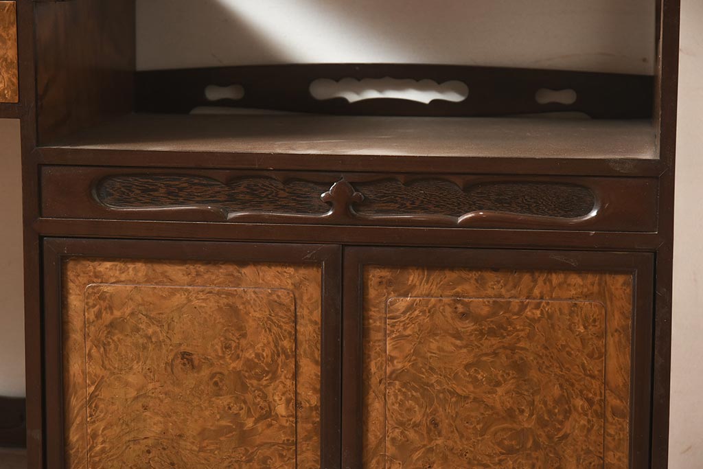 和箪笥> 茶箪笥・茶棚 > 和製アンティーク 指物工芸家具 昭和初期 総楓(カエデ)材・鳥眼杢 最高級品!凝った造りの飾り棚(茶棚、陳列棚、収納棚、戸棚)(R-044771)