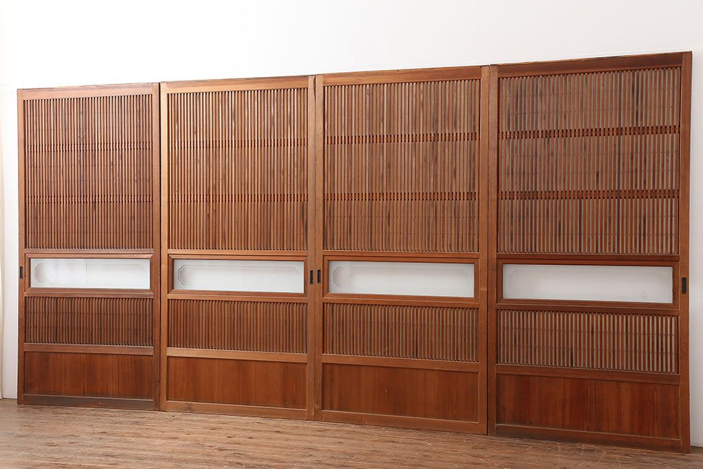 ドア・建具> 格子戸 > アンティーク建具 裏障子付き 昭和初期 和風の空間づくりにおすすめな格子戸4枚セット(ガラス帯戸、引き戸、建具)(R-044789)
