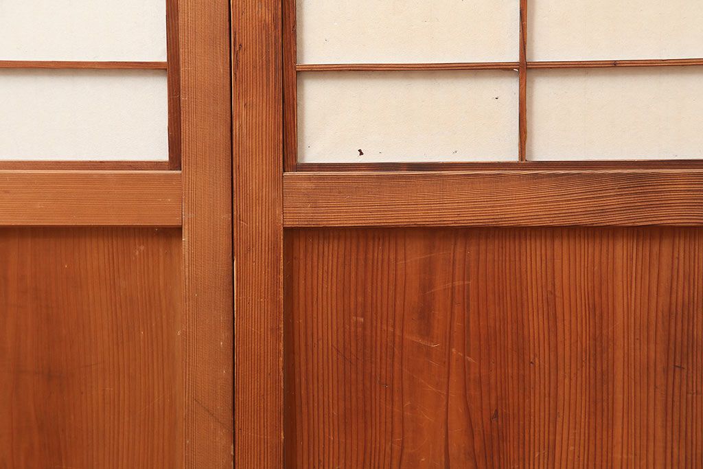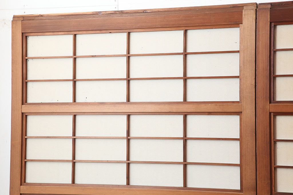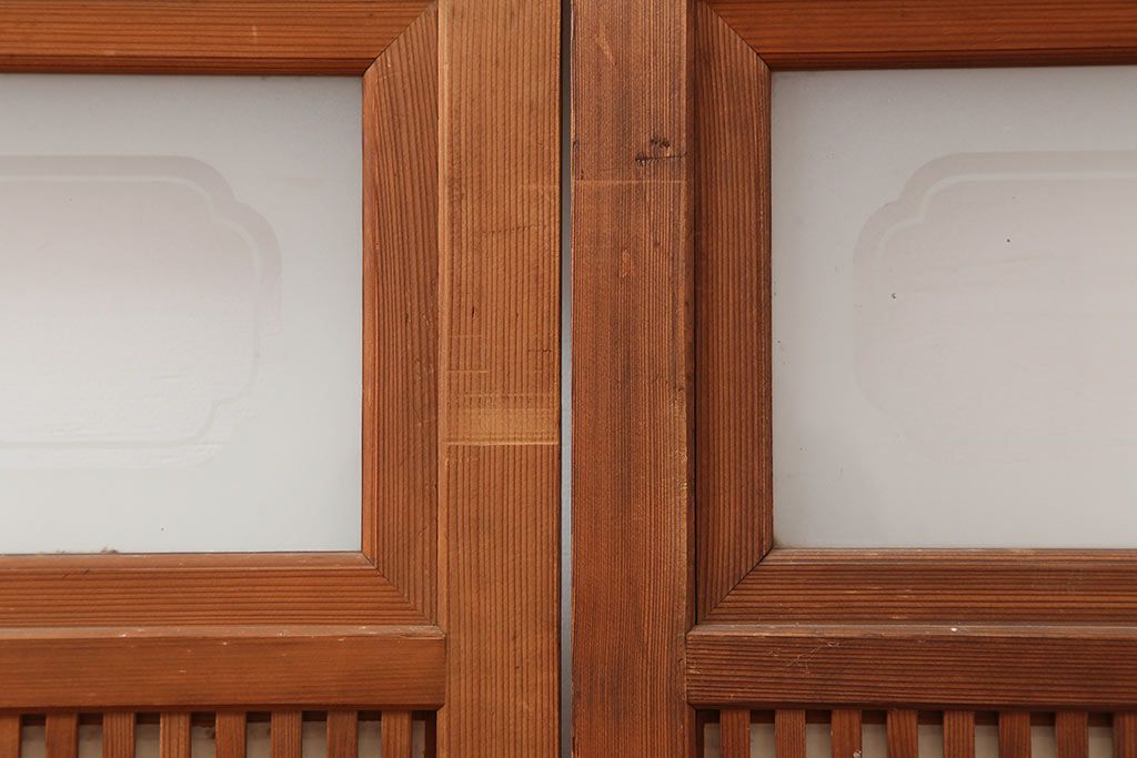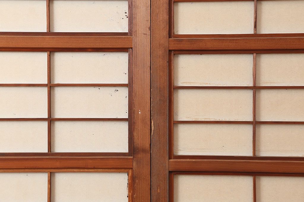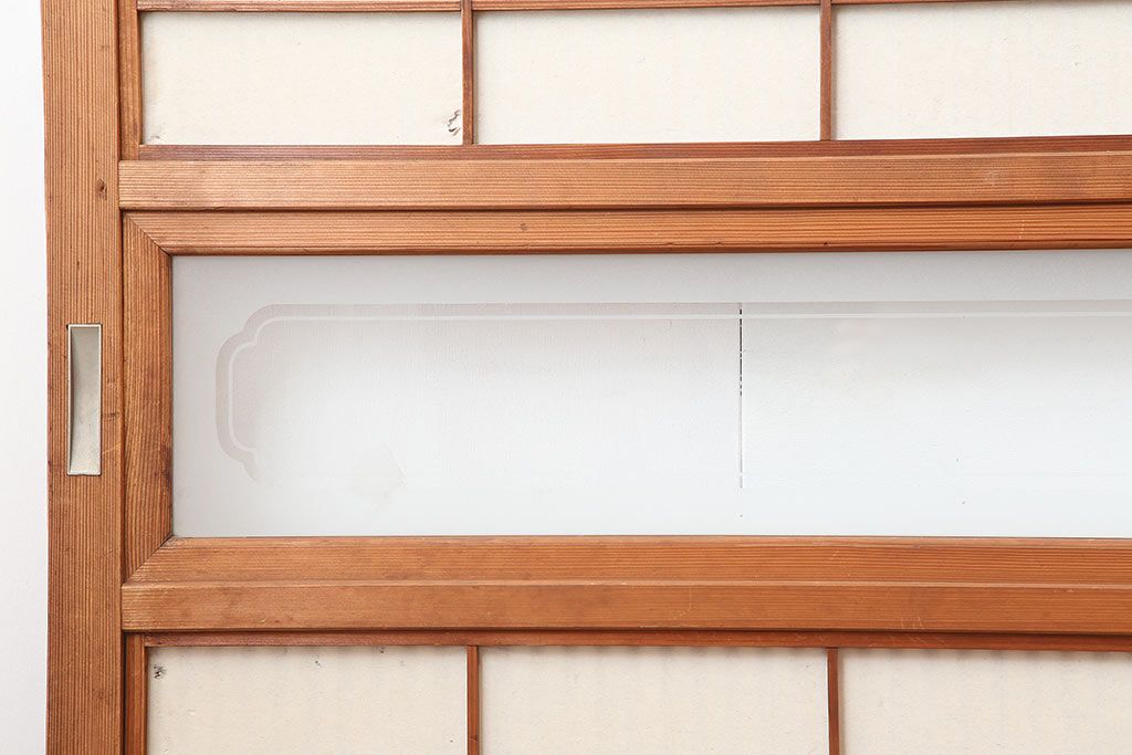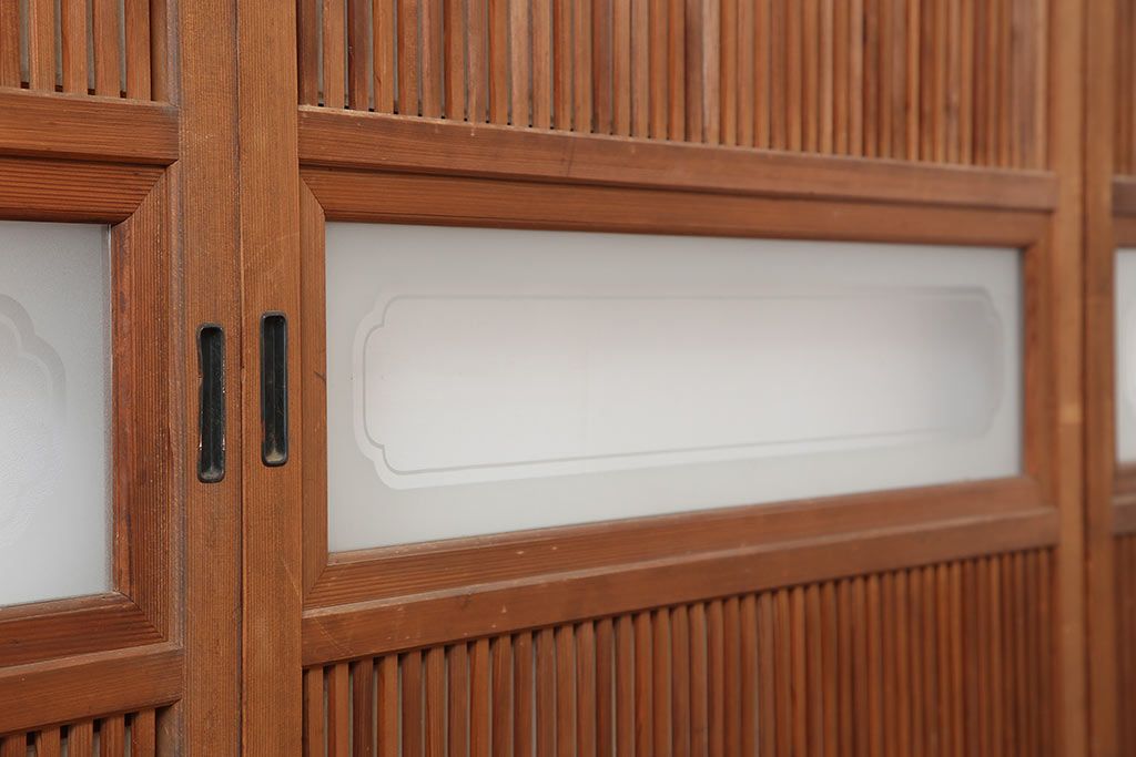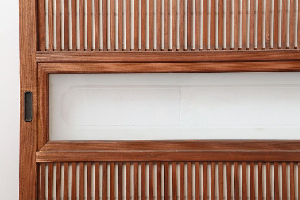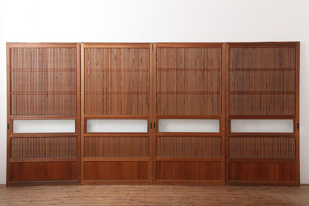 ドア・建具> 引き戸 > アンティーク建具 裏障子付き 昭和初期 和風の空間づくりにおすすめな格子戸4枚セット(ガラス帯戸、引き戸、建具)(R-044789)