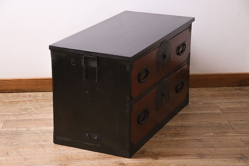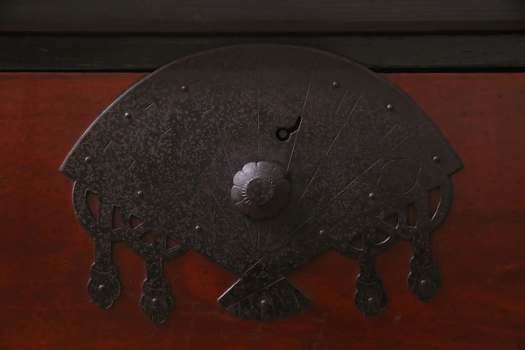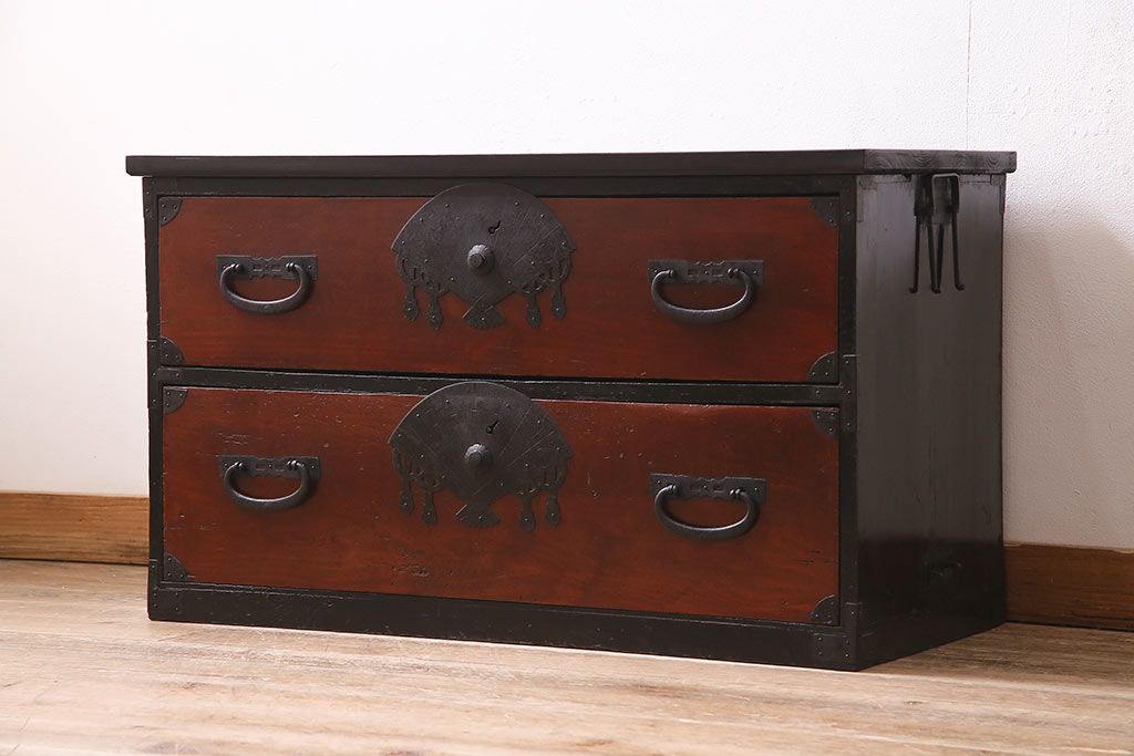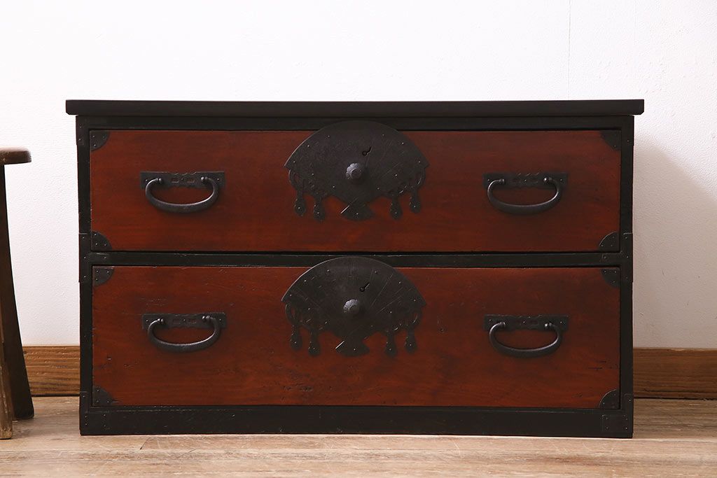 アンティーク家具 扇の飾り金具が存在感を引き立てる箪笥ローボード(衣装箪笥、引き出し)(R-039863)です。