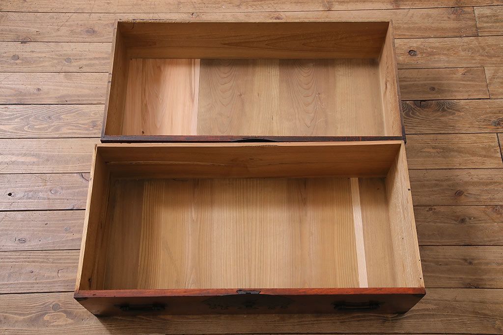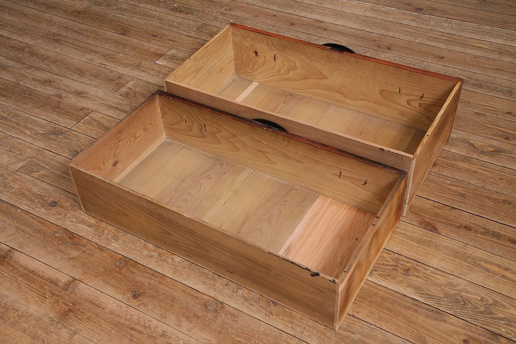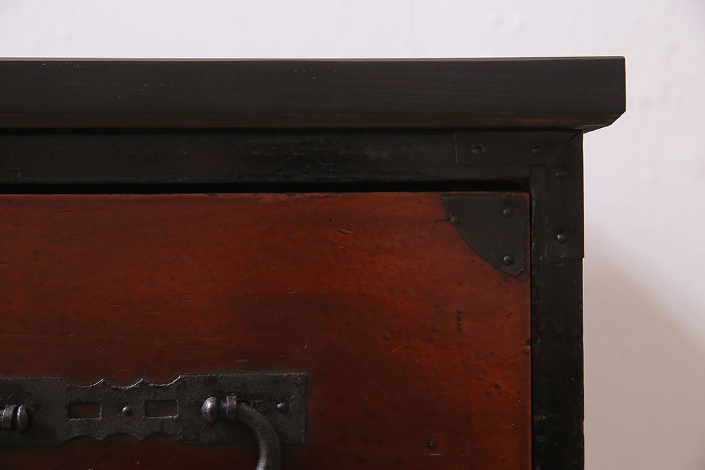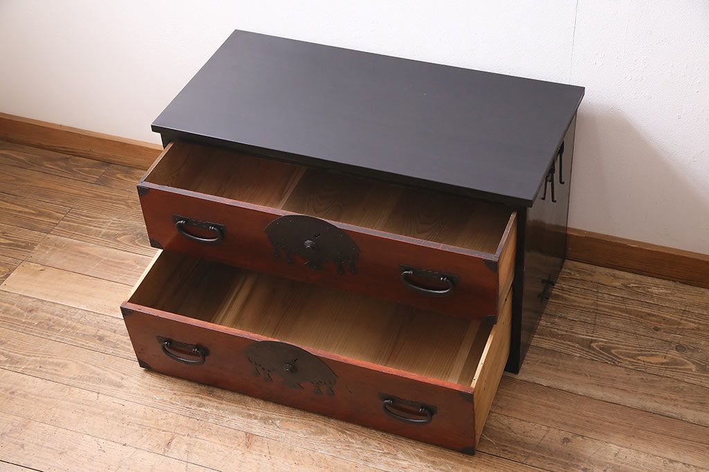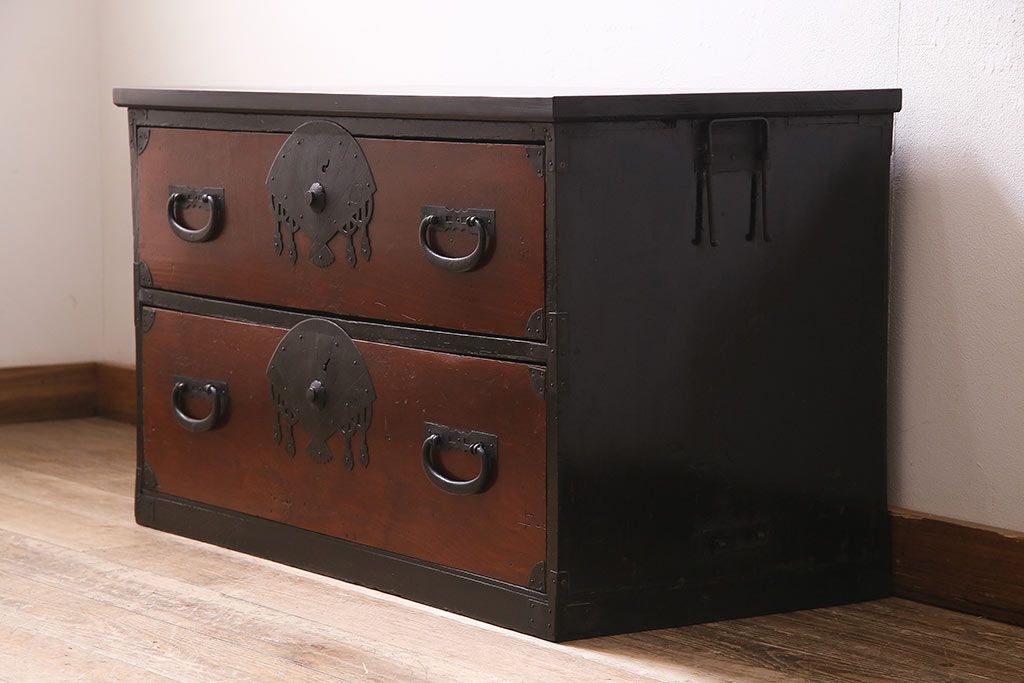 アンティーク家具 扇の飾り金具が存在感を引き立てる箪笥ローボード(衣装箪笥、引き出し)(R-039863)です。