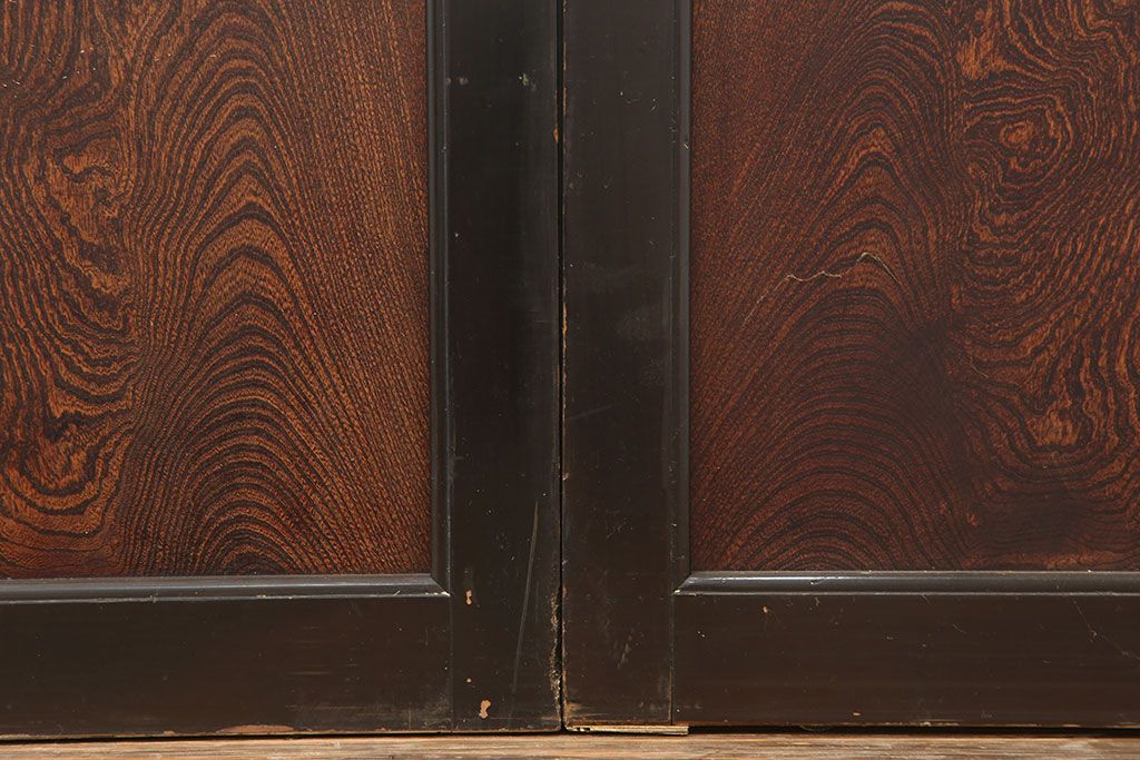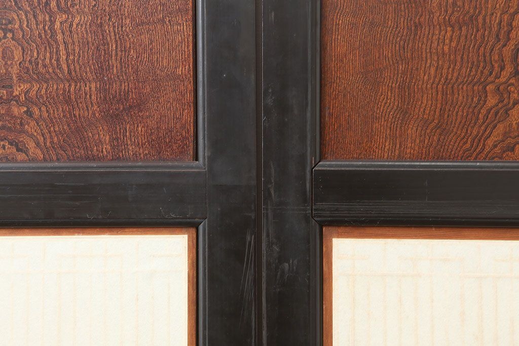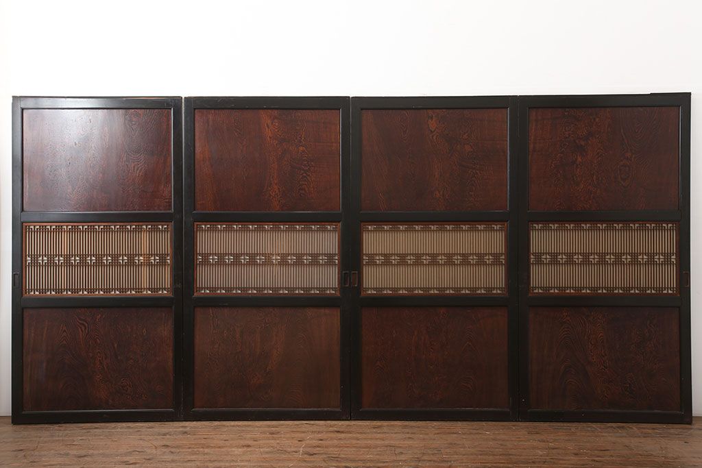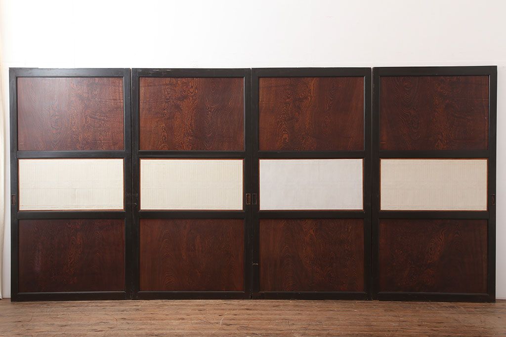 ドア・建具> 引き戸 > アンティーク建具 激レア 明治大正期 新潟産 漆塗り 玉杢 組子入り板戸4枚セット(帯戸、障子戸、建具、引き戸)(R-044767)