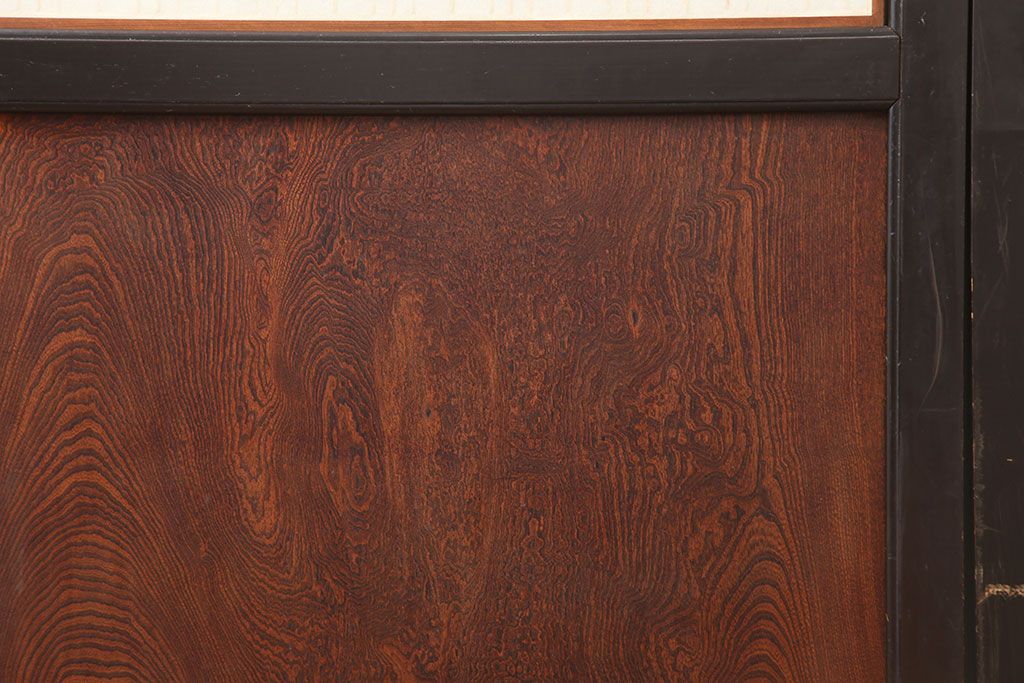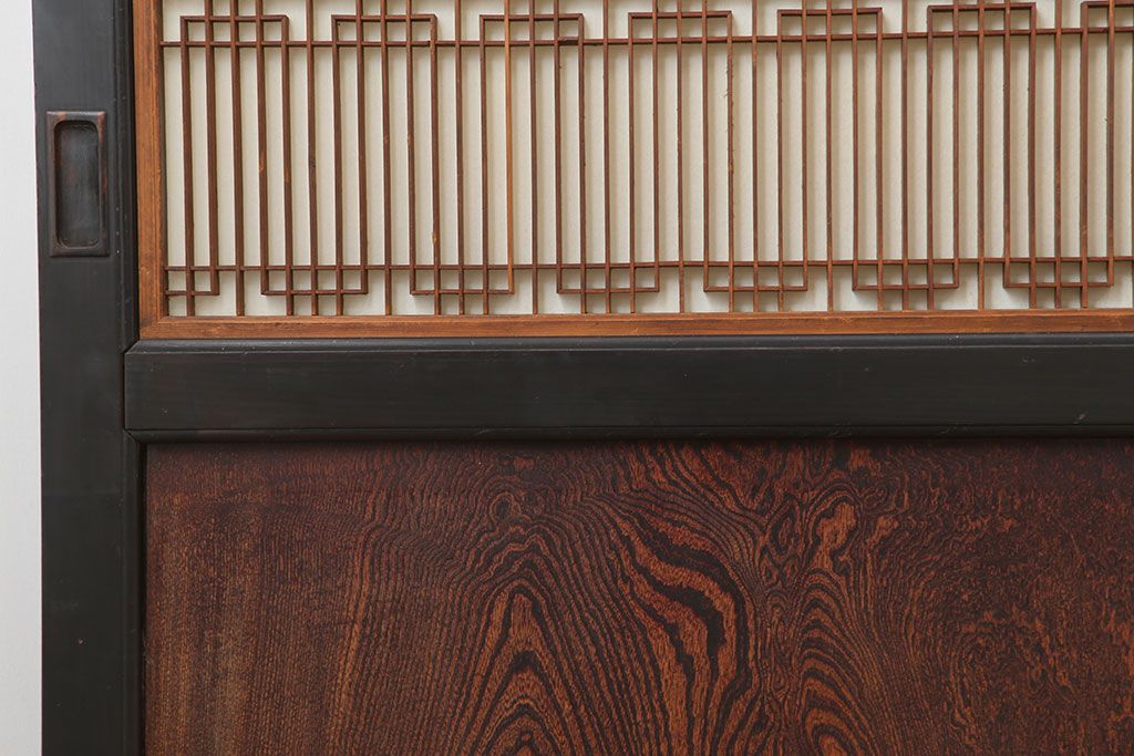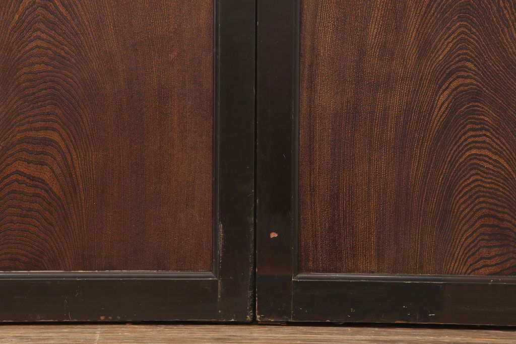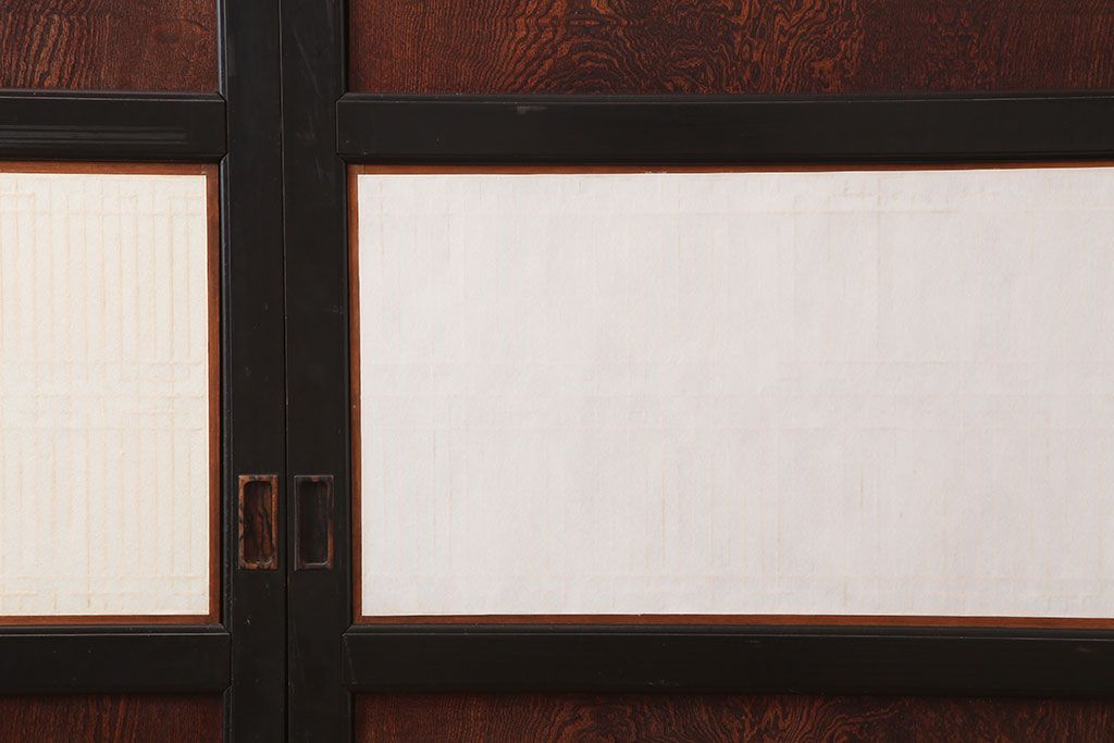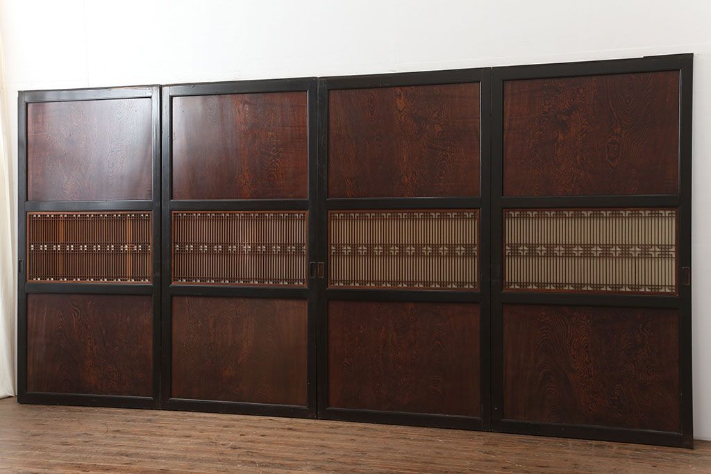 ドア・建具> 引き戸 > アンティーク建具 激レア 明治大正期 新潟産 漆塗り 玉杢 組子入り板戸4枚セット(帯戸、障子戸、建具、引き戸)(R-044767)
