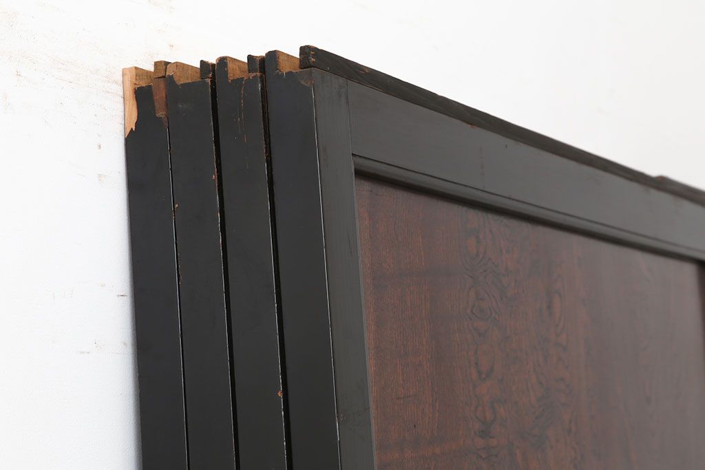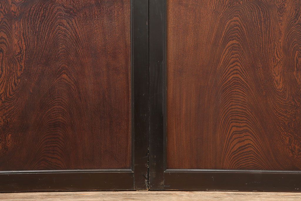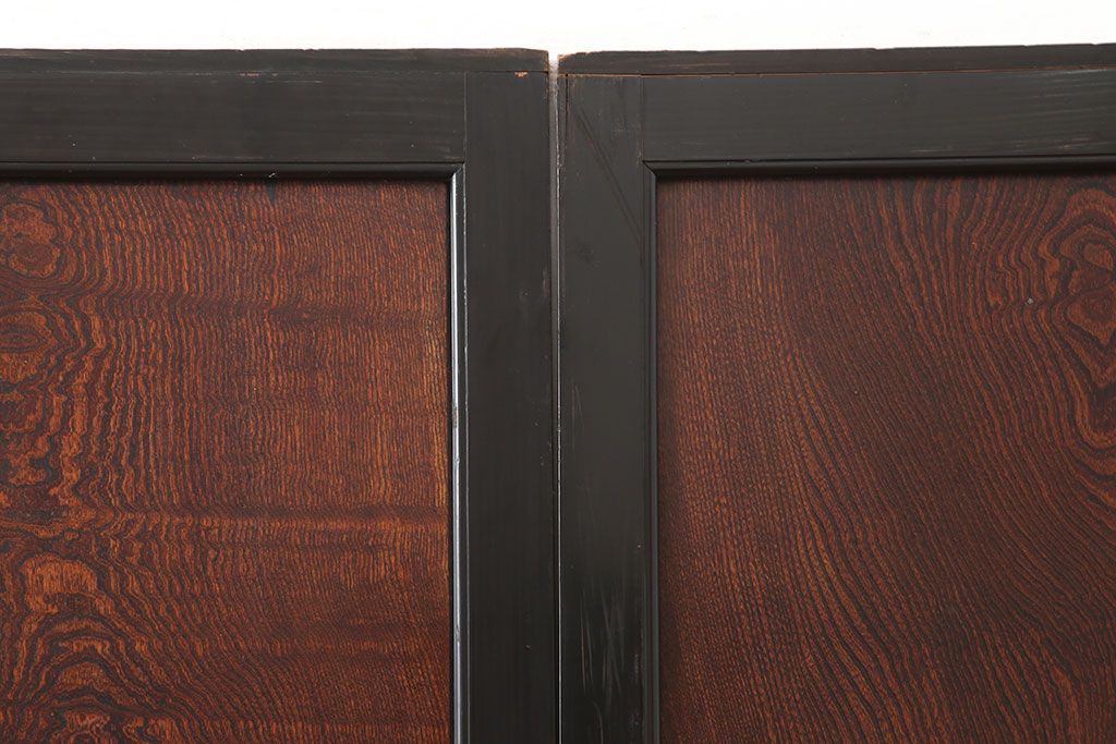 ドア・建具> 板戸・帯戸 > アンティーク建具 激レア 明治大正期 新潟産 漆塗り 玉杢 組子入り板戸4枚セット(帯戸、障子戸、建具、引き戸)(R-044767)