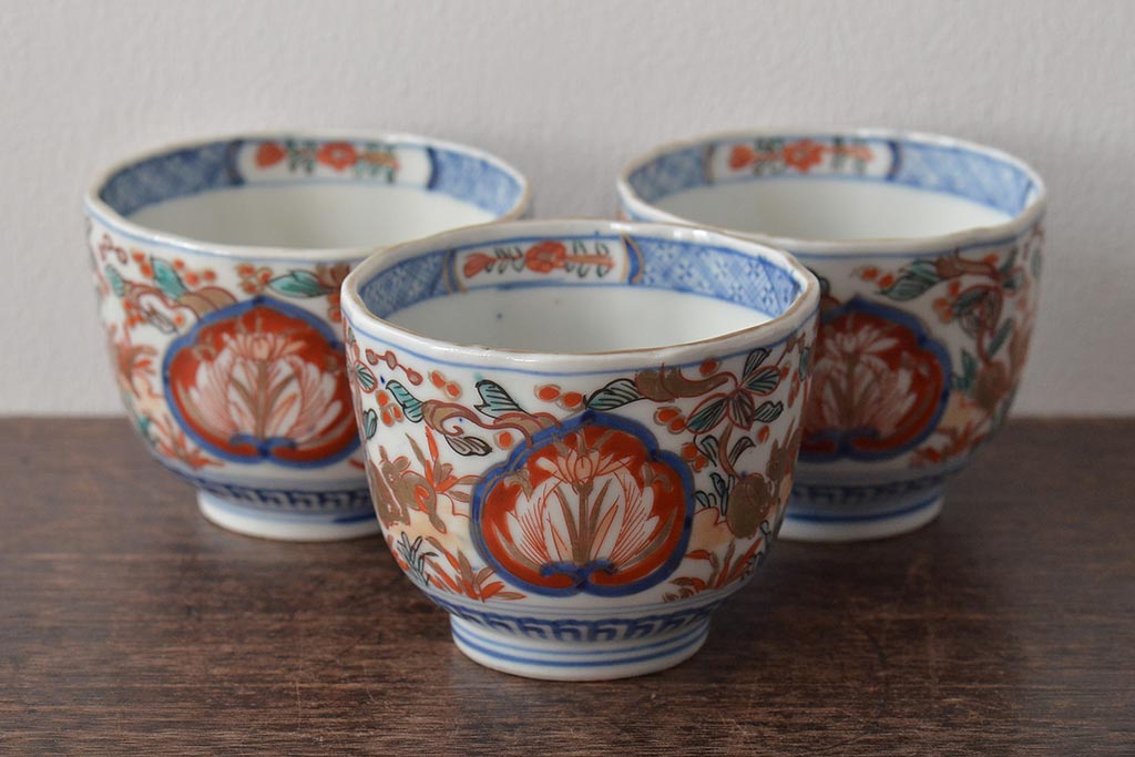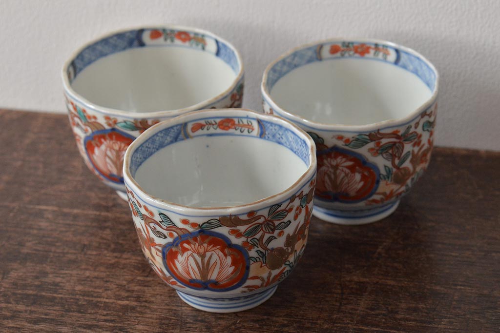ラフジュ工房> 和食器・茶道具> 急須・湯吞み > 幕末〜明治 伊万里焼 色絵金彩兎図 蕎麦猪口3客(R-044536)