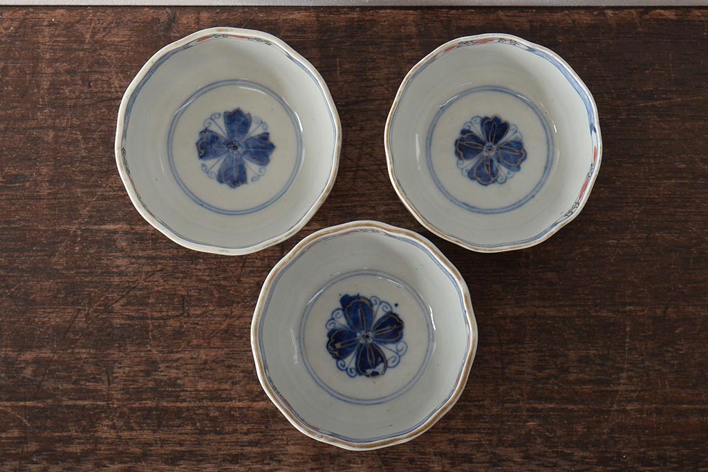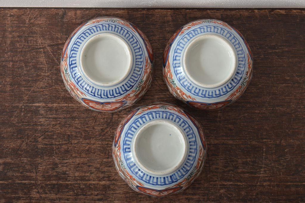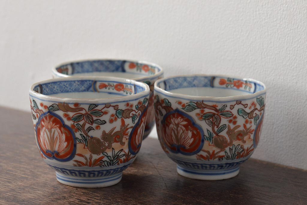 幕末〜明治 伊万里焼 色絵金彩兎図 蕎麦猪口3客(R-044536)