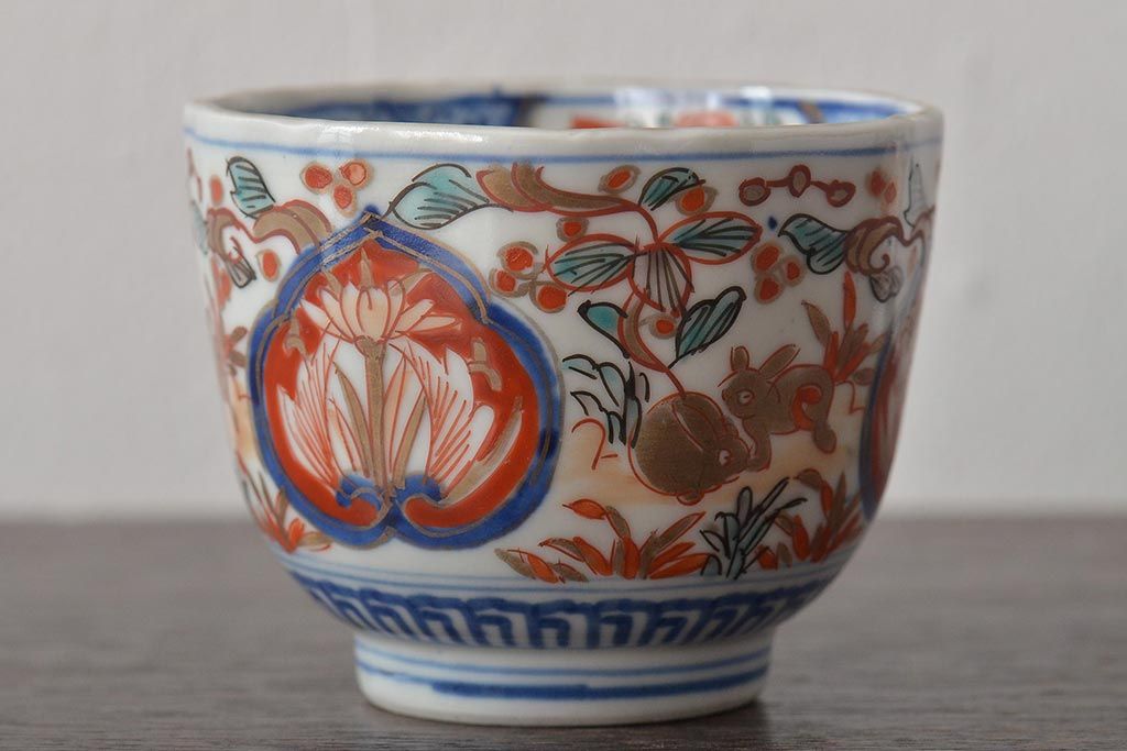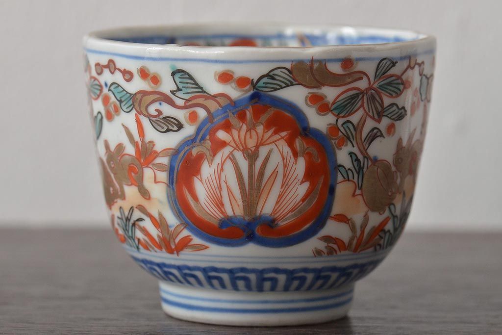 ラフジュ工房> 和食器・茶道具> 蕎麦猪口 > 幕末〜明治 伊万里焼 色絵金彩兎図 蕎麦猪口3客(R-044536)