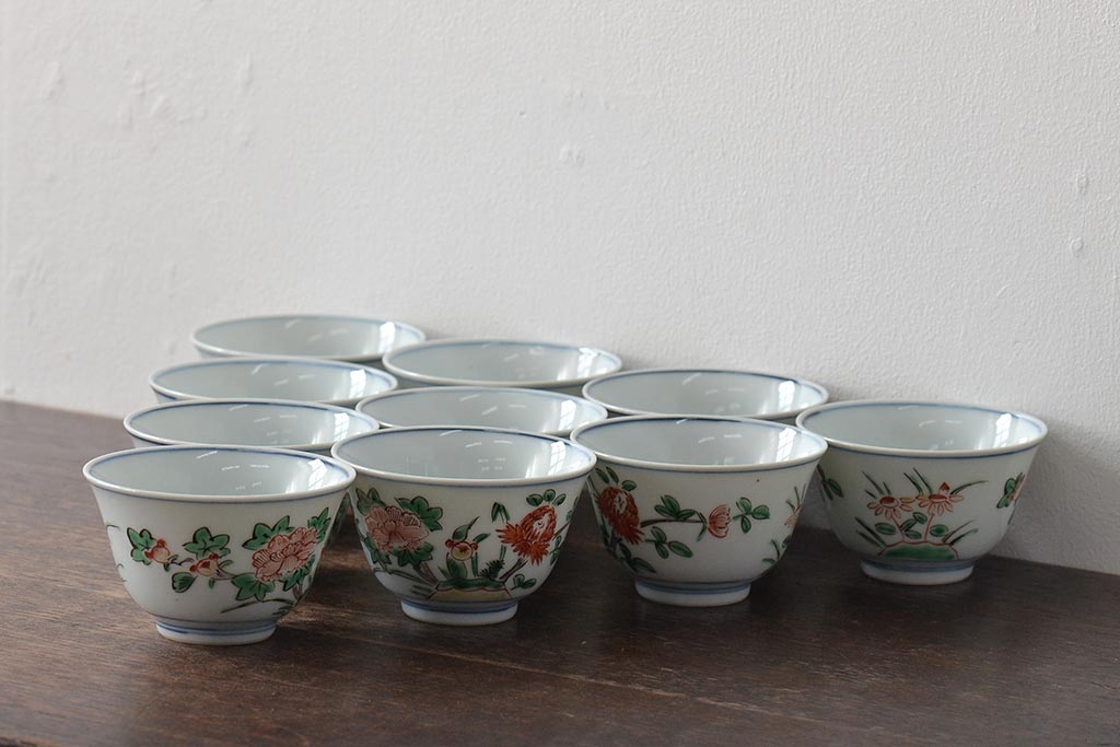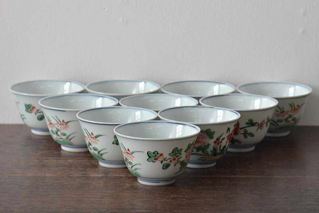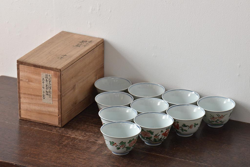 ラフジュ工房> 和食器・茶道具> お椀・茶碗 > 九谷陶源製 九谷赤絵茶碗10客(茶道具、共箱)(R-044417)
