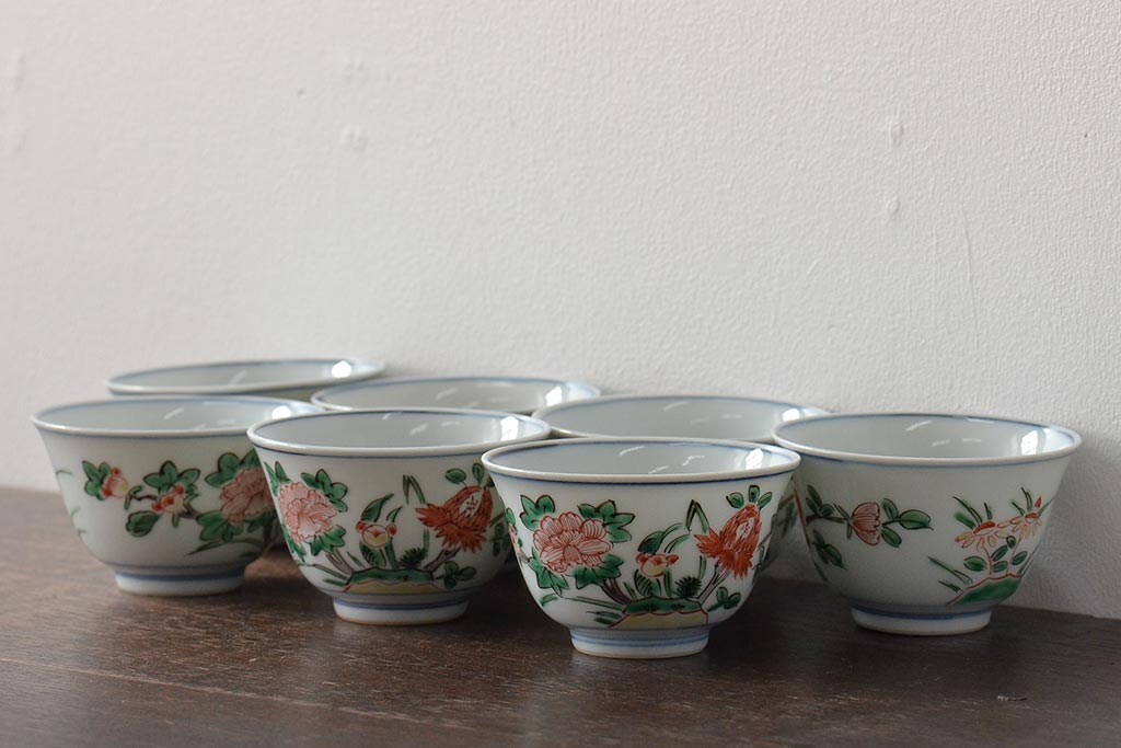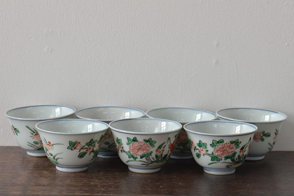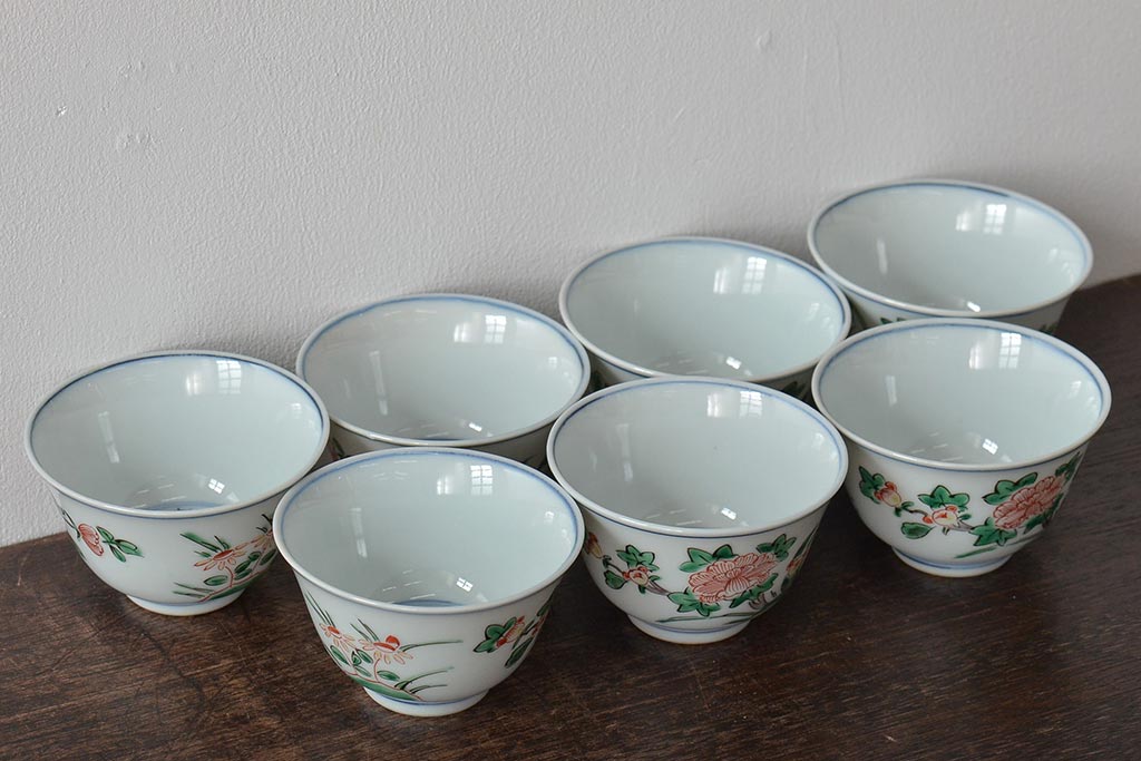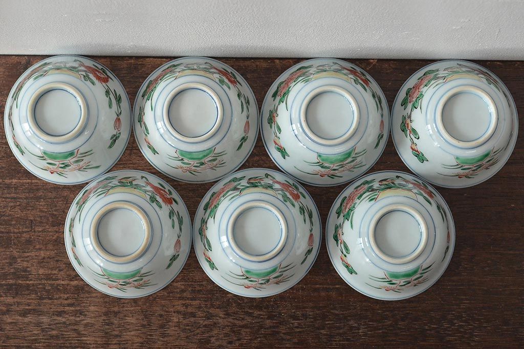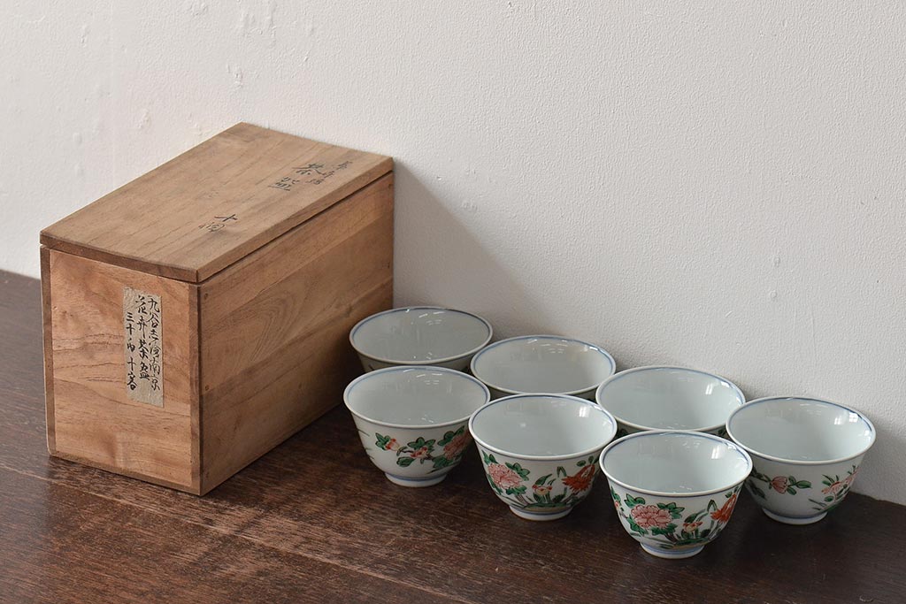 ラフジュ工房> 和食器・茶道具> お椀・茶碗 > 九谷陶源製 九谷赤絵茶碗7客(茶道具、共箱)(R-044419)