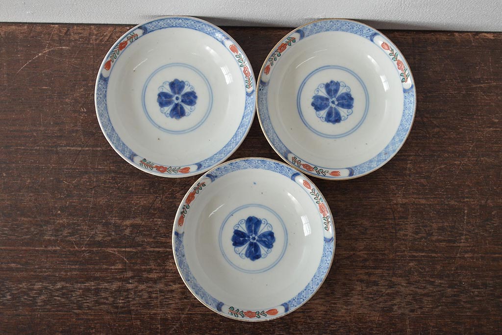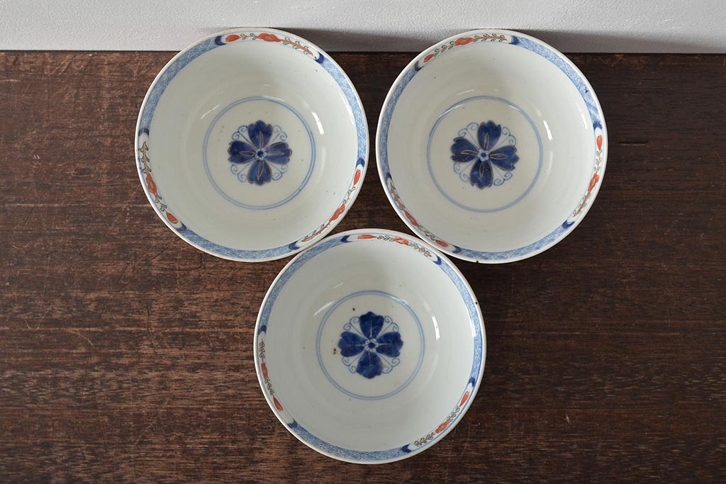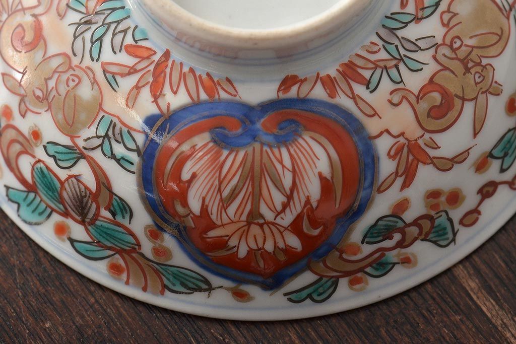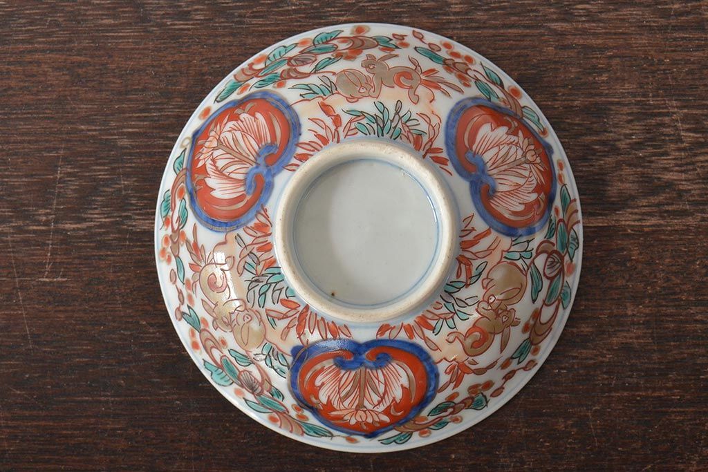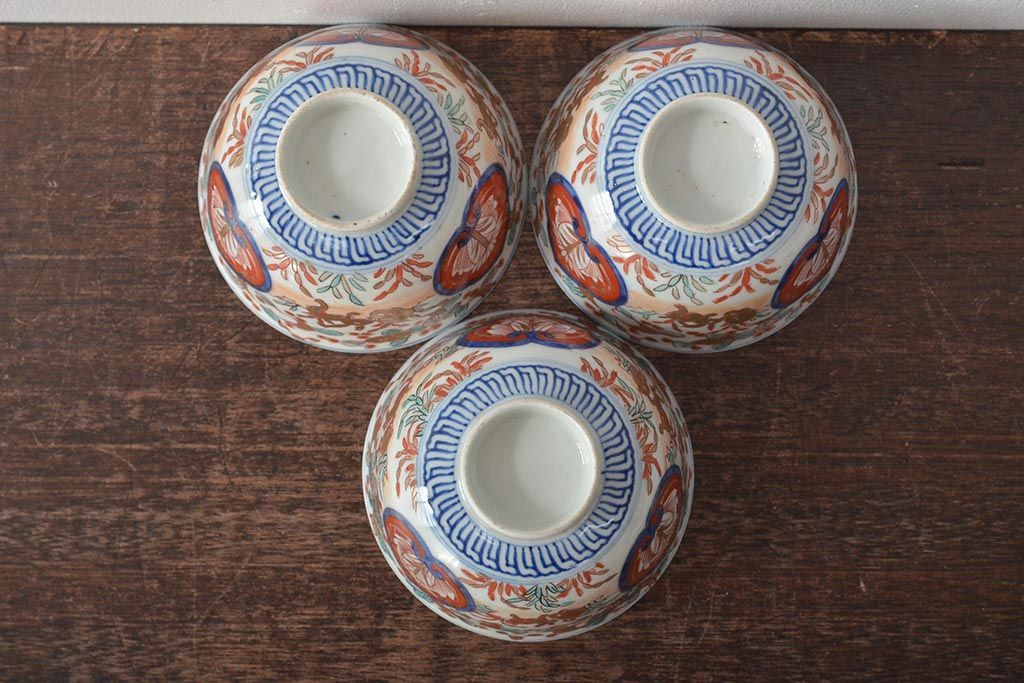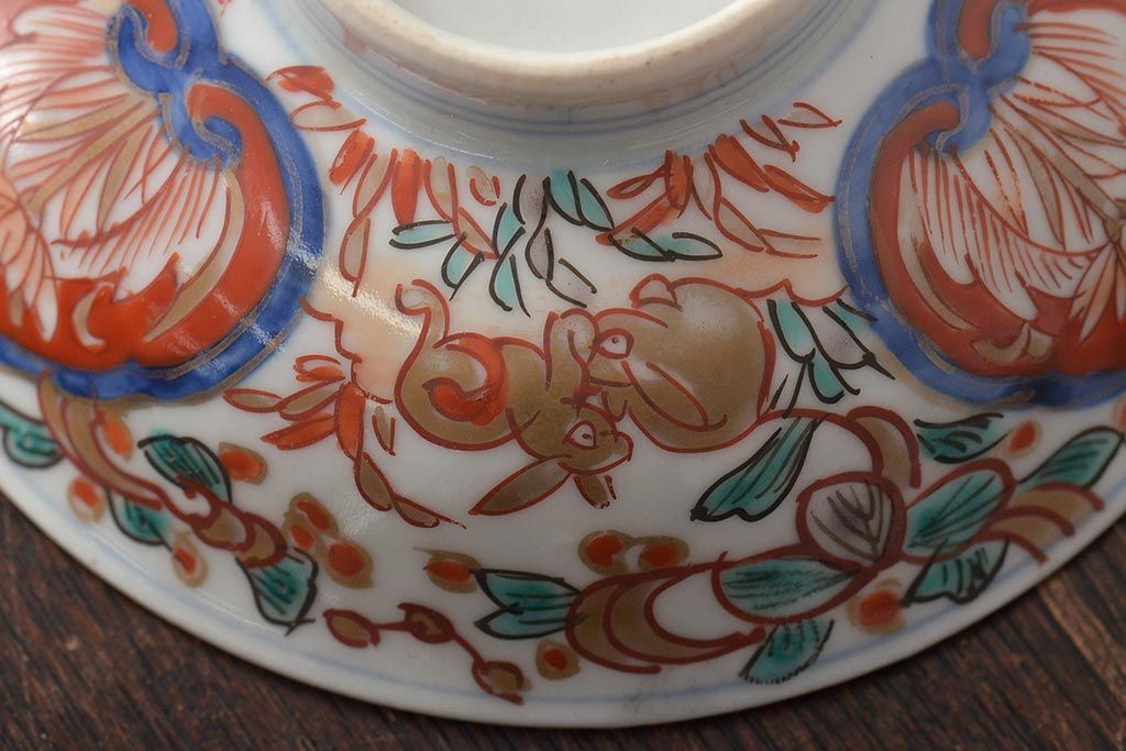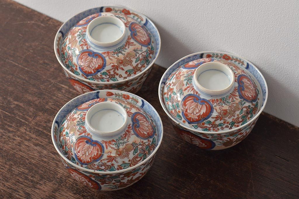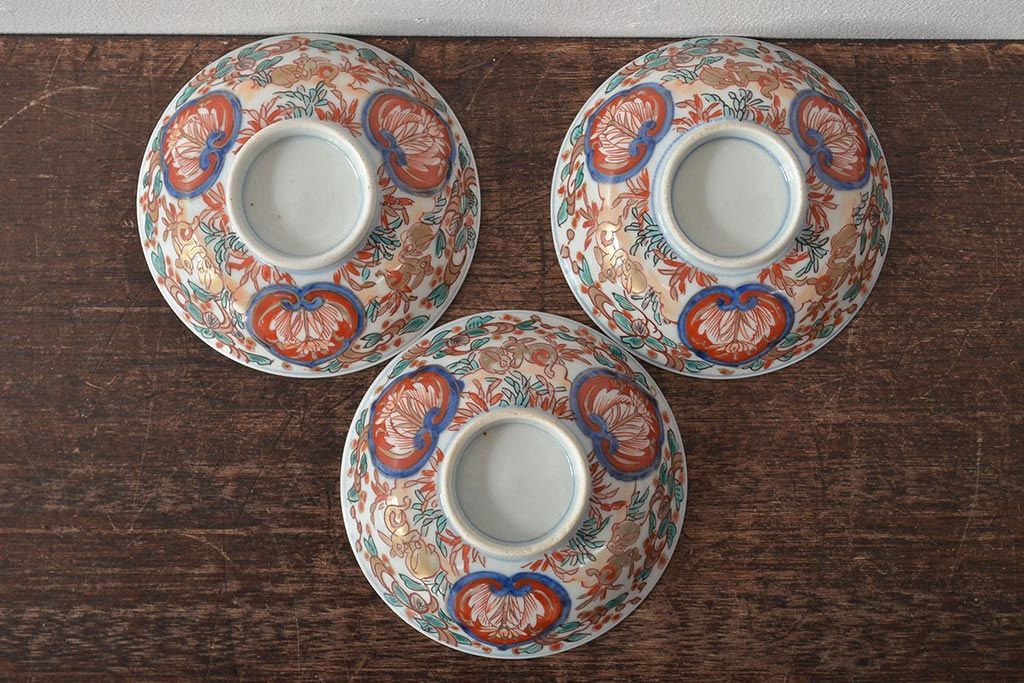 幕末〜明治 伊万里焼 色絵金彩兎図 蓋茶碗3客(和食器)(R-044543)