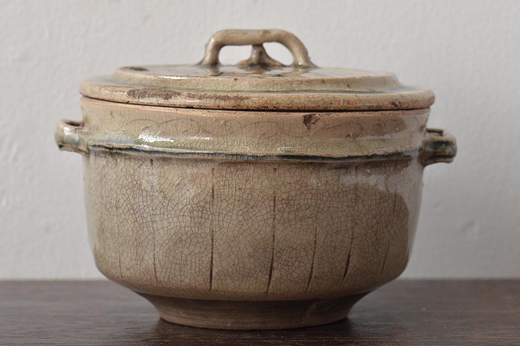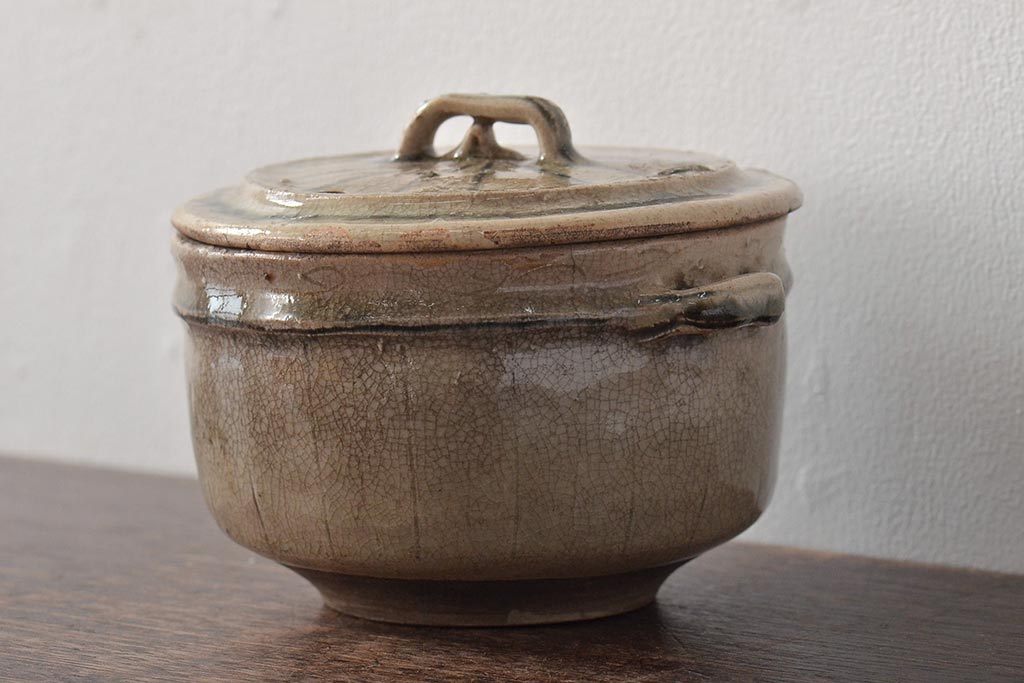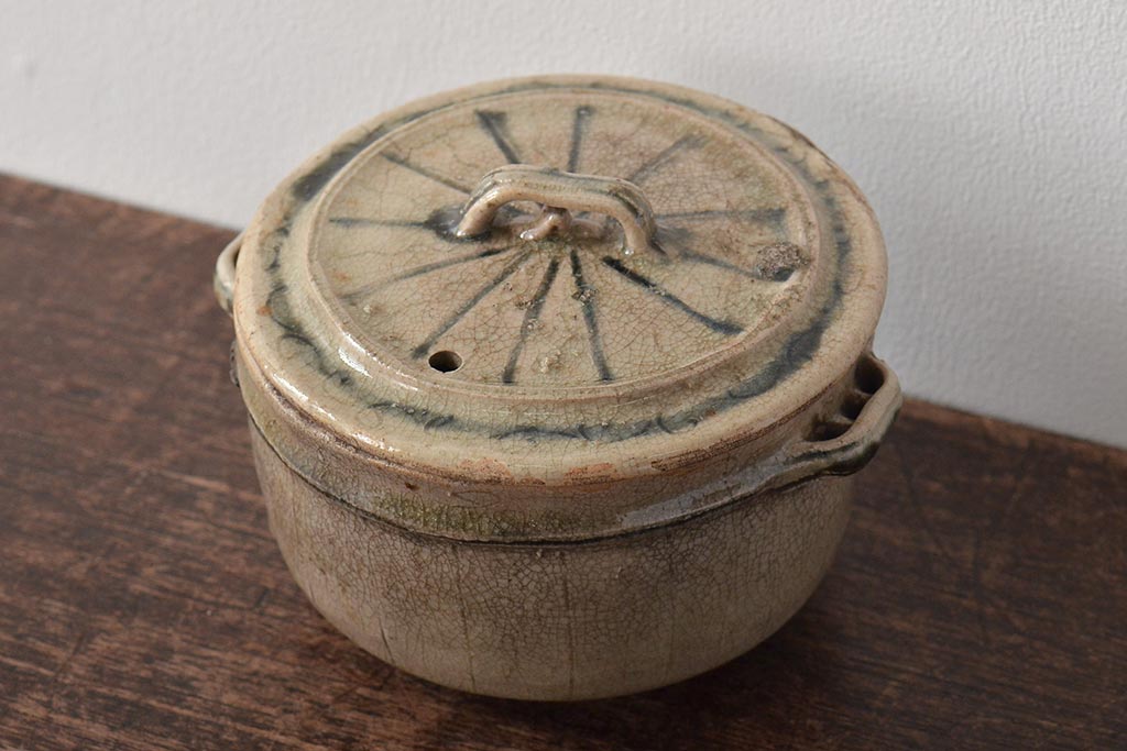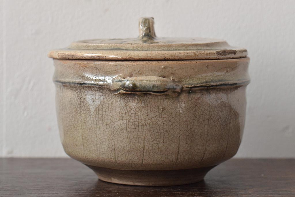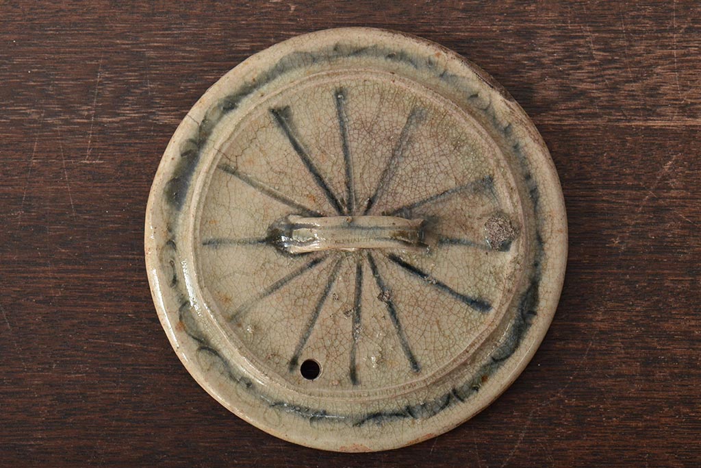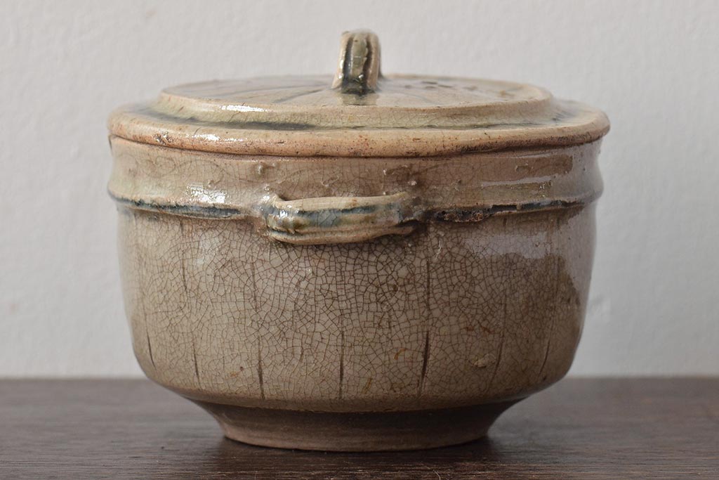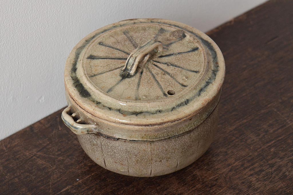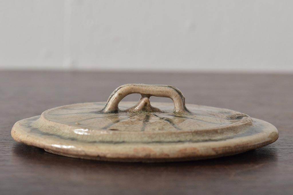 江戸期 古い美濃焼蓋物(織部瀬戸)(R-044574)