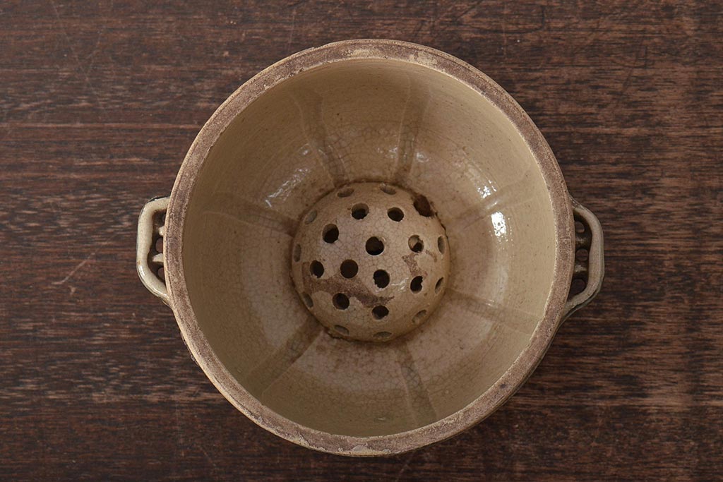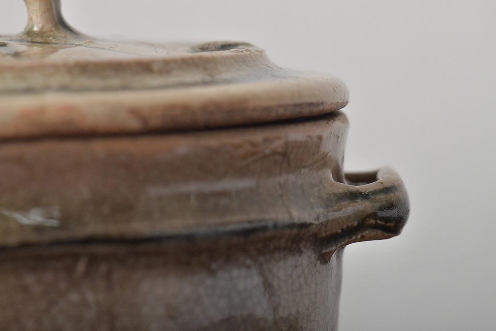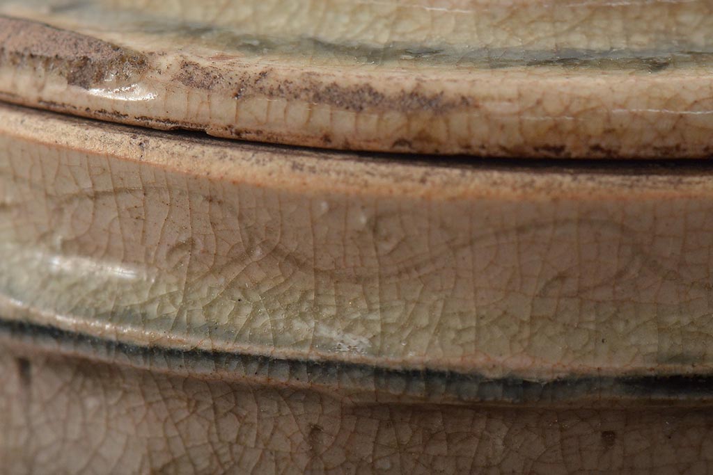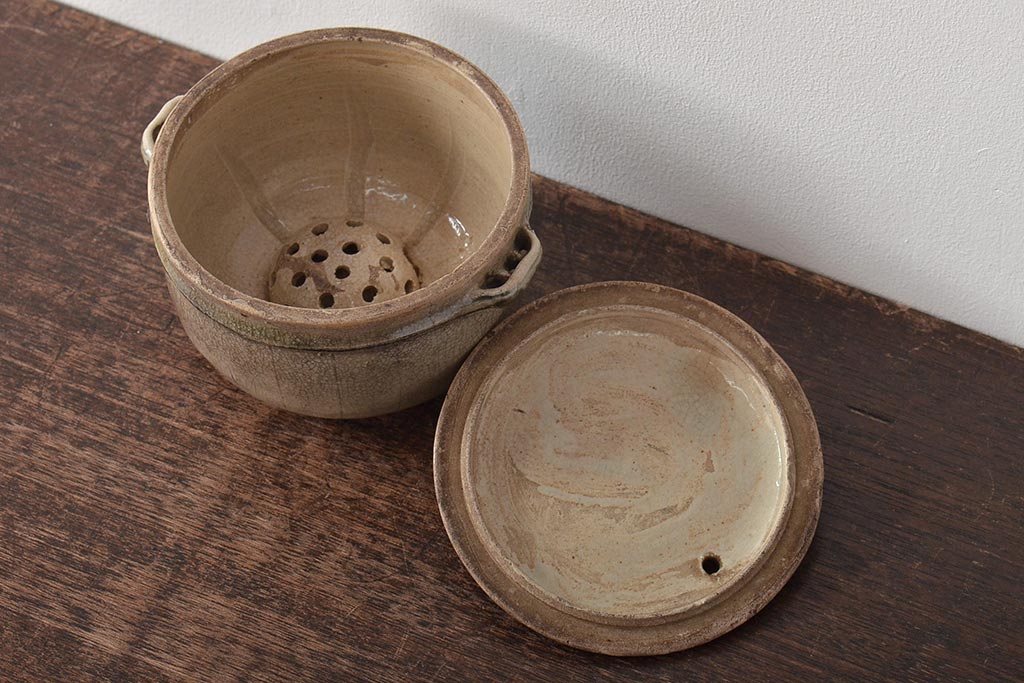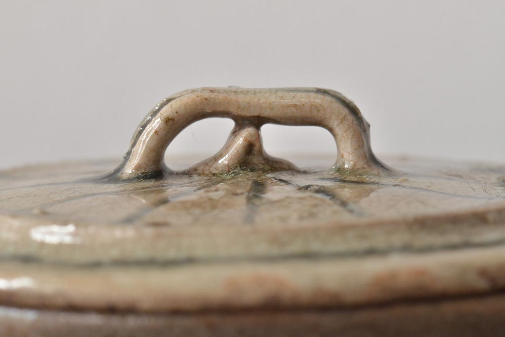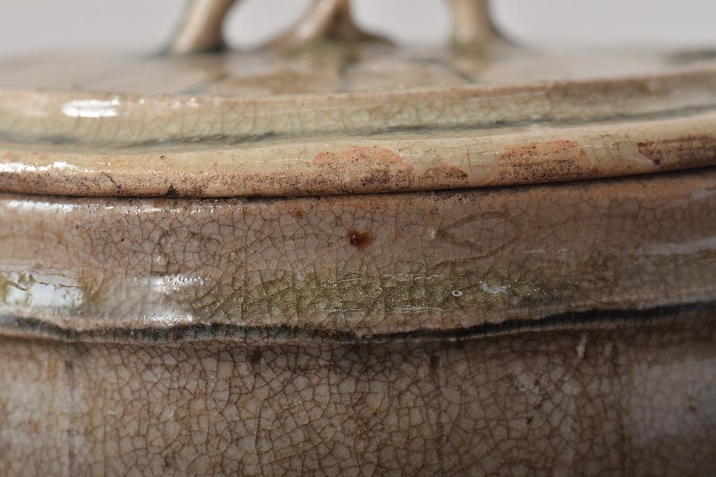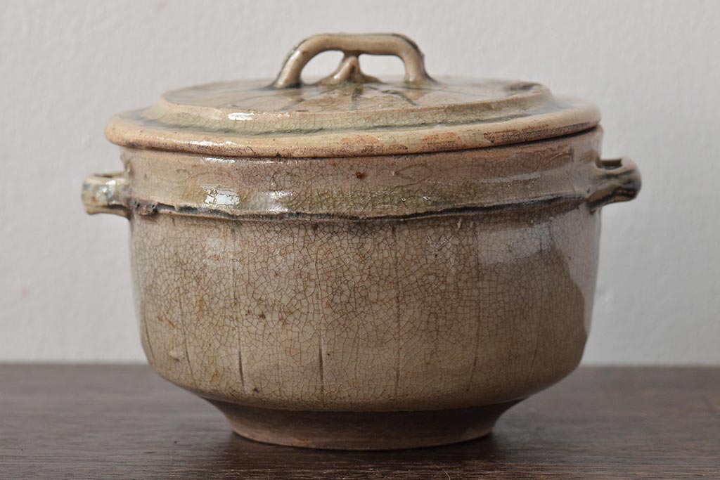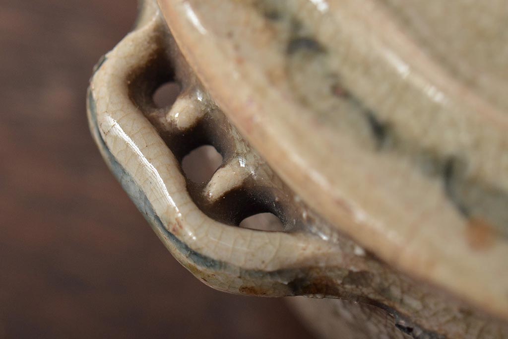江戸期 古い美濃焼蓋物(織部瀬戸)(R-044574)