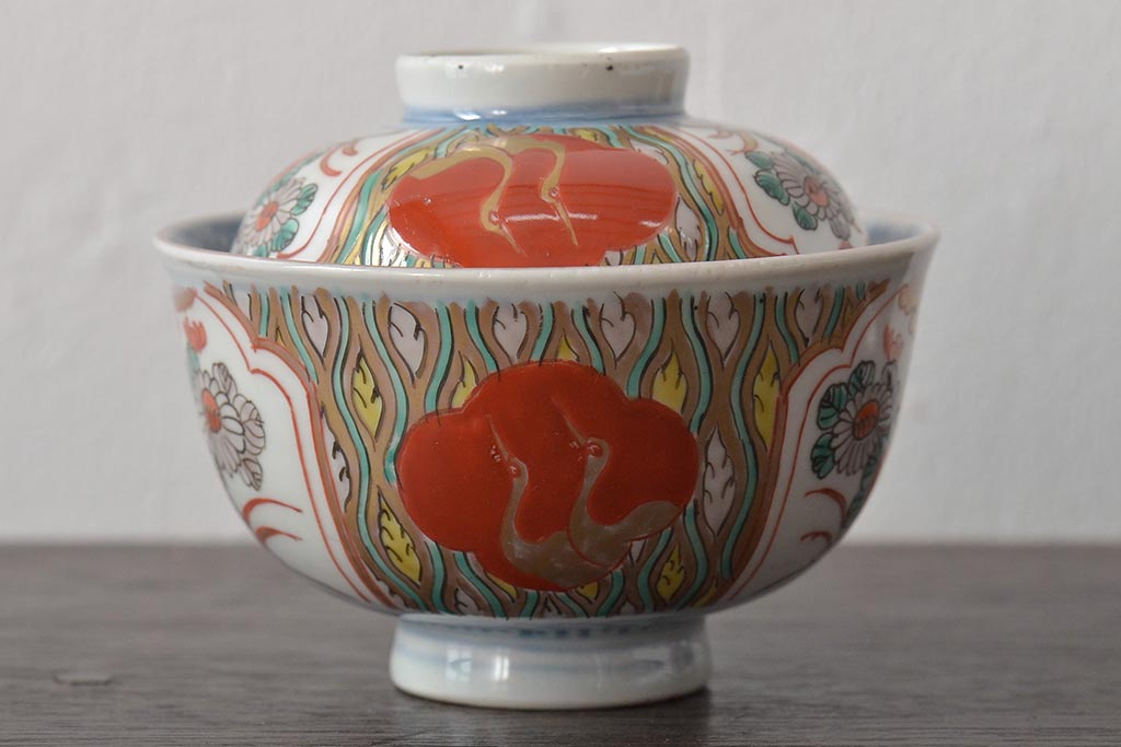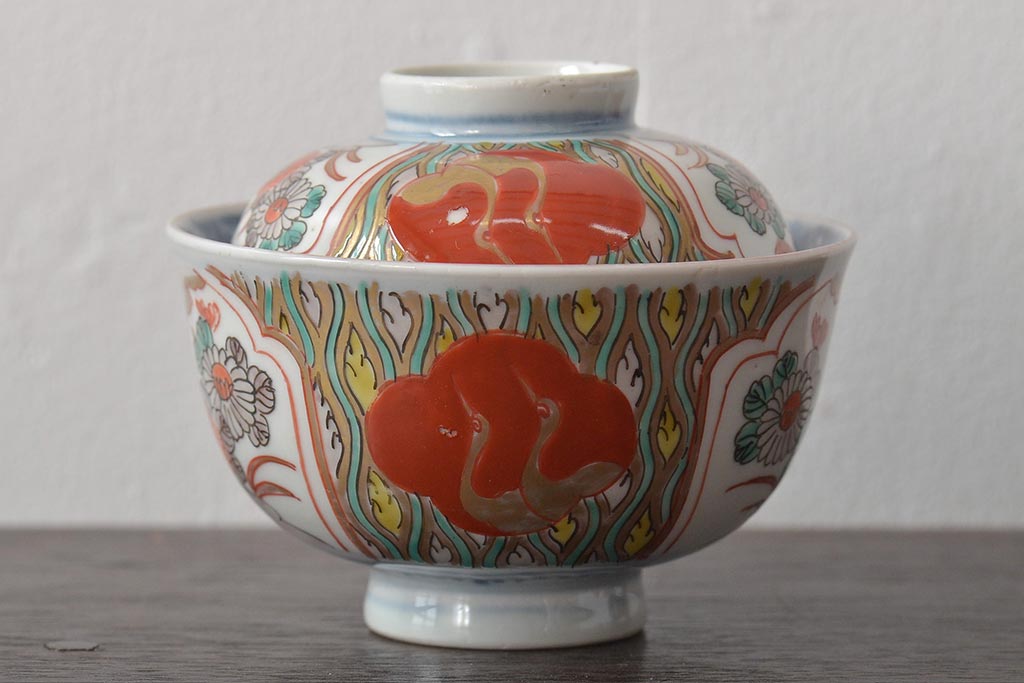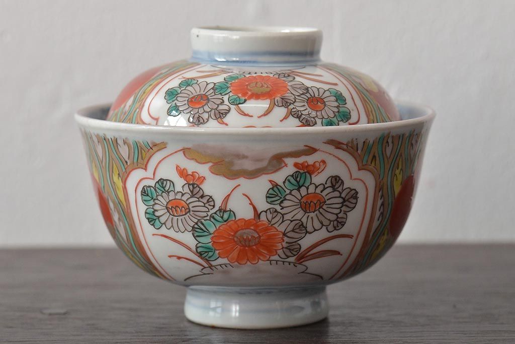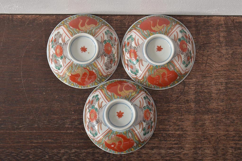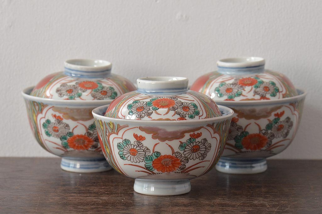 ラフジュ工房> 骨董・美術品> 骨董-陶磁器 > 江戸期 古伊万里 色絵染付蓋茶碗3客(和食器)(R-044575)