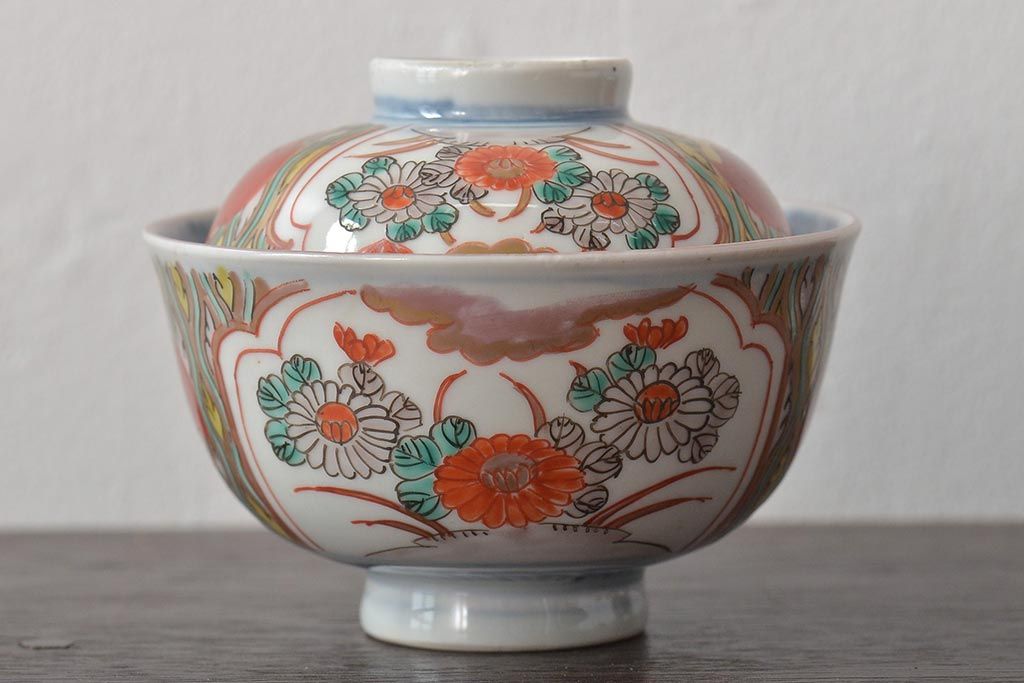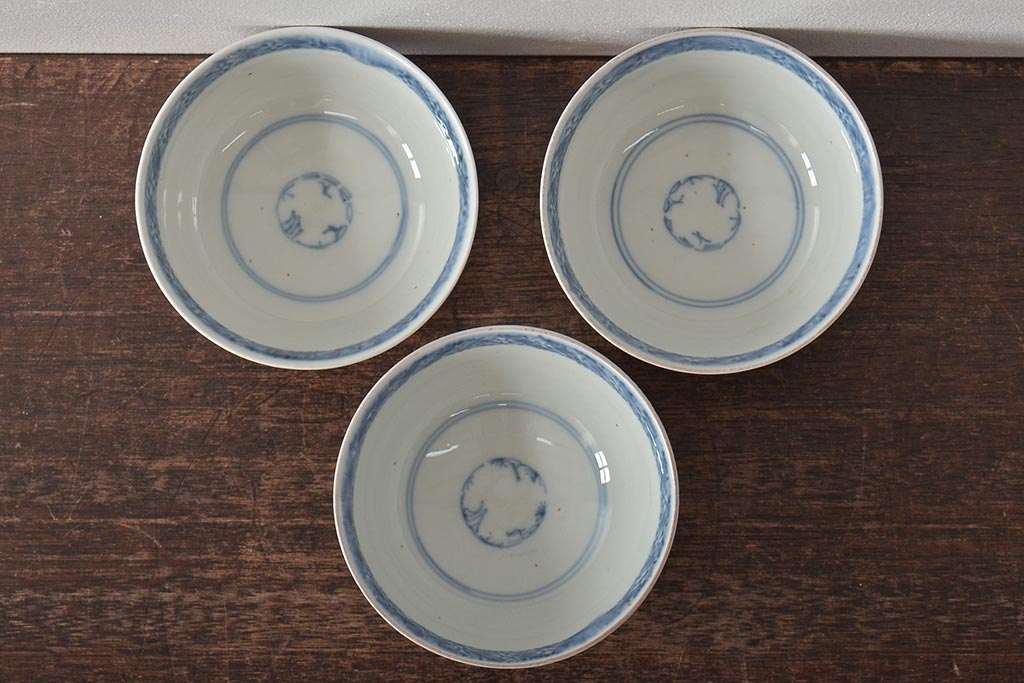 ラフジュ工房> 和食器・茶道具> お椀・茶碗 > 江戸期 古伊万里 色絵染付蓋茶碗3客(和食器)(R-044575)