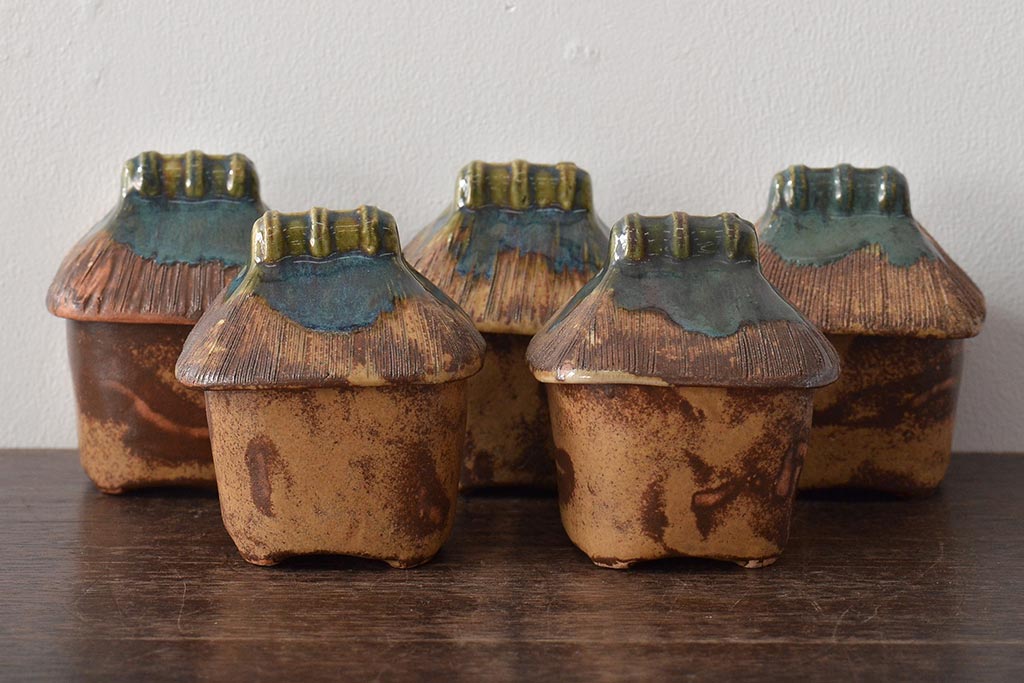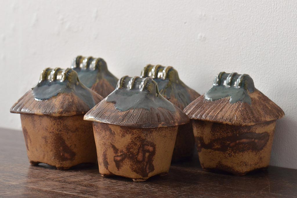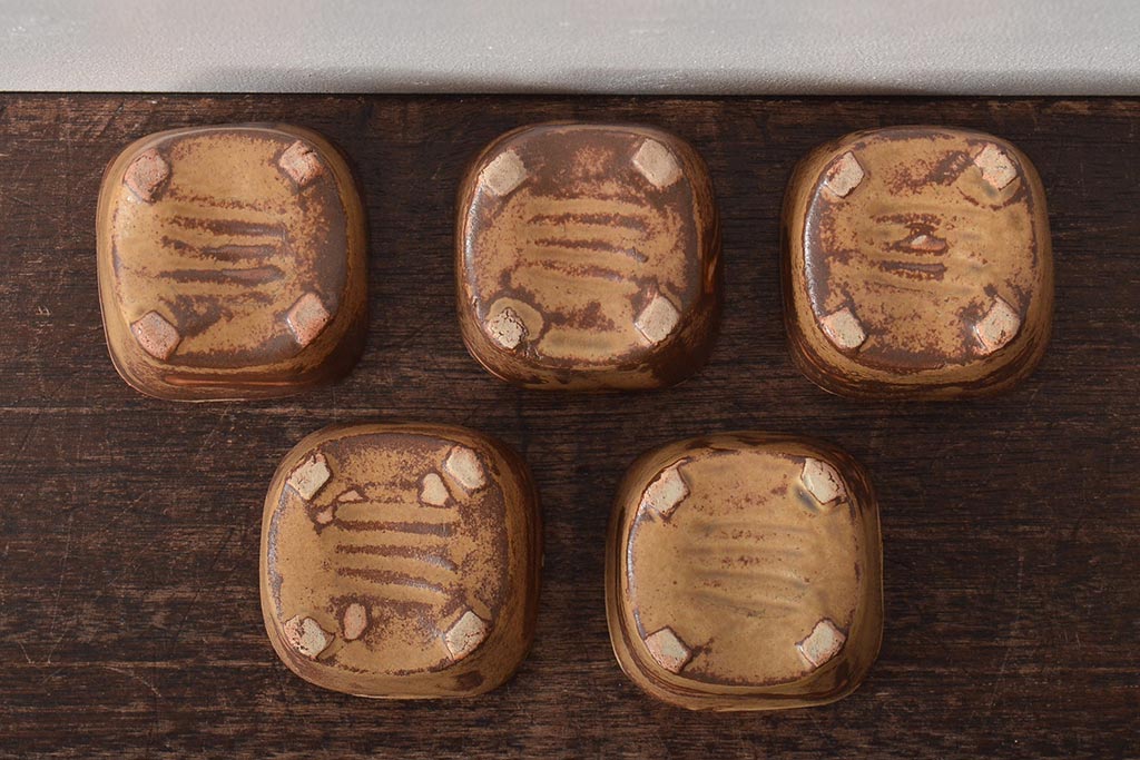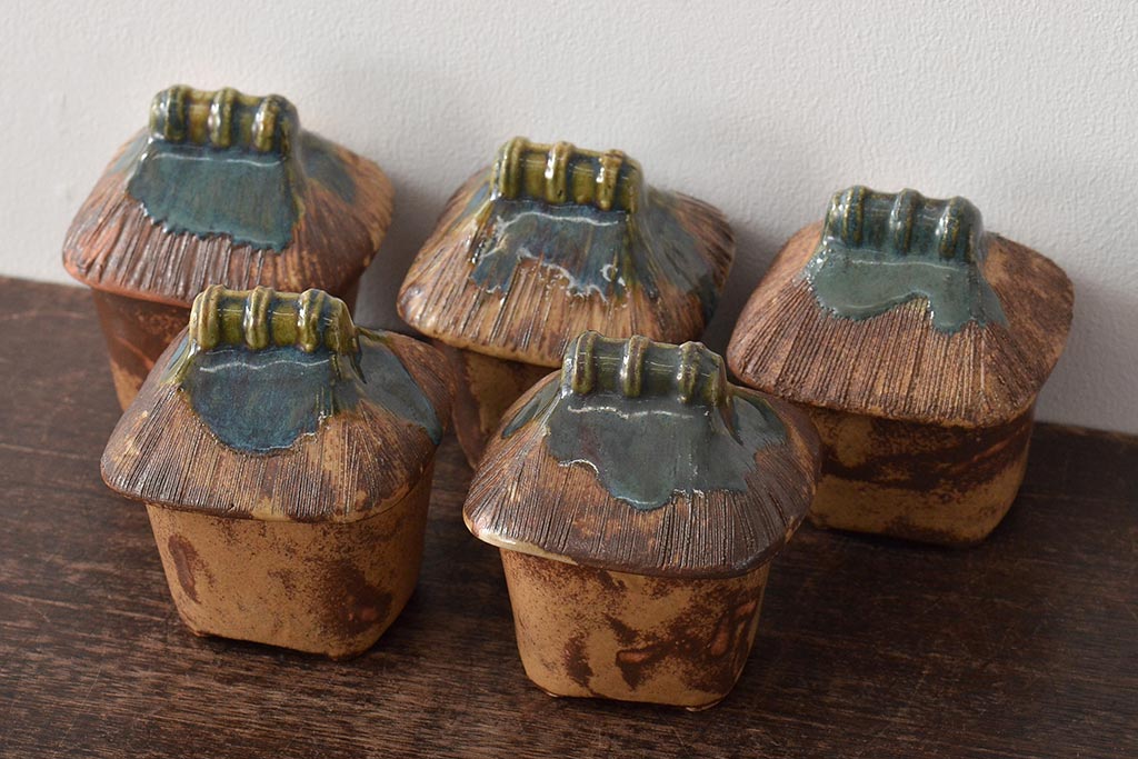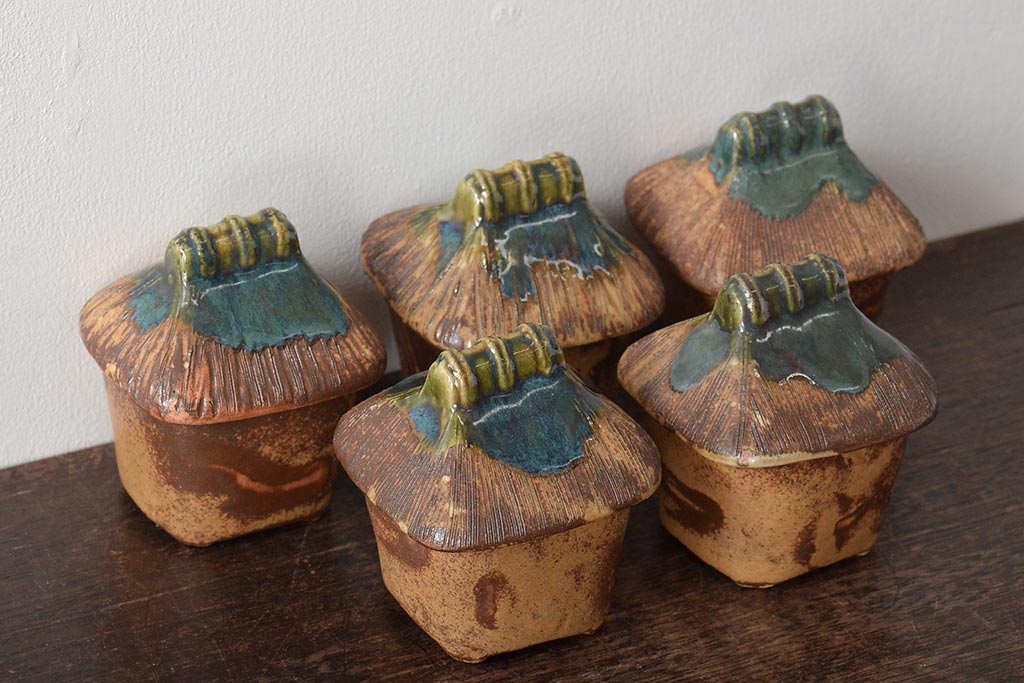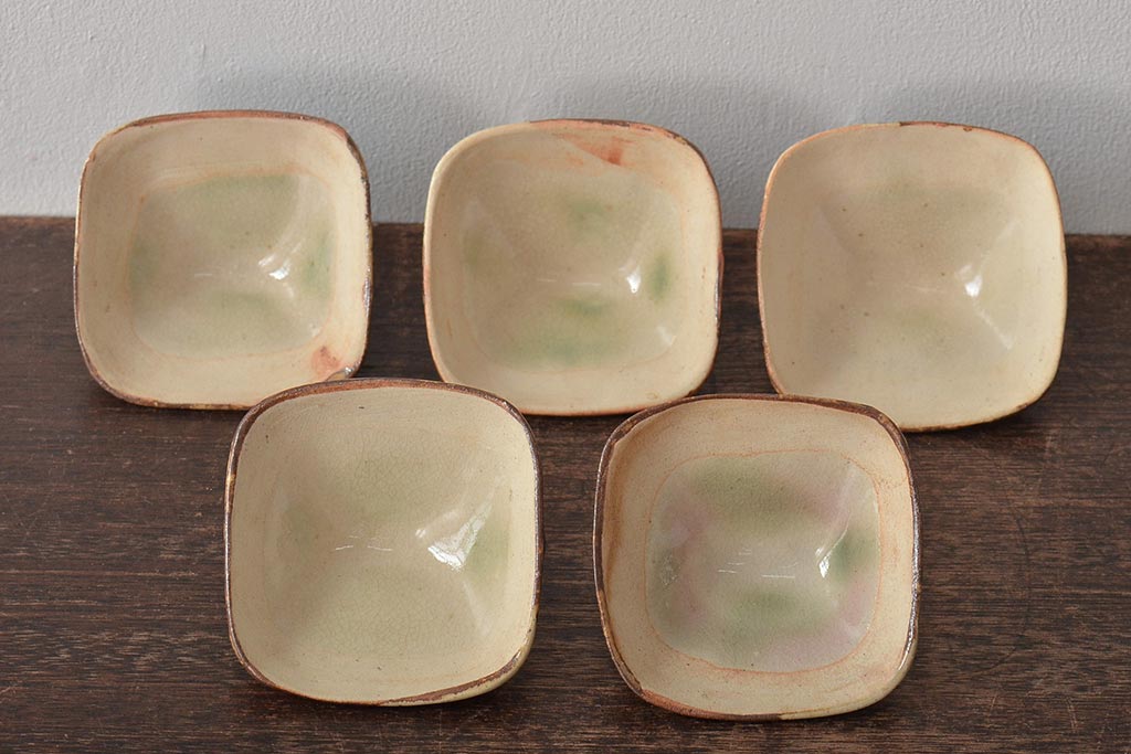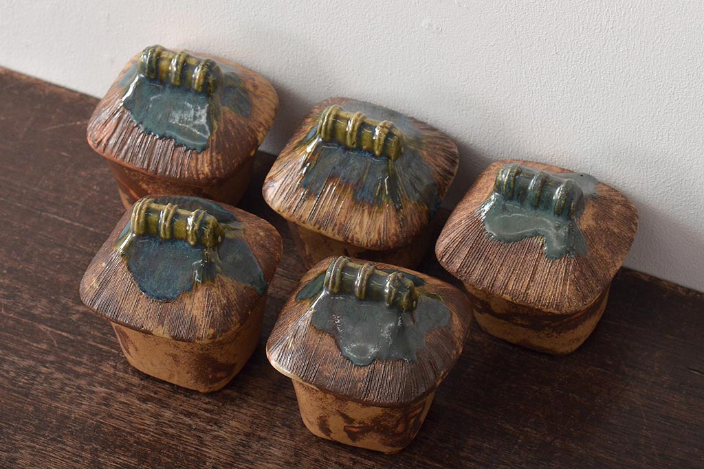 ラフジュ工房> 和食器・茶道具 > 明治〜大正 古い美濃焼蓋物5客(織部向付)(R-044576)