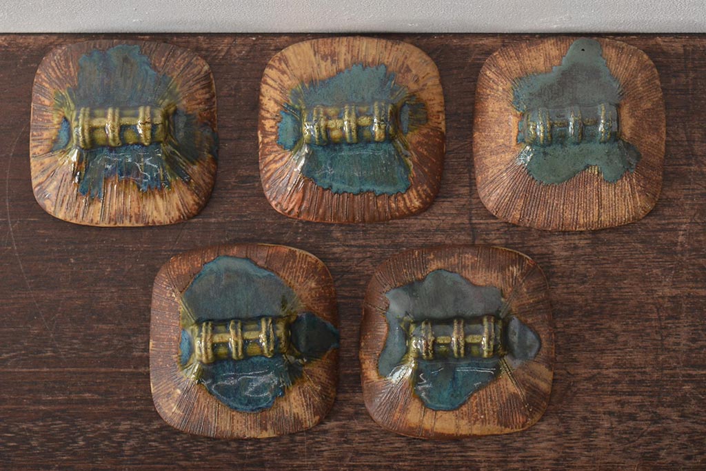 明治〜大正 古い美濃焼蓋物5客(織部向付)(R-044576)