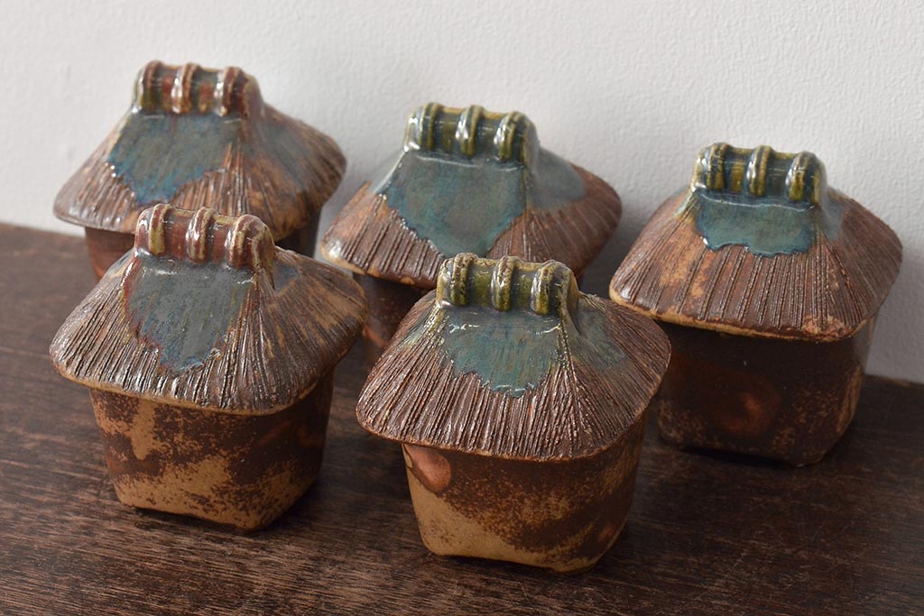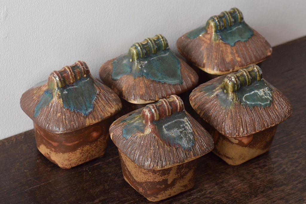 ラフジュ工房> 和食器・茶道具 > 明治〜大正 古い美濃焼蓋物5客(織部向付)(R-044577)